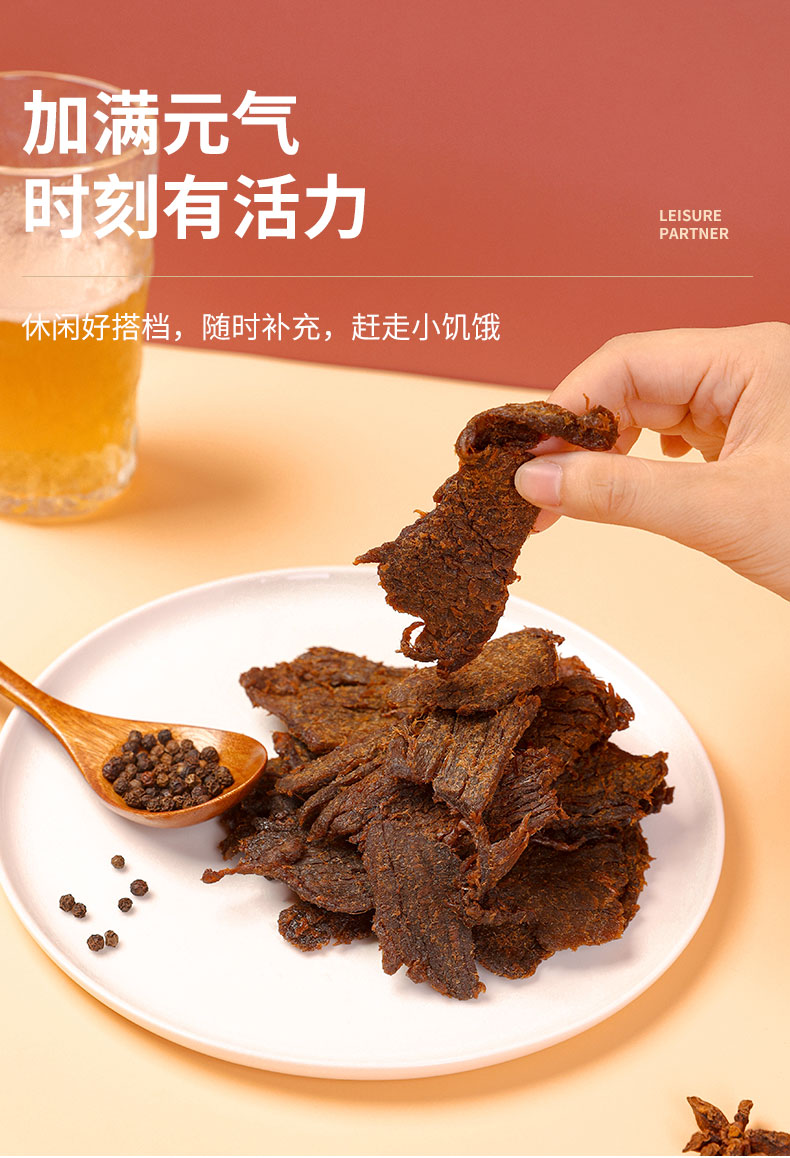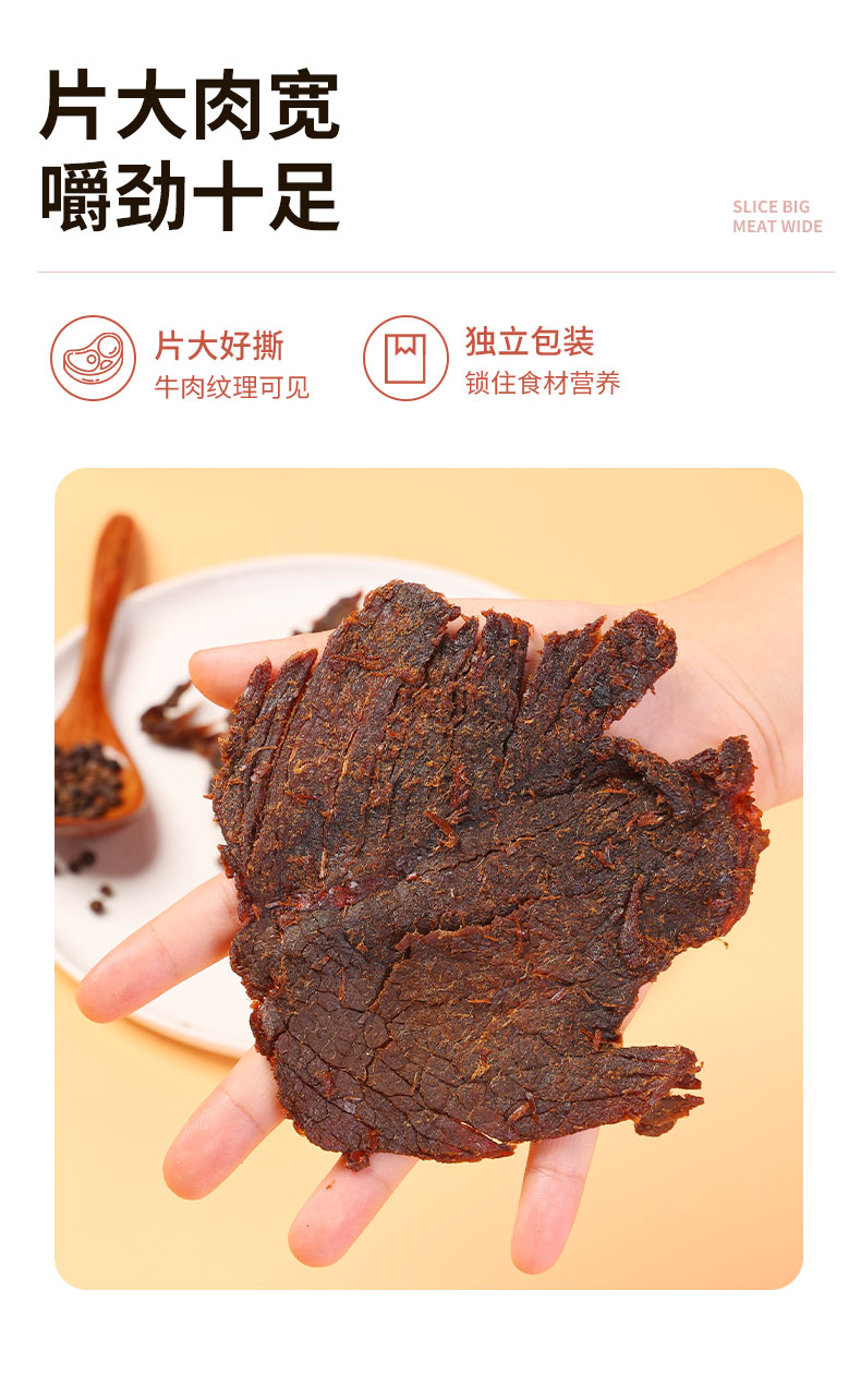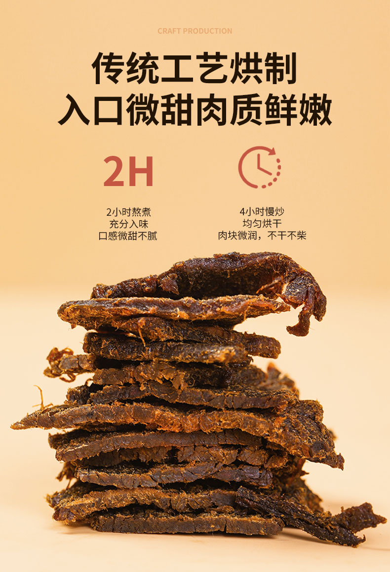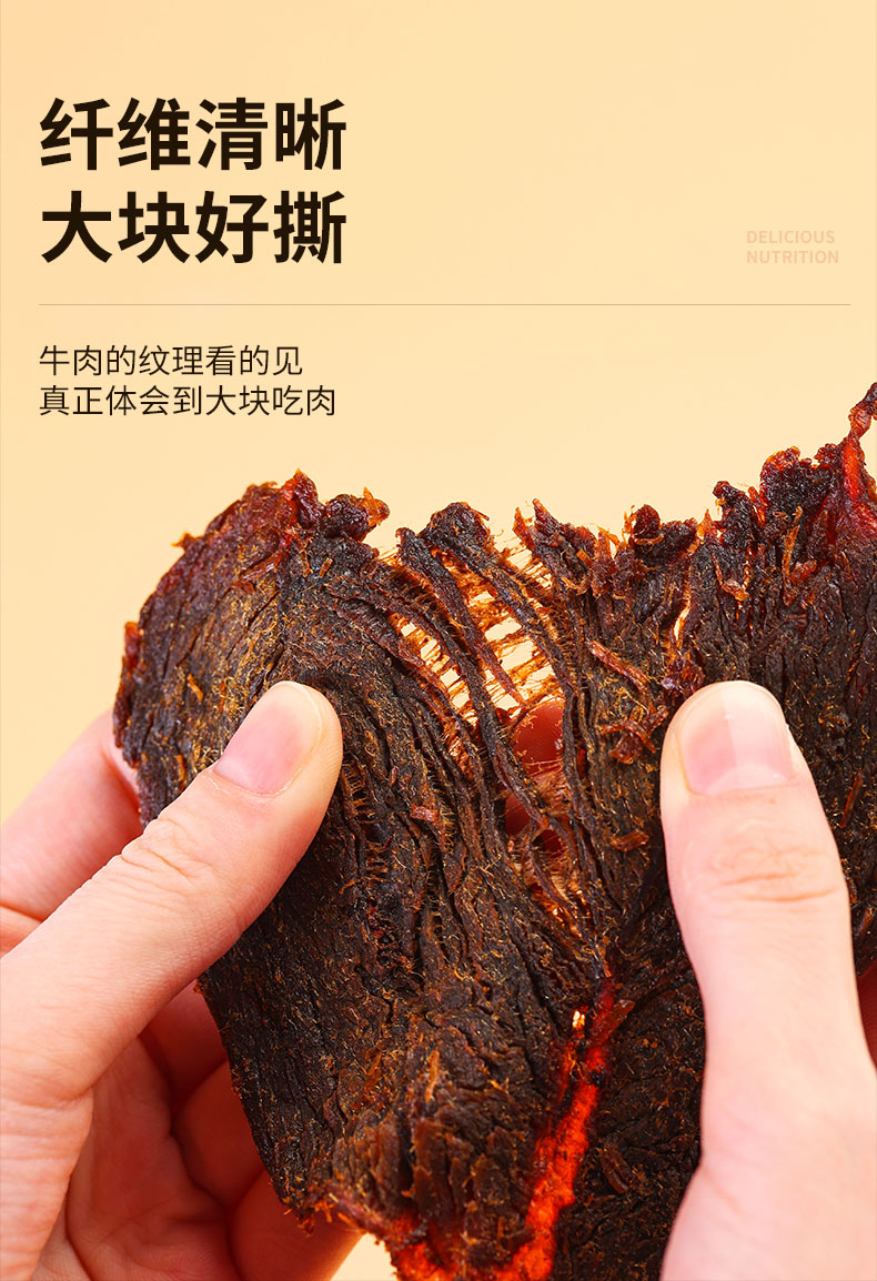 原切牛肉干 原肉整切,纤维清晰,大块好撕,肉块微润,不干不柴
