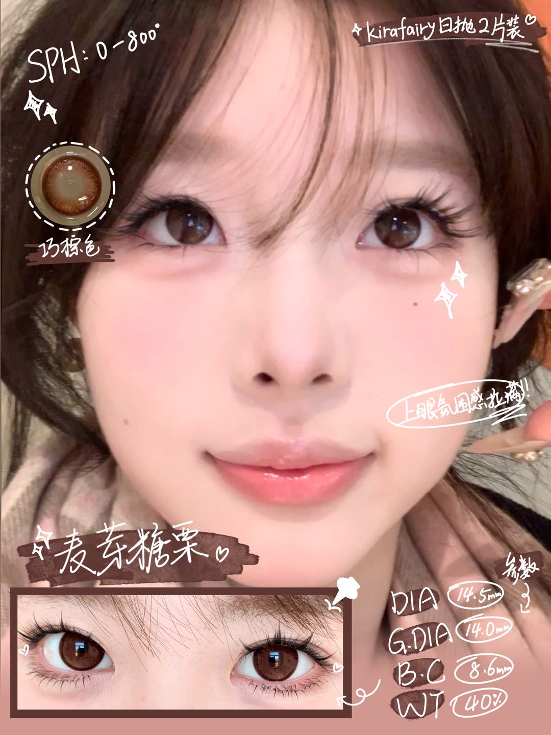 kirafairy日抛 /奶糖薯泥/砂糖粉底/红糖鸽血 14.5mm 大着色 10片装 日抛无售后!!