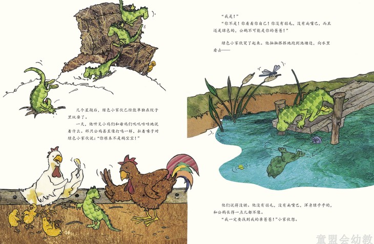 《绿色小家伙》是启发精选世界优秀畅销绘本系列之一,适合2岁以上儿童阅读。在一个舒适自在的农场里,住着一条狗、一只公鸡、四只母鸡和几只小鸡,还有一只非常有爱心的公鹅。公鹅非常羡慕那些有小鸡的母鸡们,在他的心里藏着一个秘密:他好想有一个自己的孩子,一个毛绒绒的小家伙。一天,好心的狗狗帮他找到了一个奇怪的大蛋,公鹅就马上像那些母鸡一样孵起宝宝来……一个绿色小家伙从蛋里钻了出来,但是,他和公鹅长得一点儿都不像。于是,故事开始了……作者通过“收养”这一主题传递出令人倍感温馨的爱,并呈现出父亲与孩子之间的奇妙关系。现已翻译成7国语言,在国际上获得较大声誉。