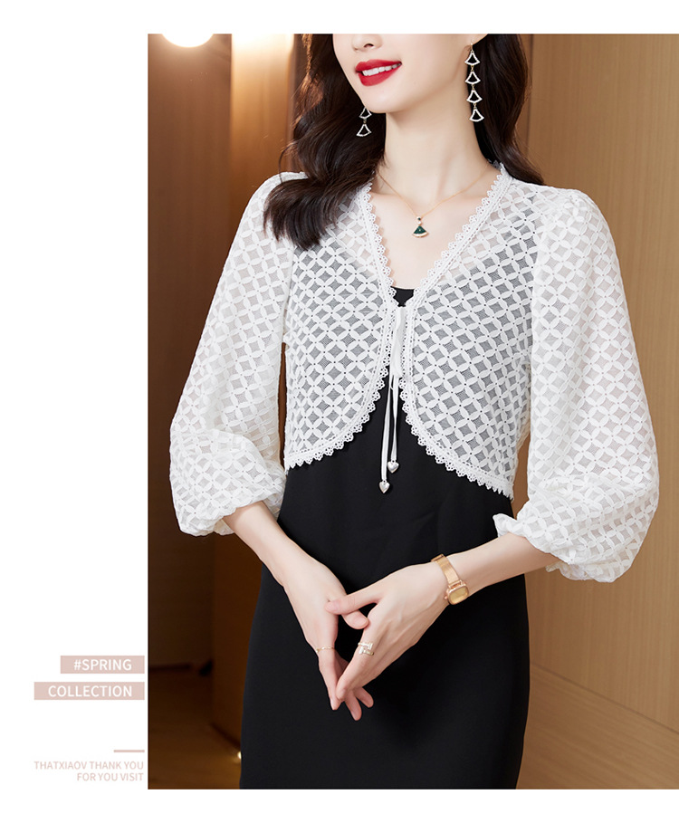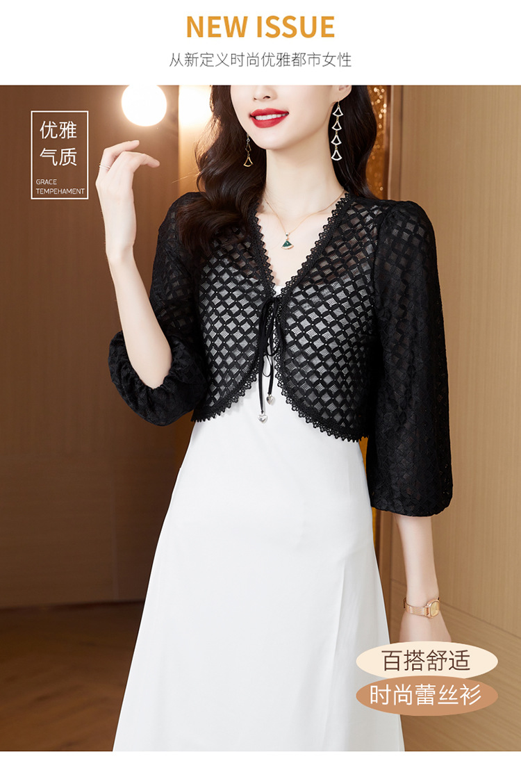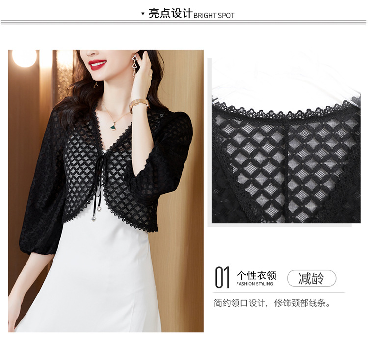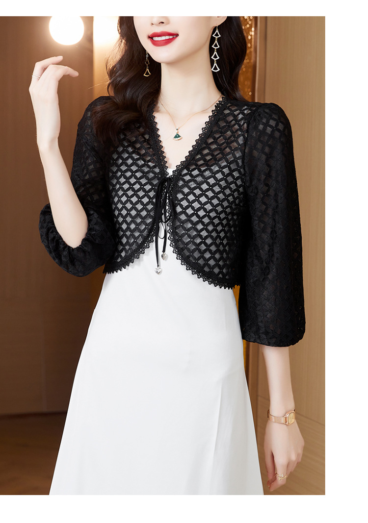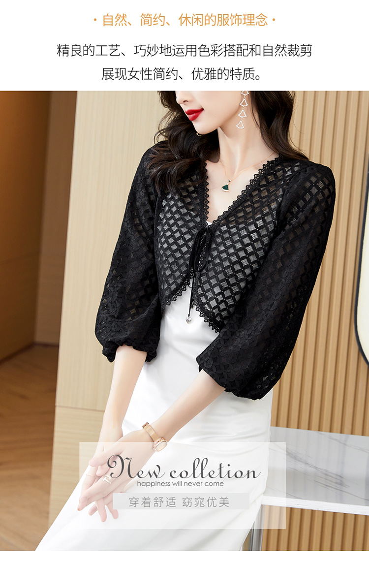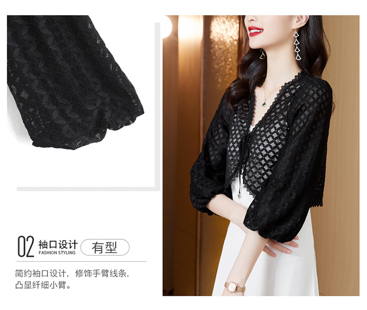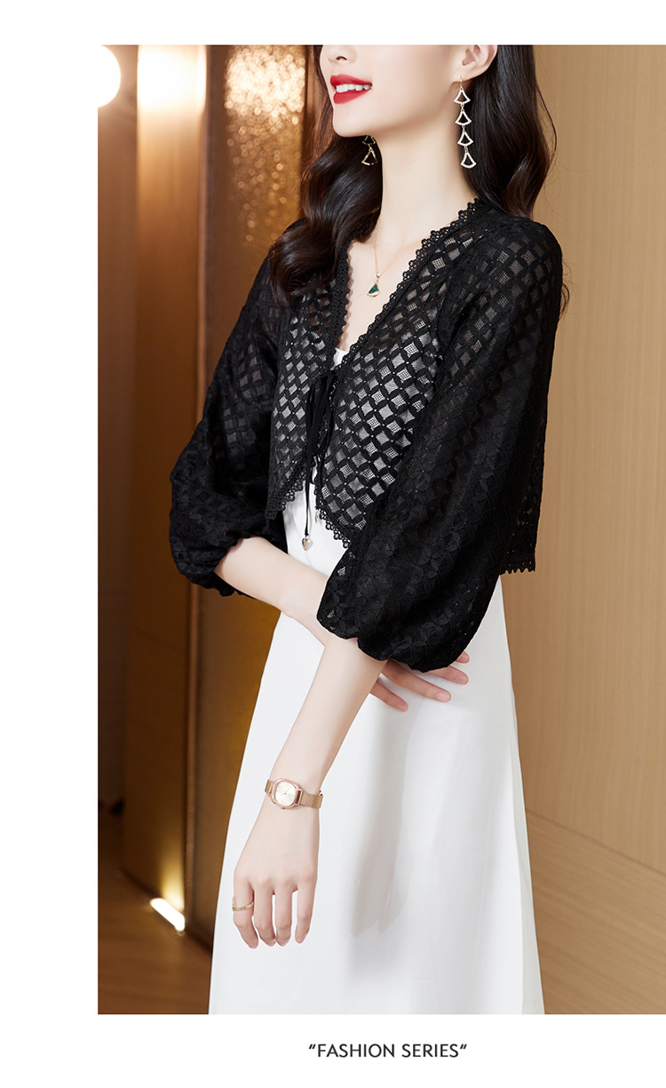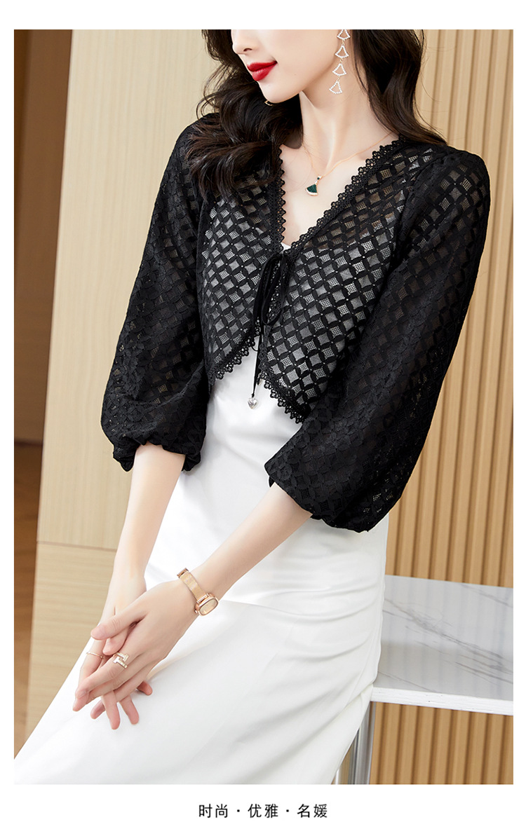 新款时尚优雅,气质百搭蕾丝短款系带外披小外套KQL-8303