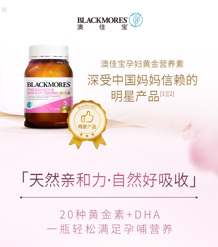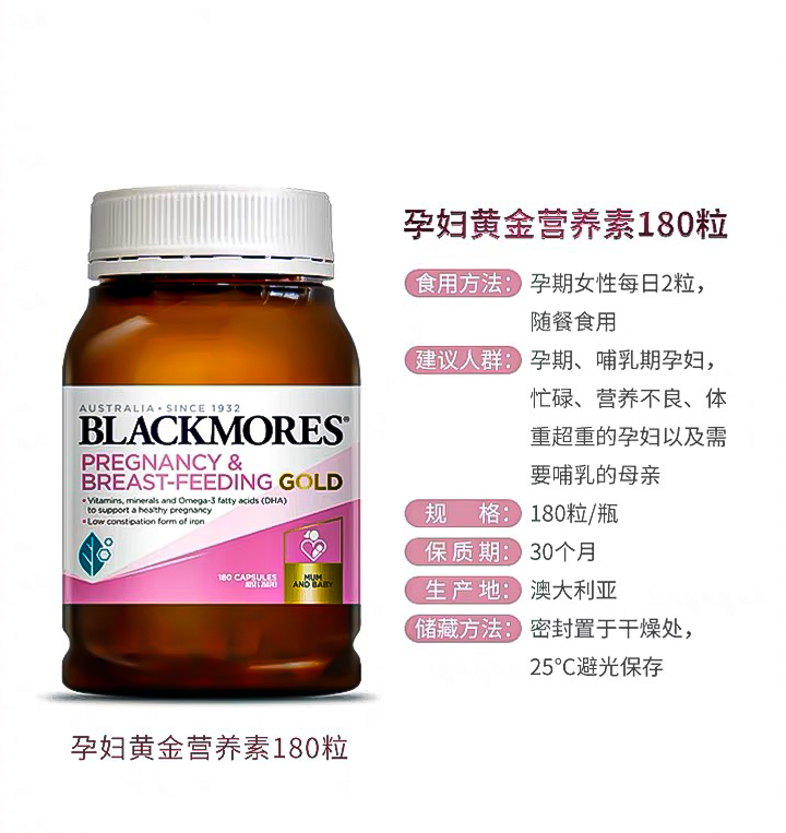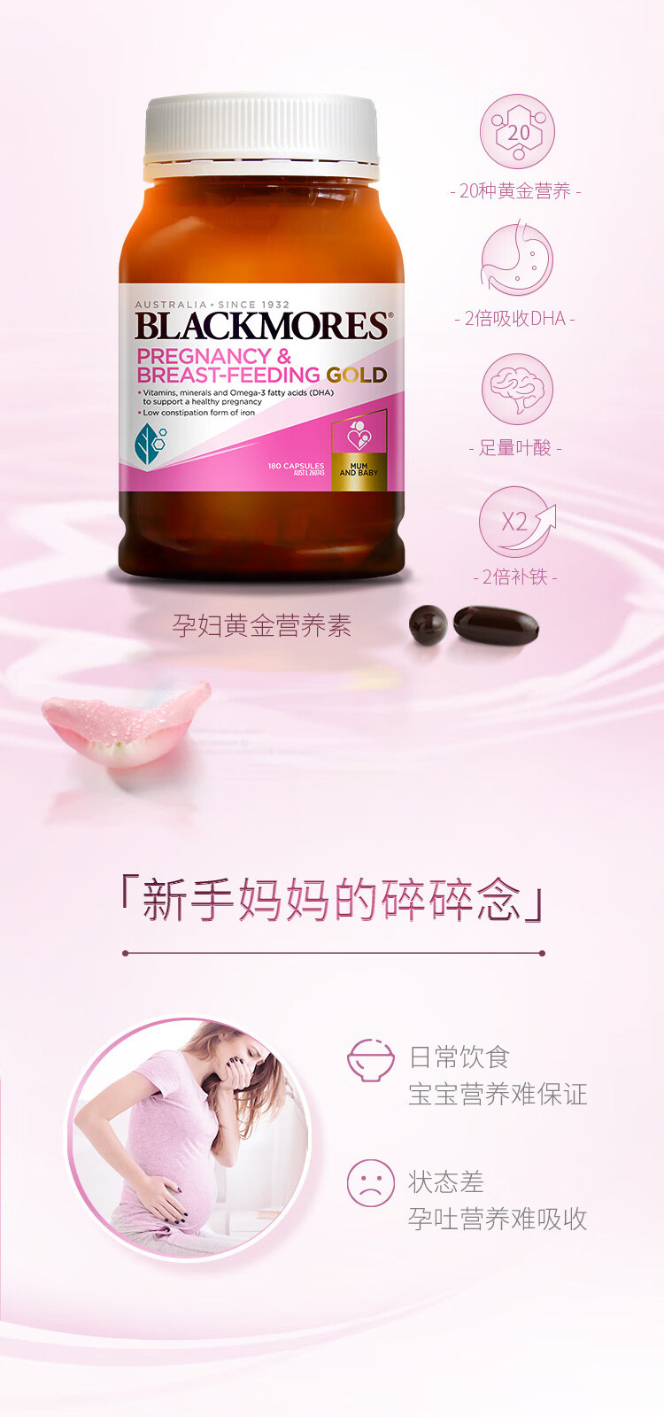 澳洲澳佳宝Blackmores孕妇黄金营养素叶酸dha备孕期复合维生素180粒 孕期三宝