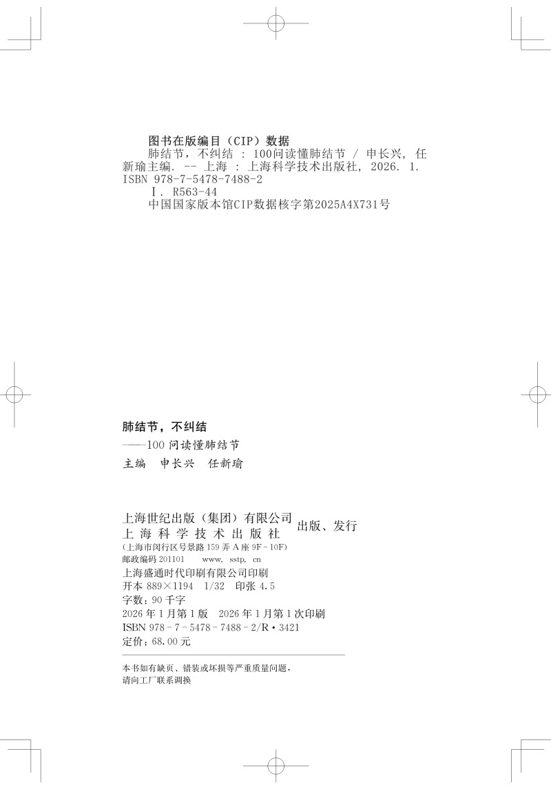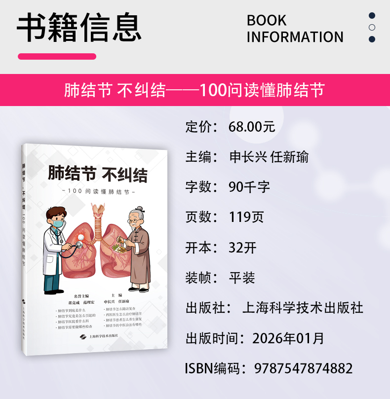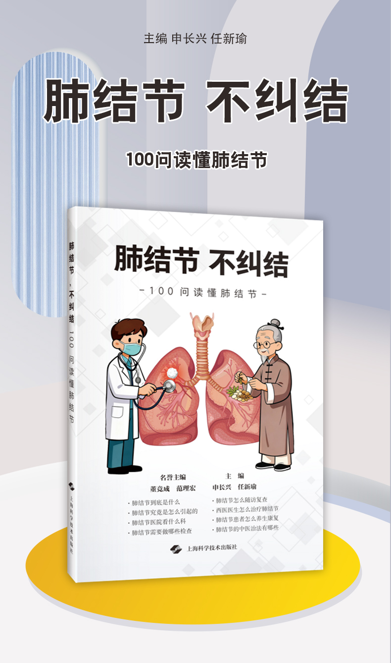 肺结节,不纠结 100问读懂肺结节 申长兴 任新瑜 主编 可供关注肺部健康的大众人群参考阅读 9787547874882 上海科学技术出版社