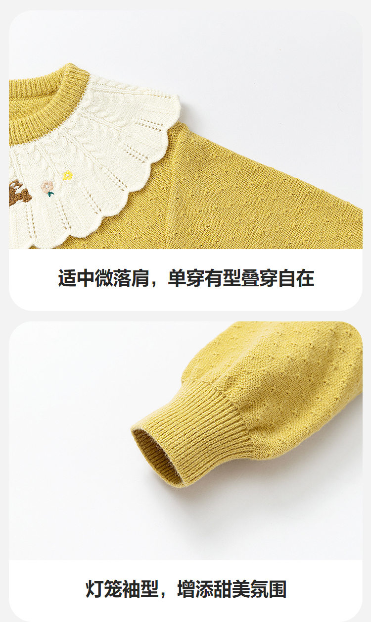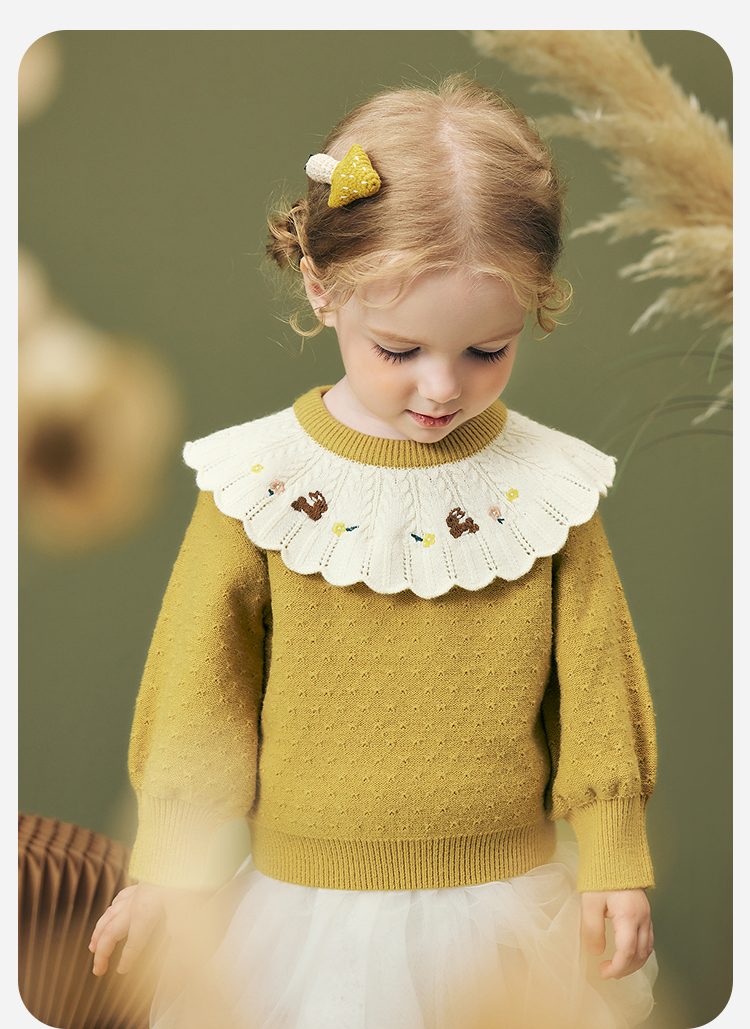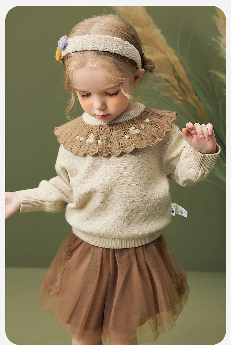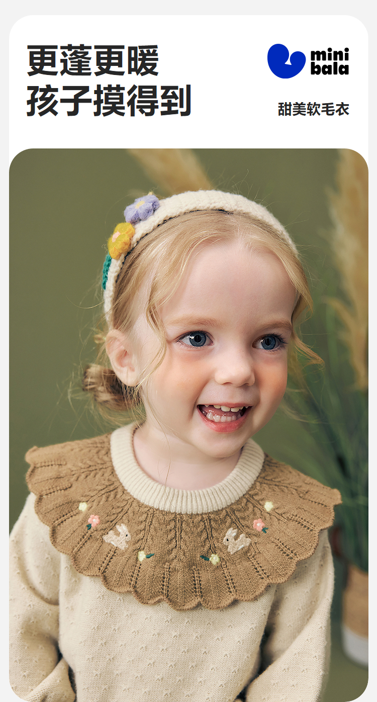 迷你巴拉女童宝宝刺绣毛衣不易变形起球灯笼袖亲肤2025冬新款