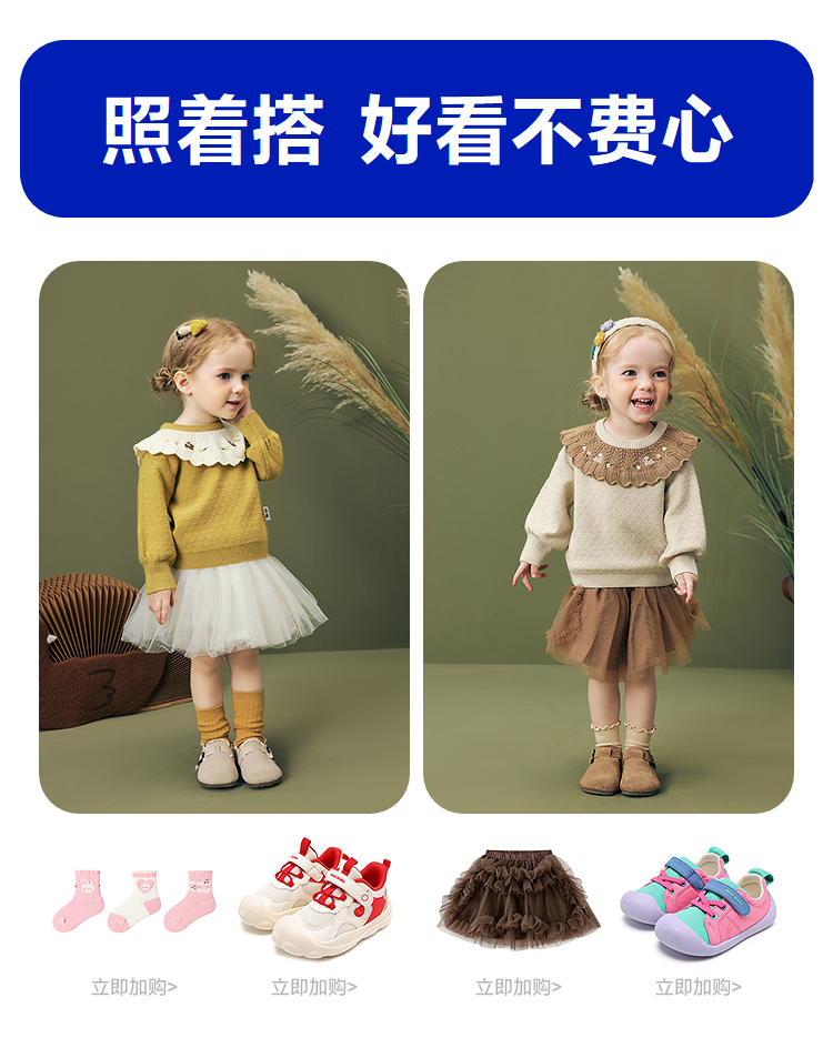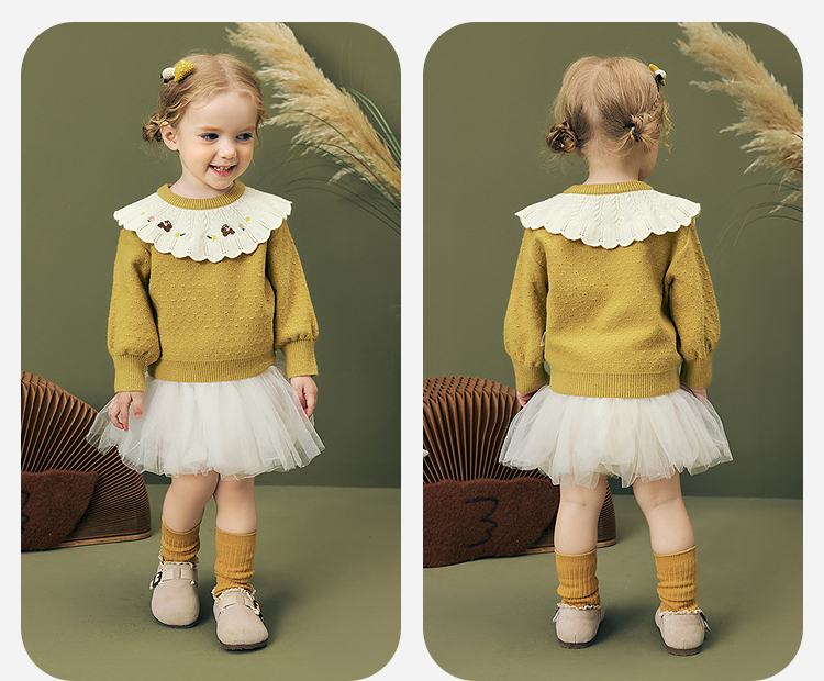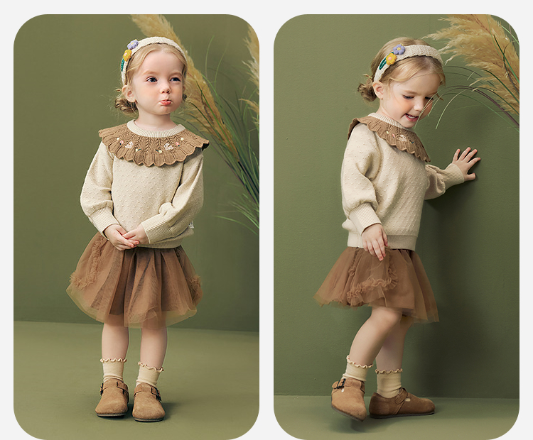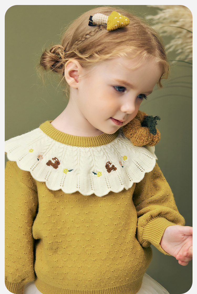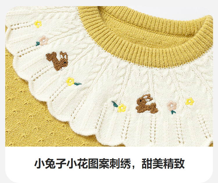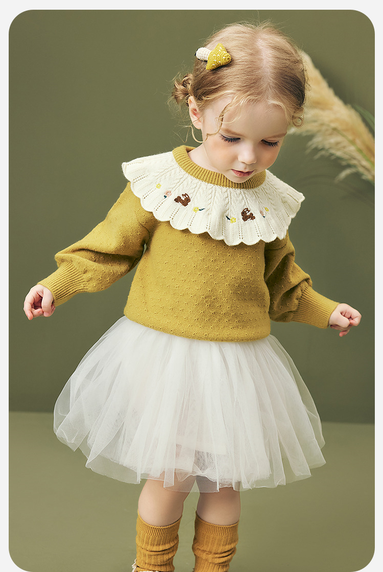迷你巴拉女童宝宝刺绣毛衣不易变形起球灯笼袖亲肤2025冬新款