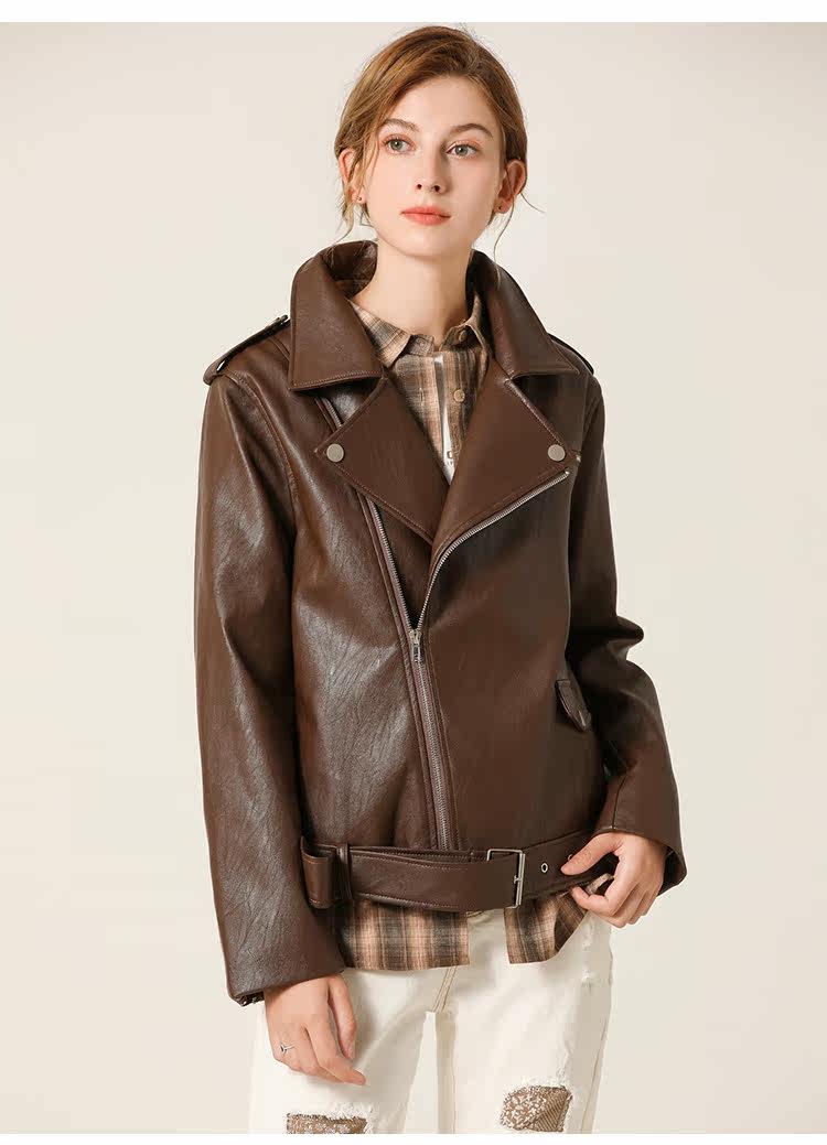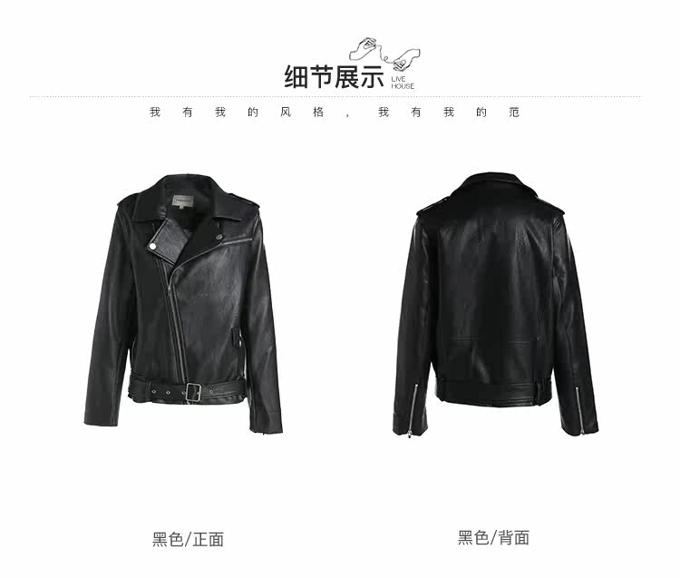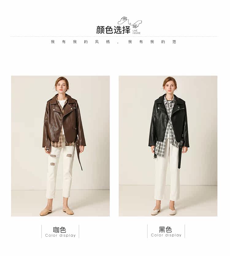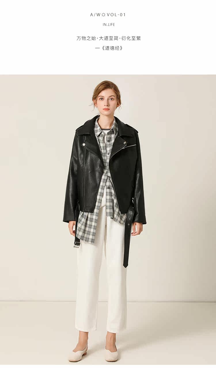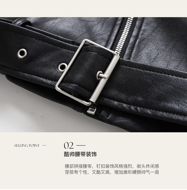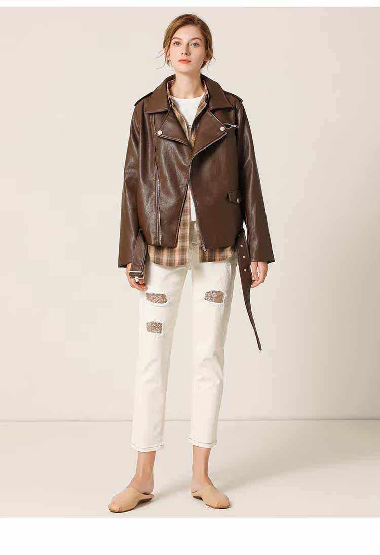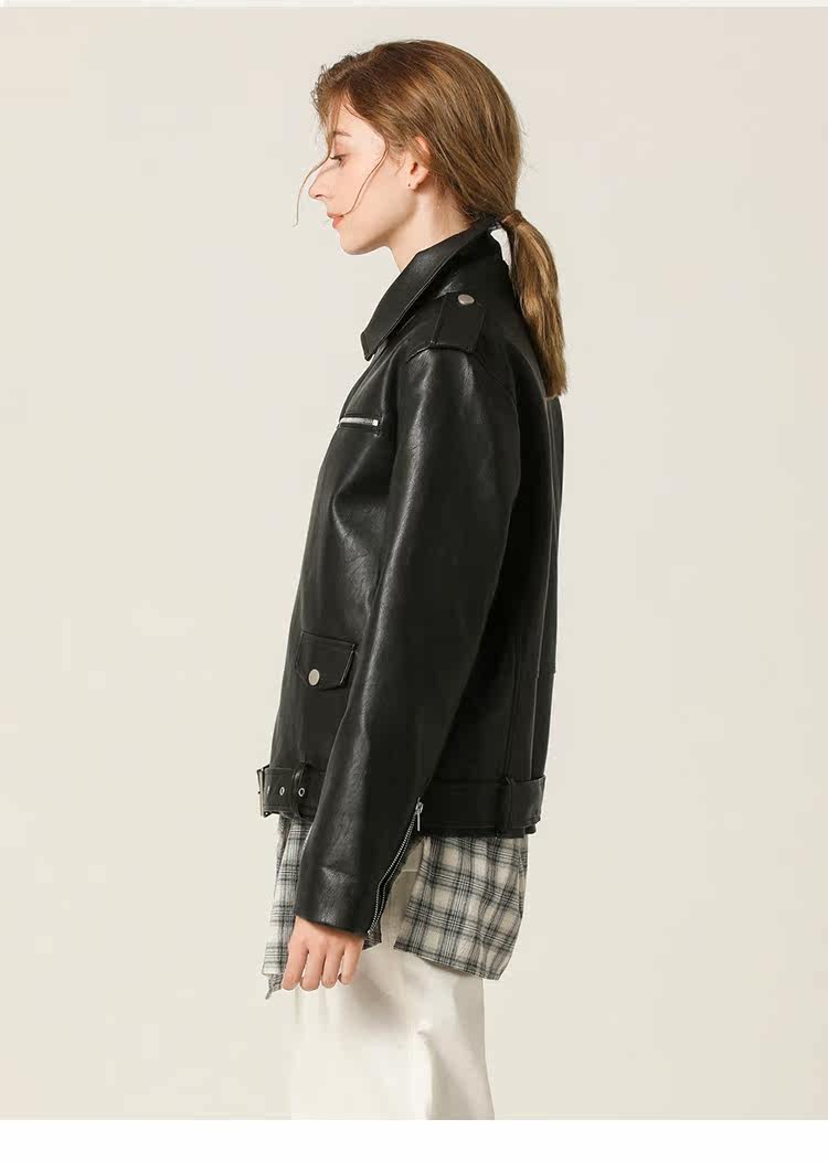 Famecoco范可儿春秋季时尚立领宽松短款PU皮衣外套F201AG103