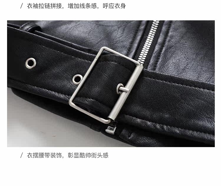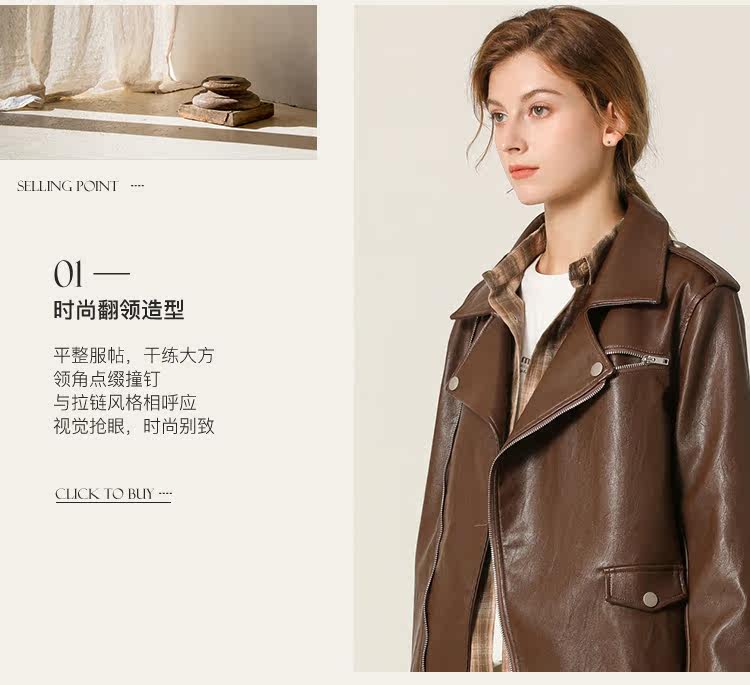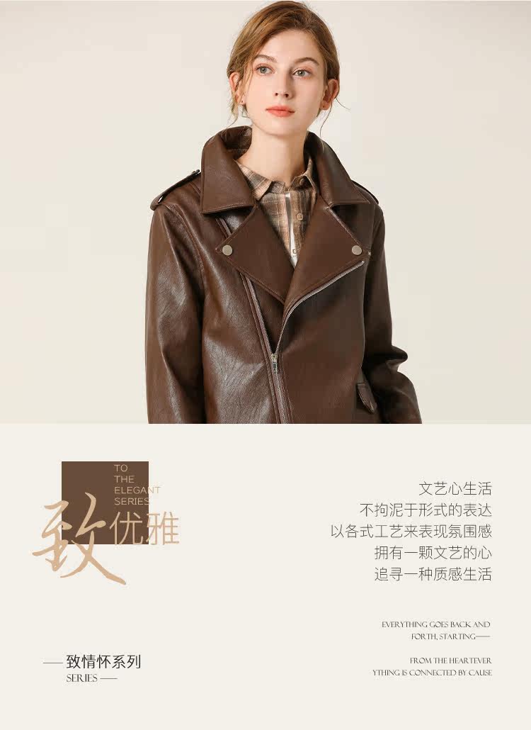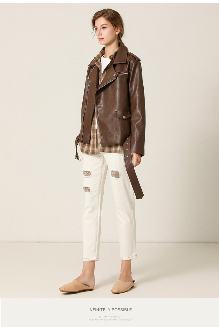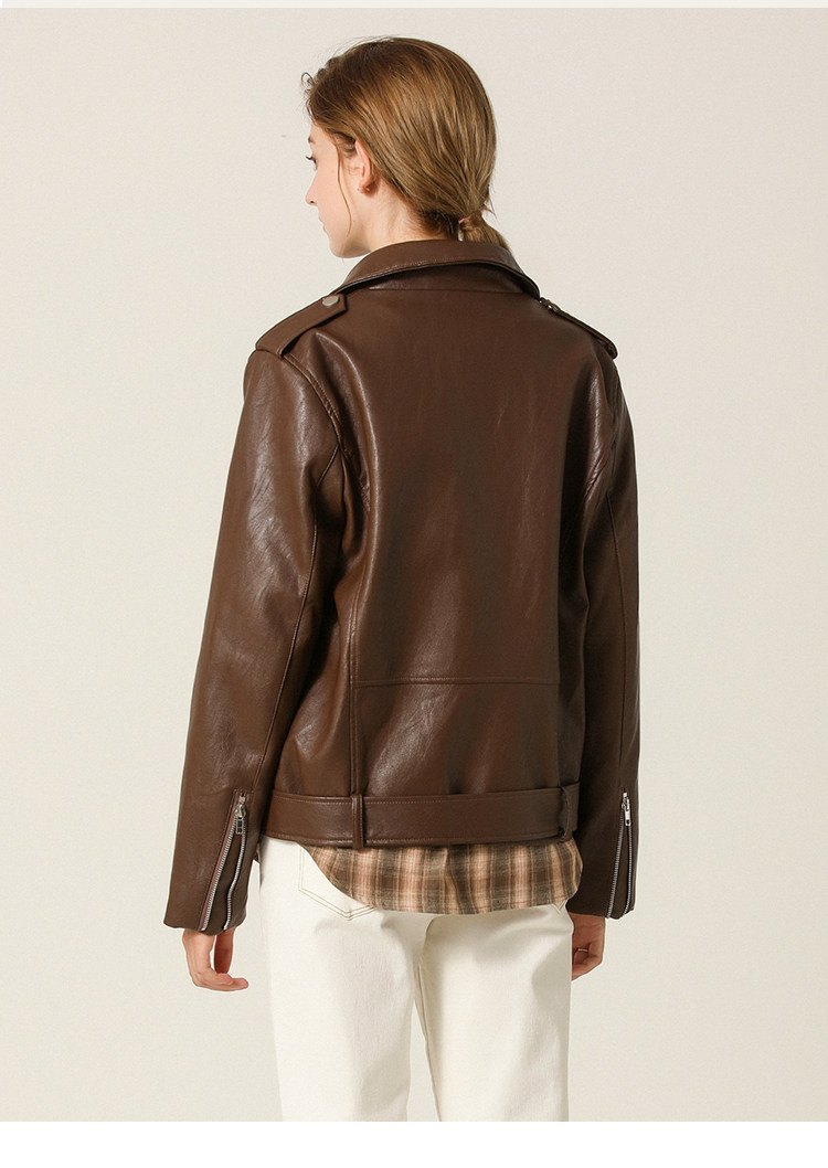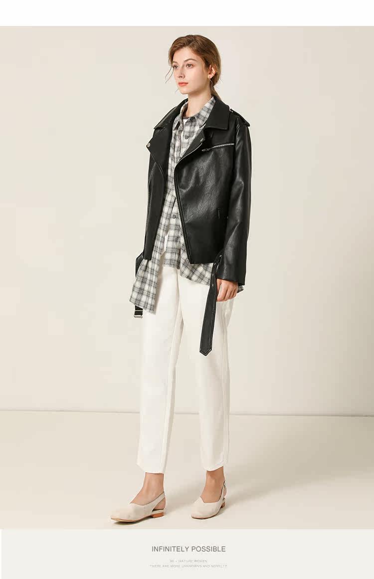 Famecoco范可儿春秋季时尚立领宽松短款PU皮衣外套F201AG103
