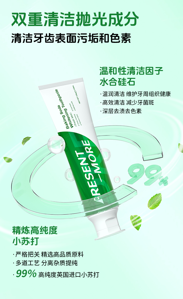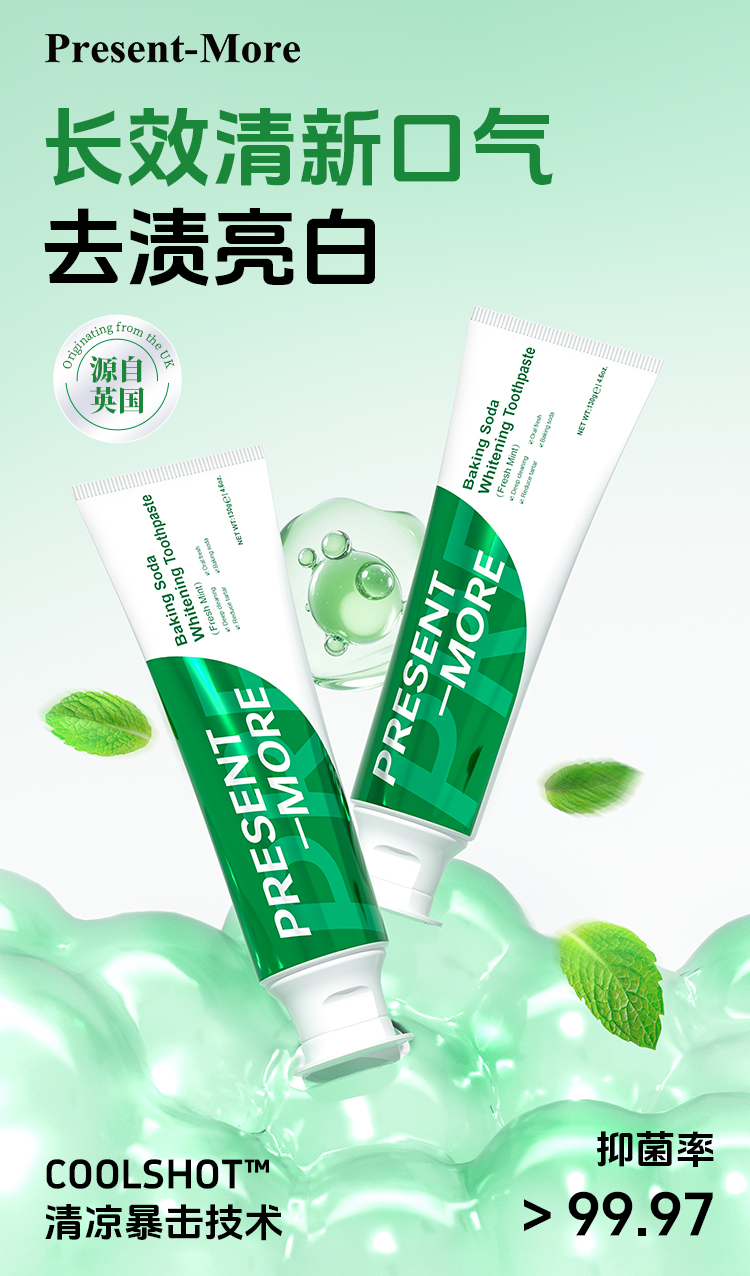 【Present-More普斯特小苏打清新健白牙膏(薄荷香型) 拍1到手11件】温和抛光深层洁净 专利清凉技术持久清新口气
