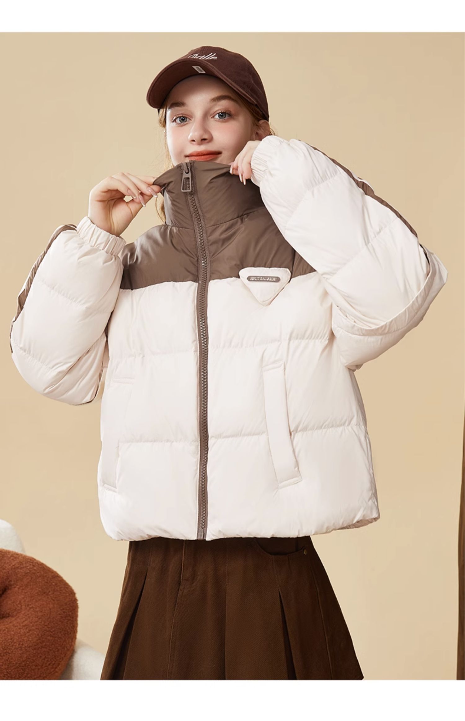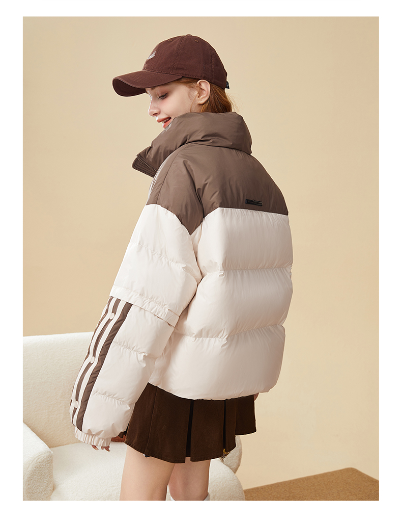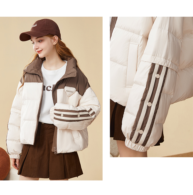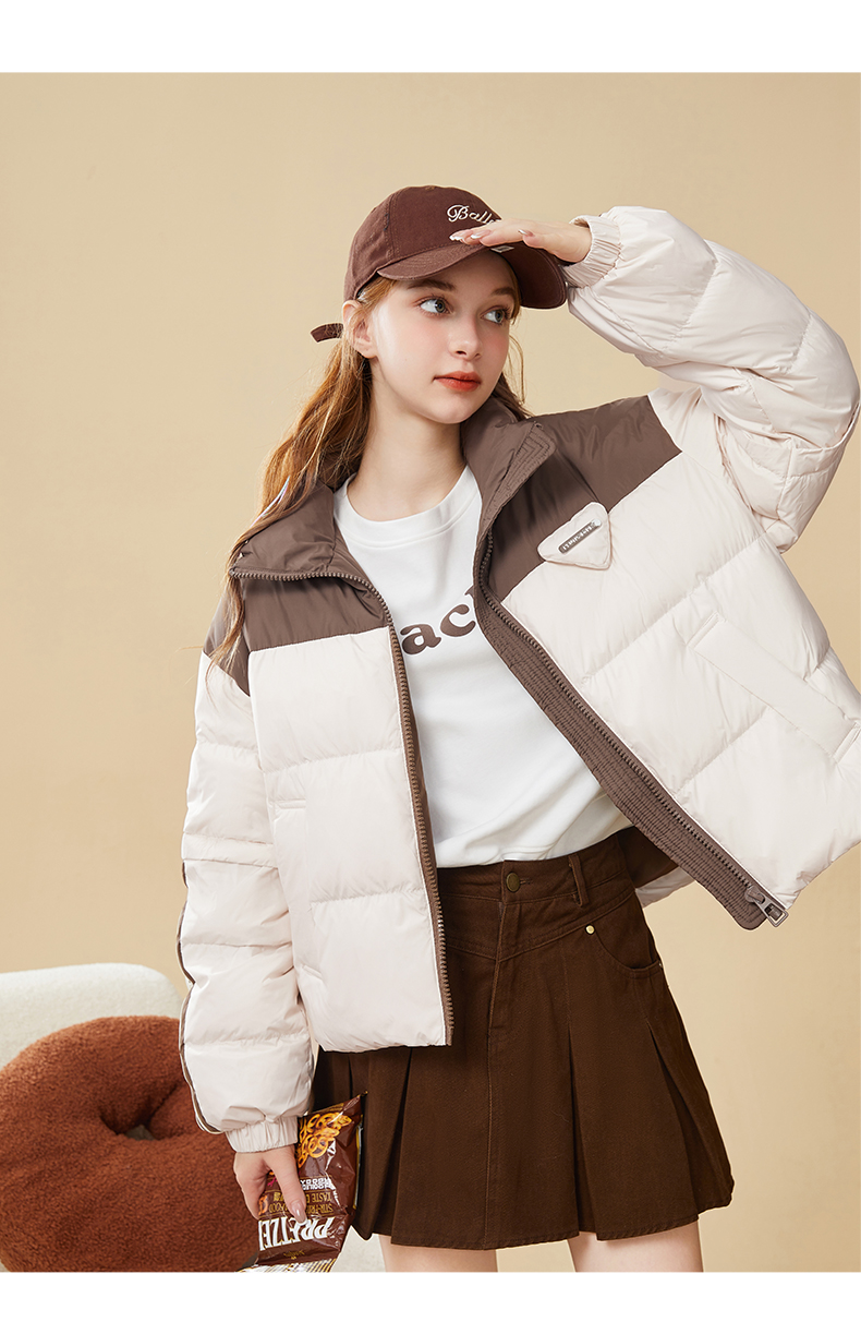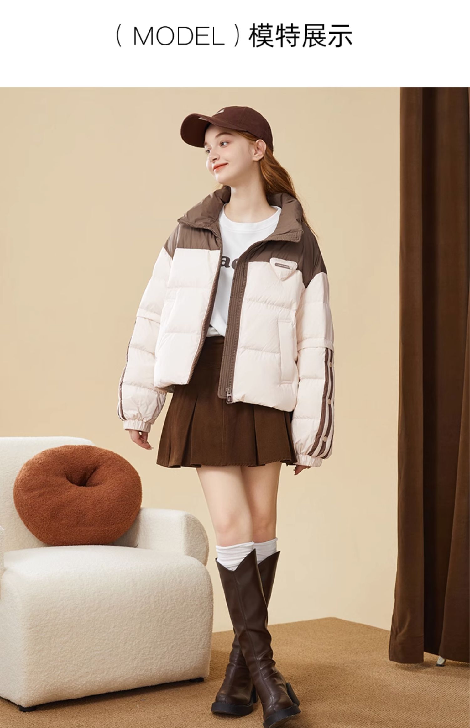 mc2撞色织带短款羽绒服女2023新款冬装立领美式复古运动风面包服