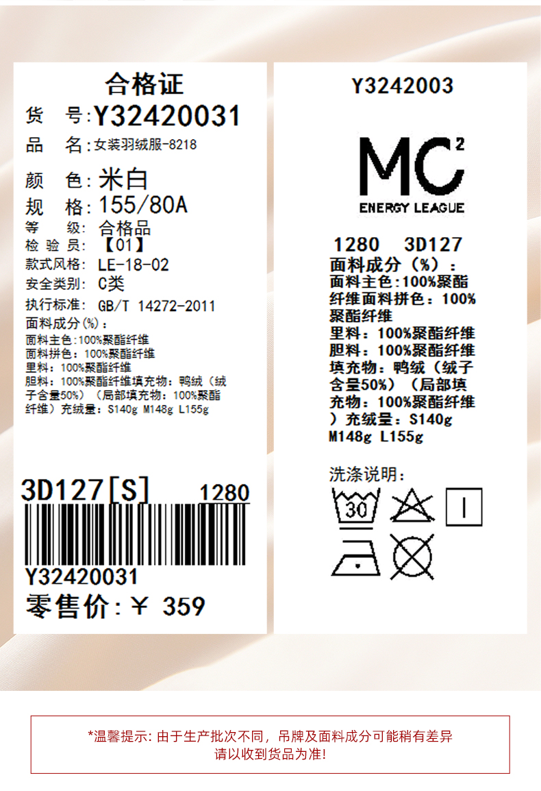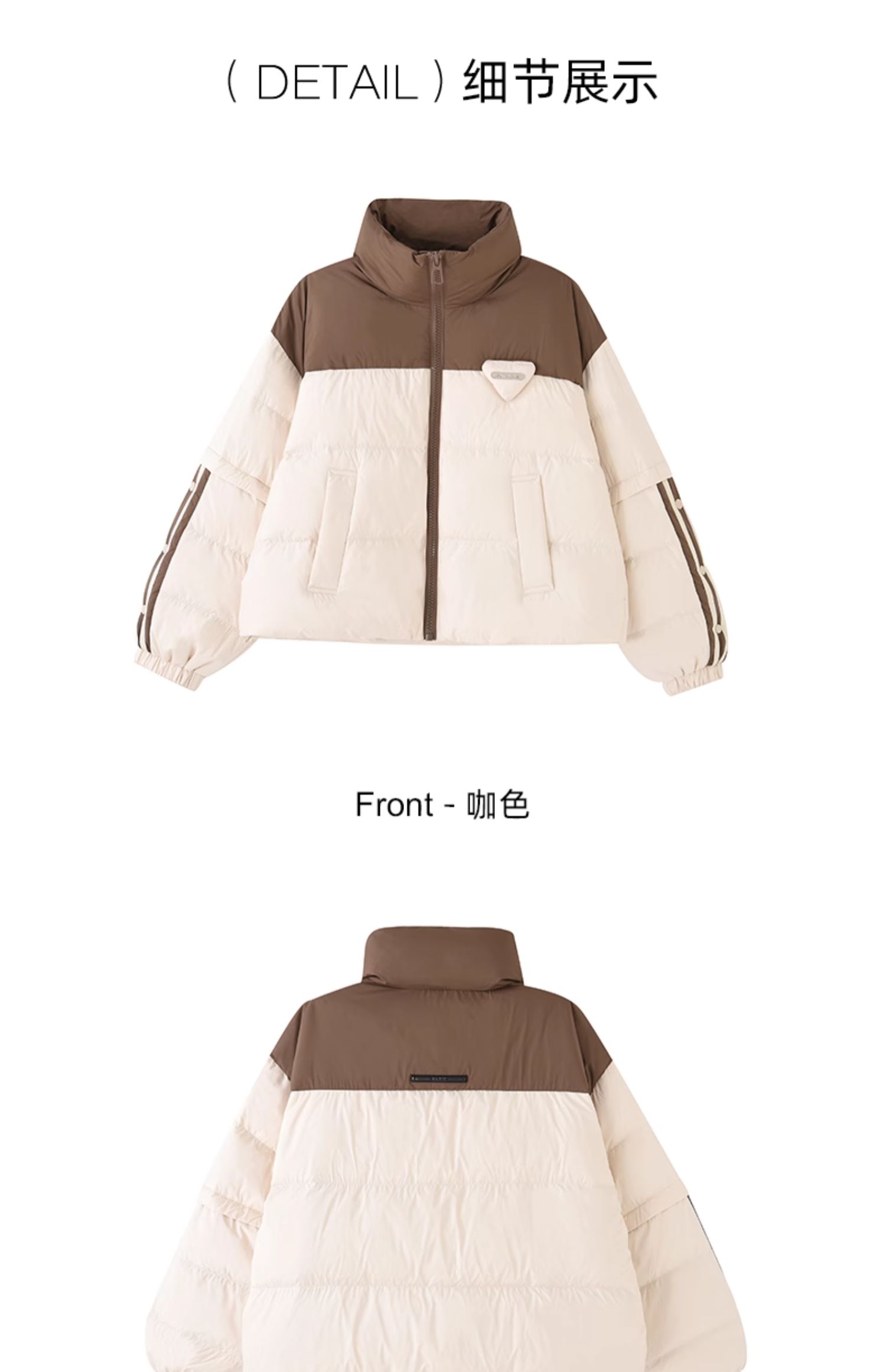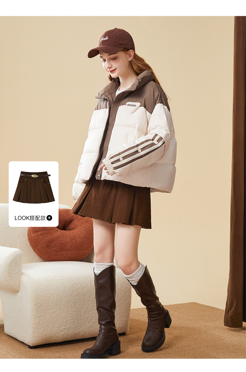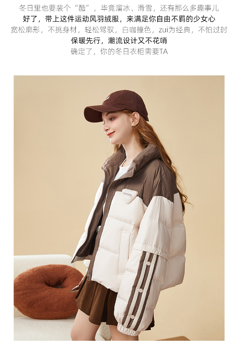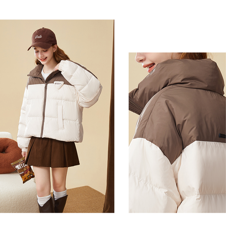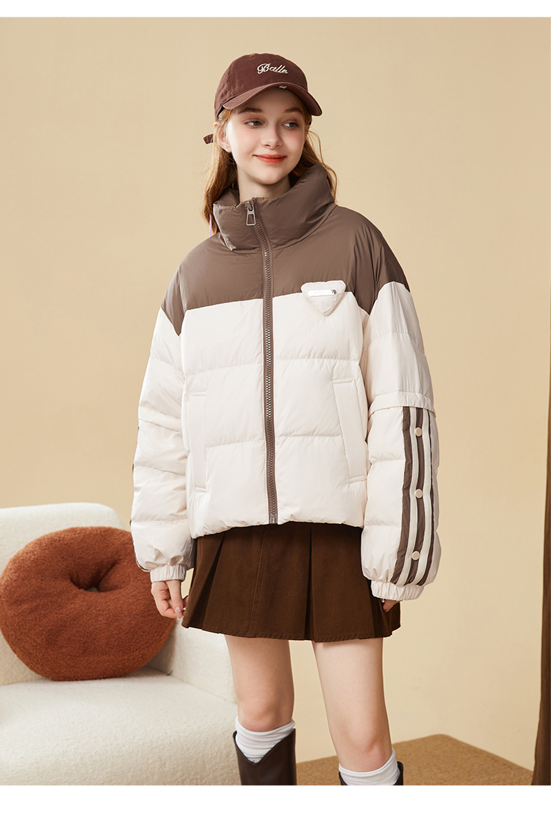 mc2撞色织带短款羽绒服女2023新款冬装立领美式复古运动风面包服