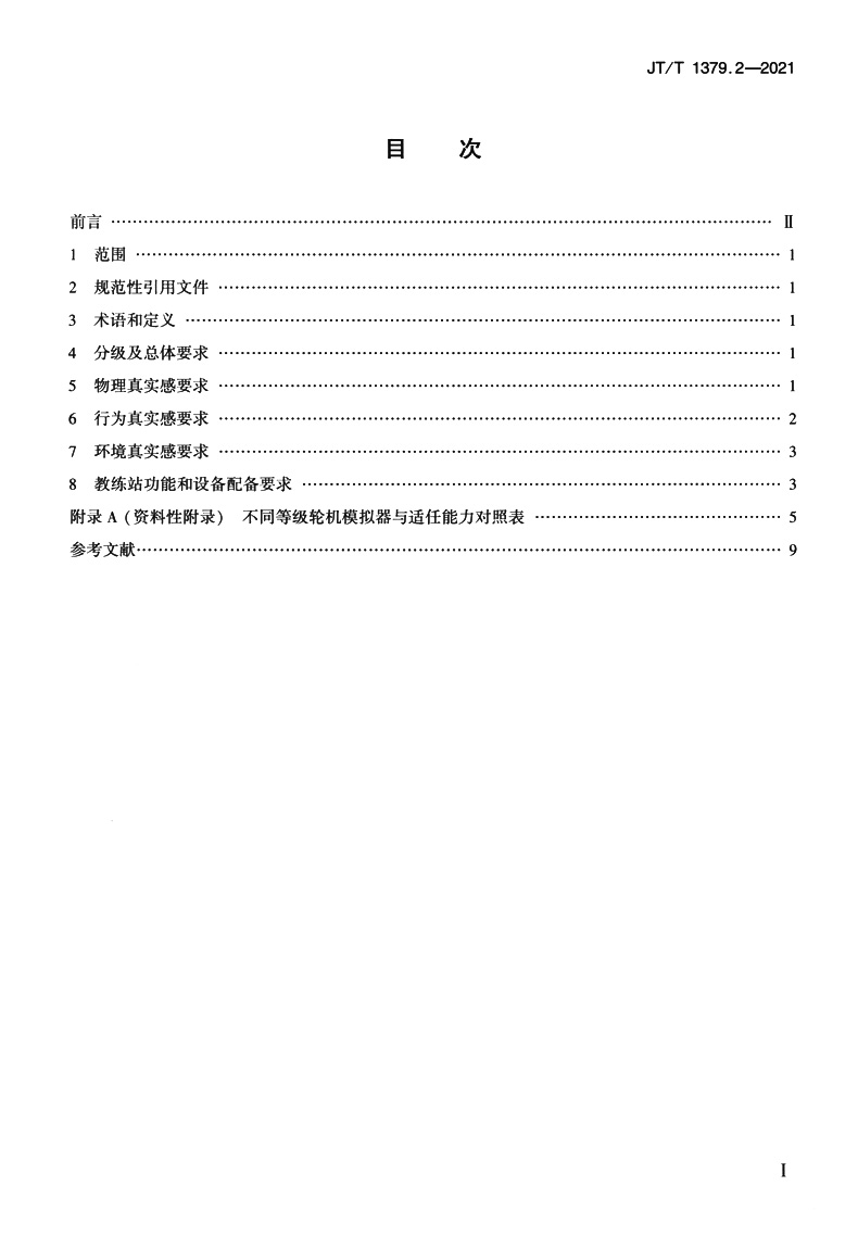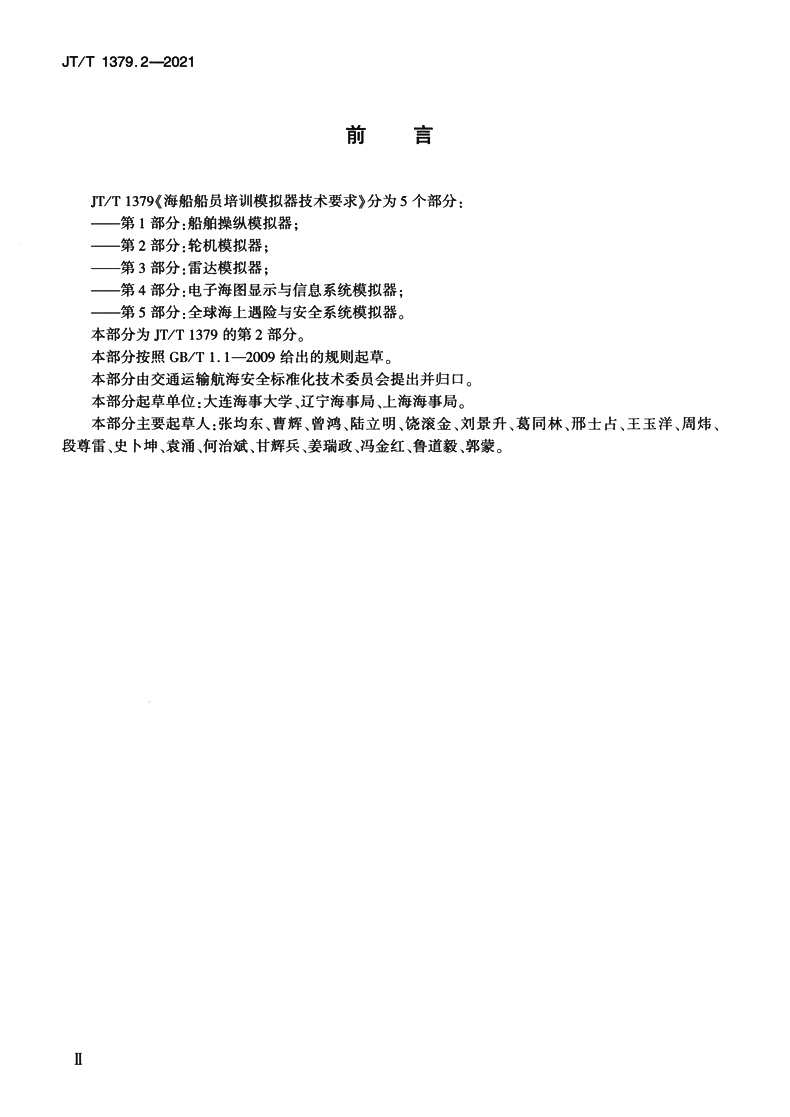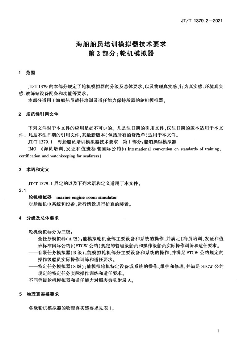 书名:海船船员培训模拟器技术要求 第2部分:轮机模拟器(JT/T 1379.2—2021)