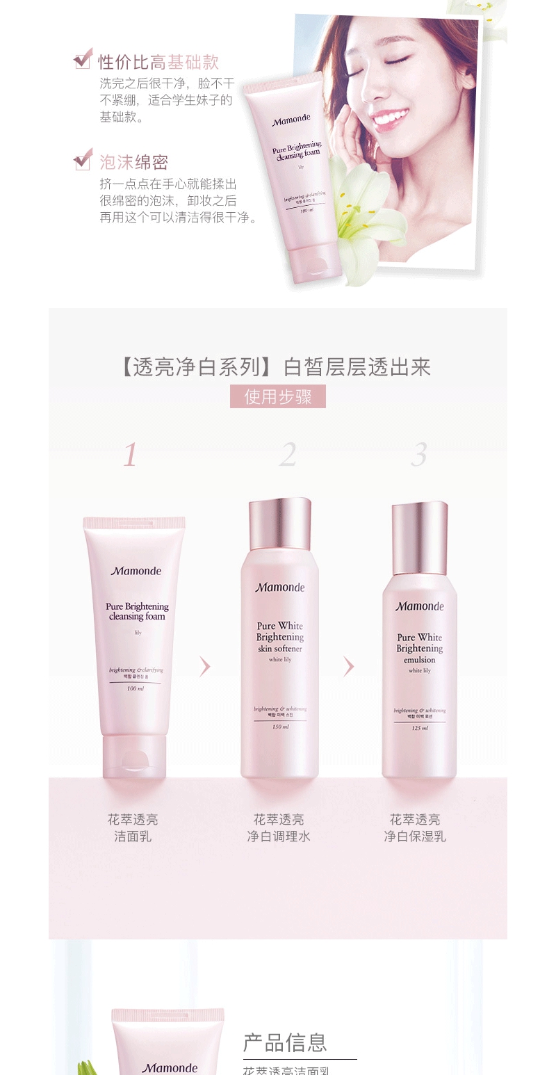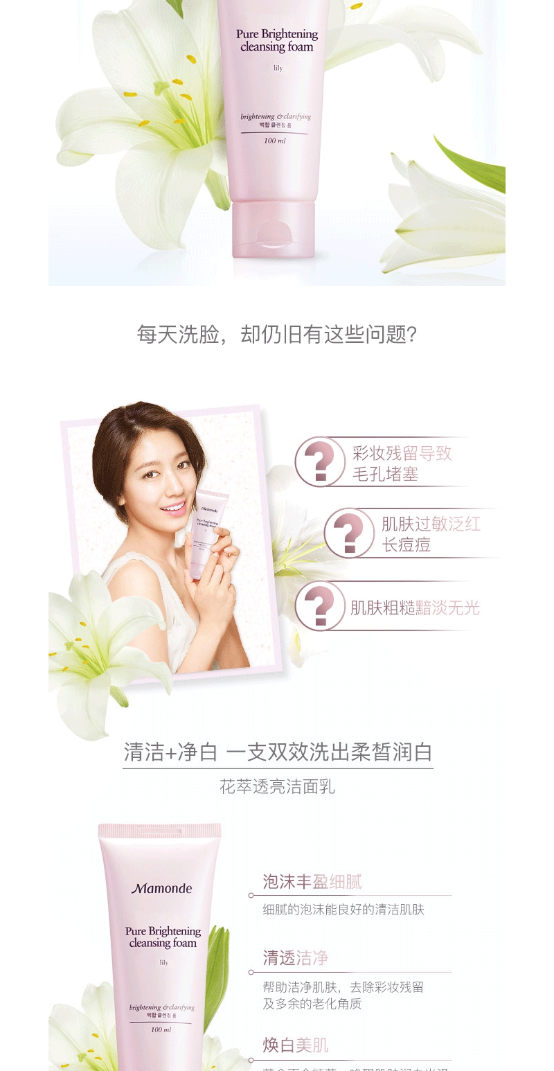 【YZ】Mamonde梦妆花萃透亮洁面乳温和补水保湿清洁水润清透净颜洗面奶