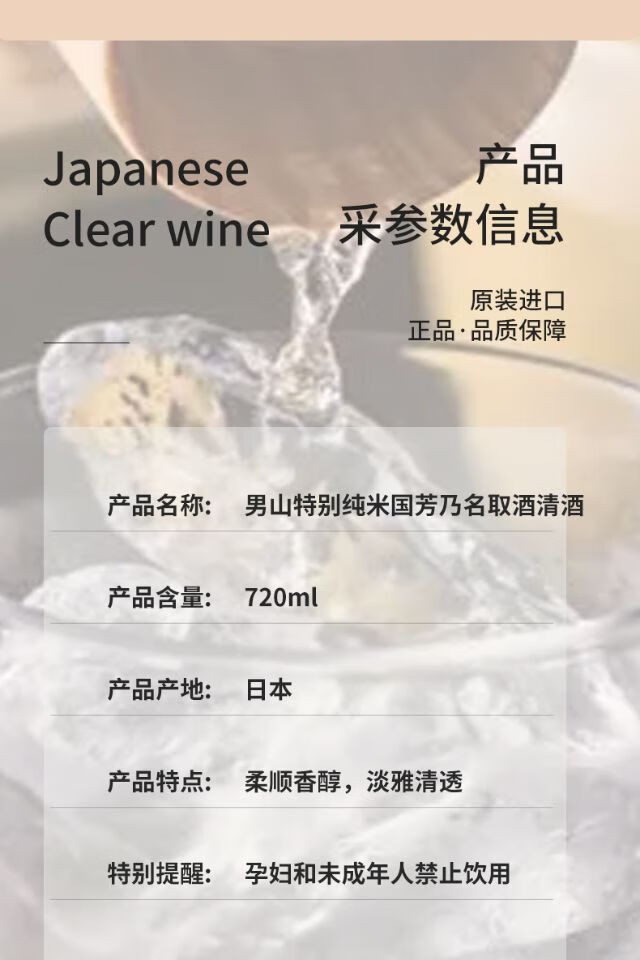 【锦高乐金】男山特别纯米国芳乃名取酒清酒 720ml
