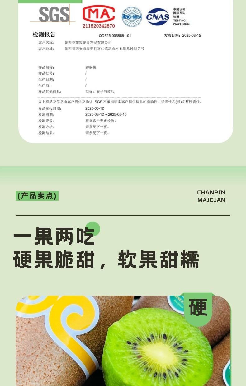 陕西周至金福硬食猕猴桃 猴子的救兵硬食猕猴桃 新鲜直供 原生态绿色食品 清香鲜甜 细腻香糯 现摘现发 新鲜美味【顺丰/京东包邮】
