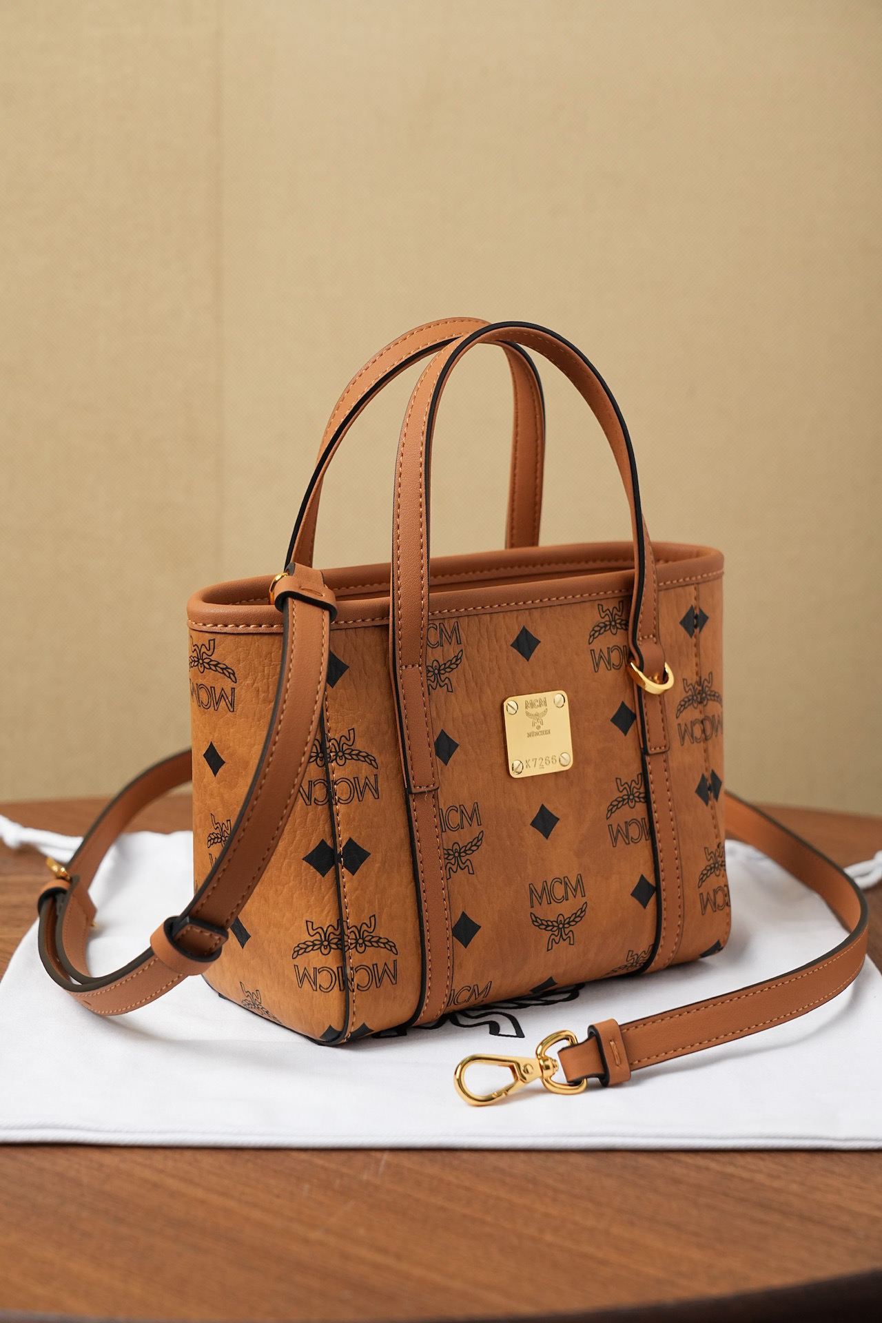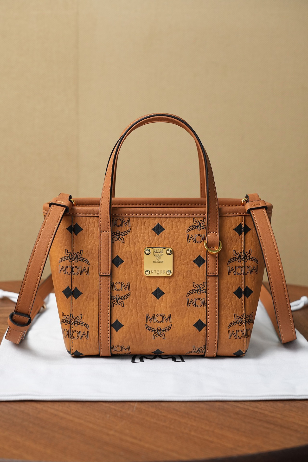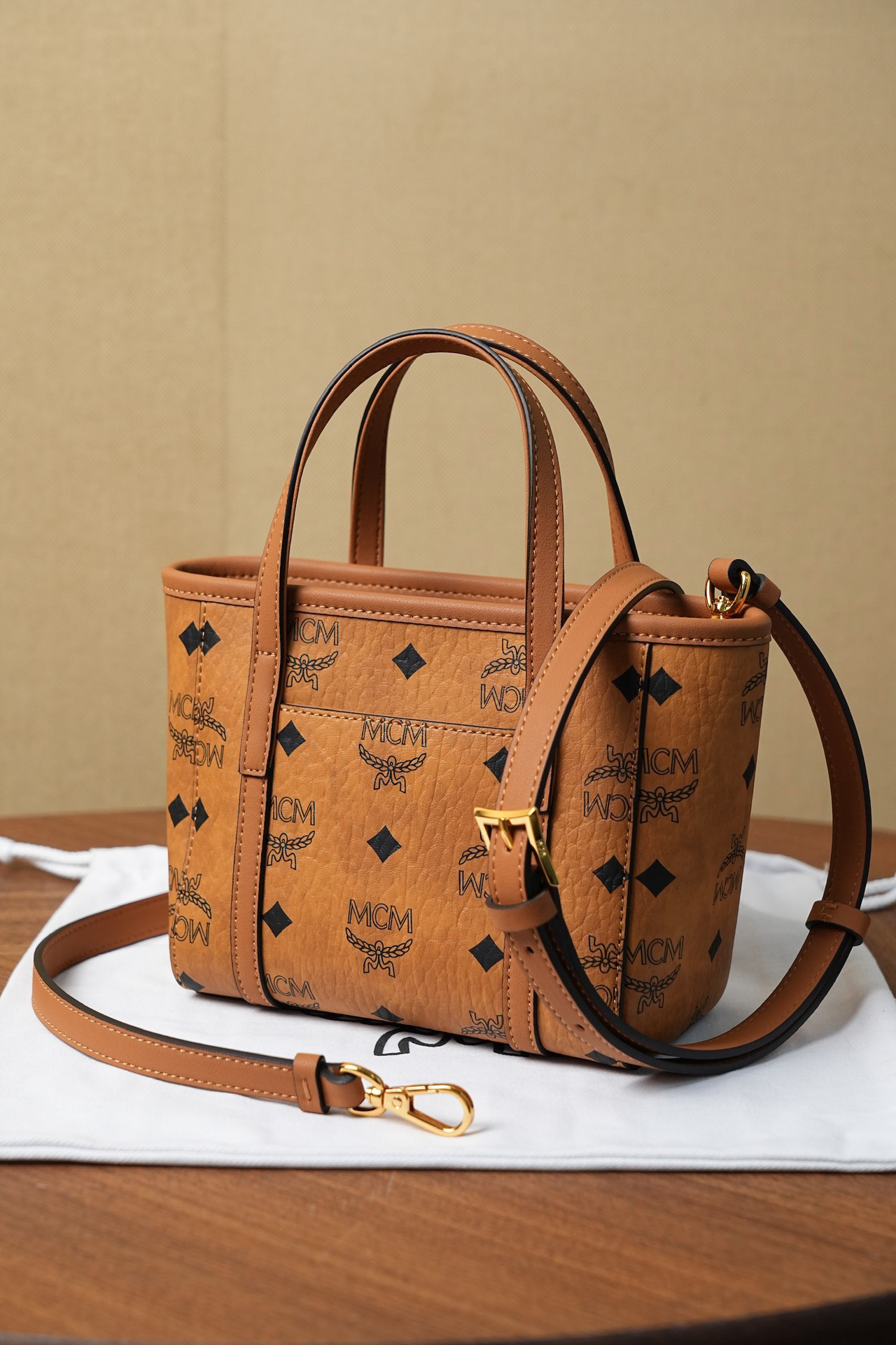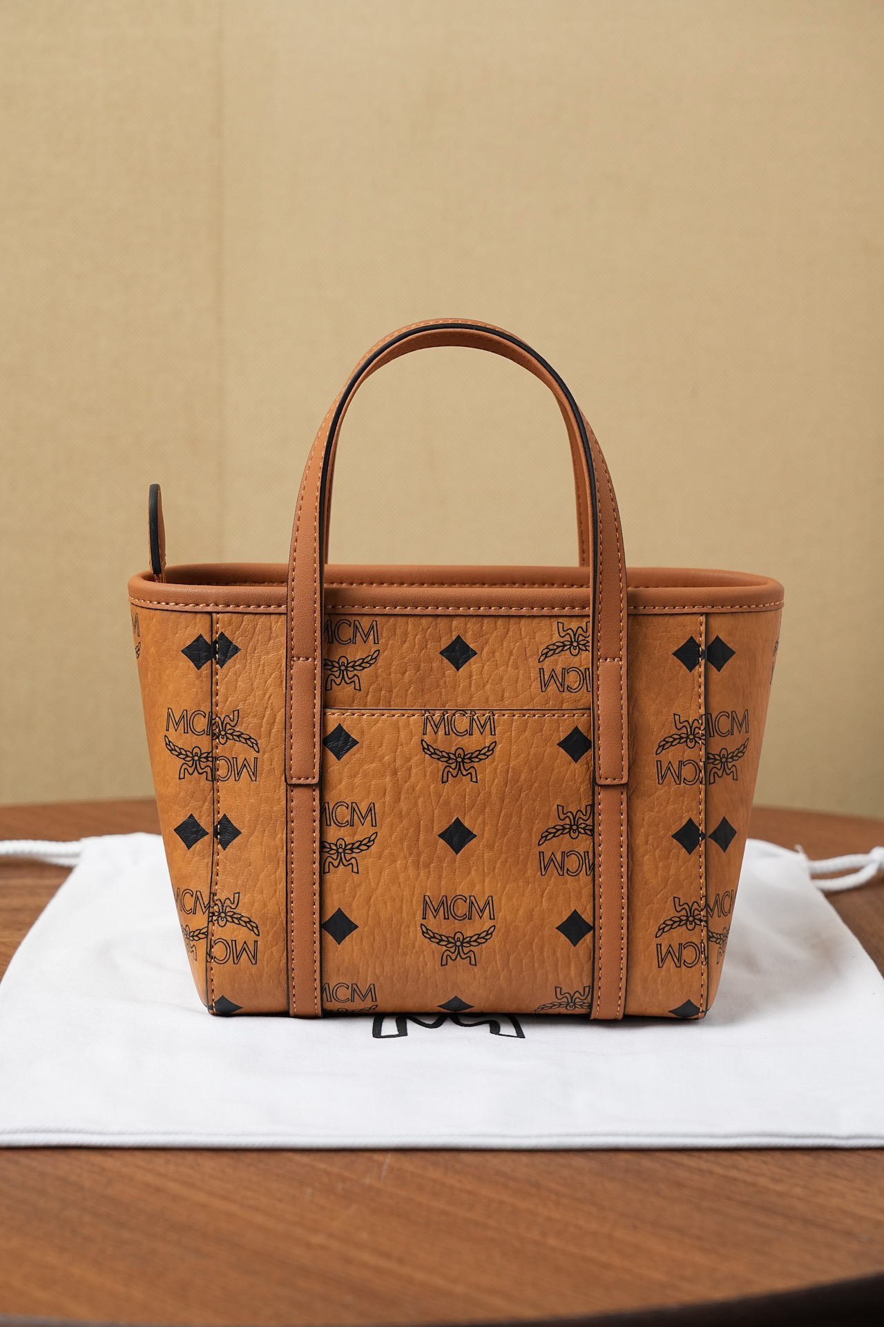 秋冬特惠💰760 原单MCM 原厂皮 新款菜篮子MWPFSMT03CO001 经典干邑色