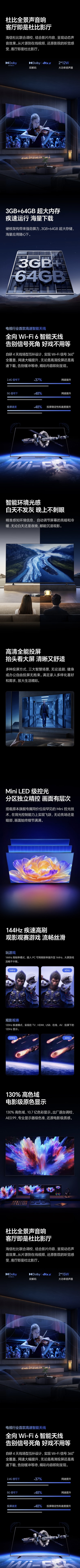 海信(Hisense)(912850)电视 A51Q系列 Mini LED级控光 U+超画质引擎4K高清画质 WIFI6 家用客厅平板电视机 65英寸 65A51Q