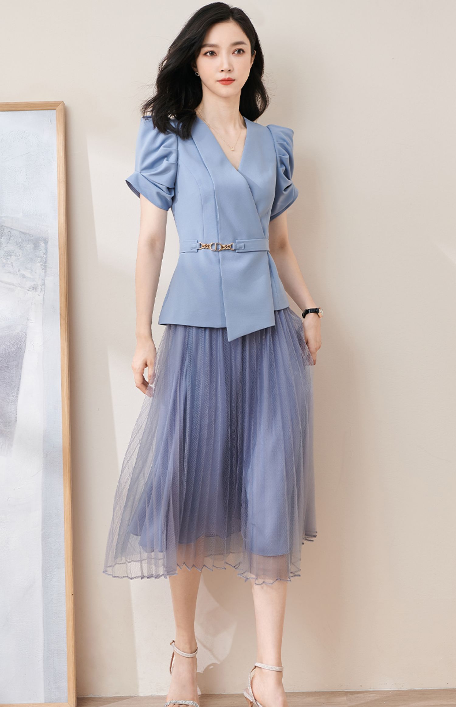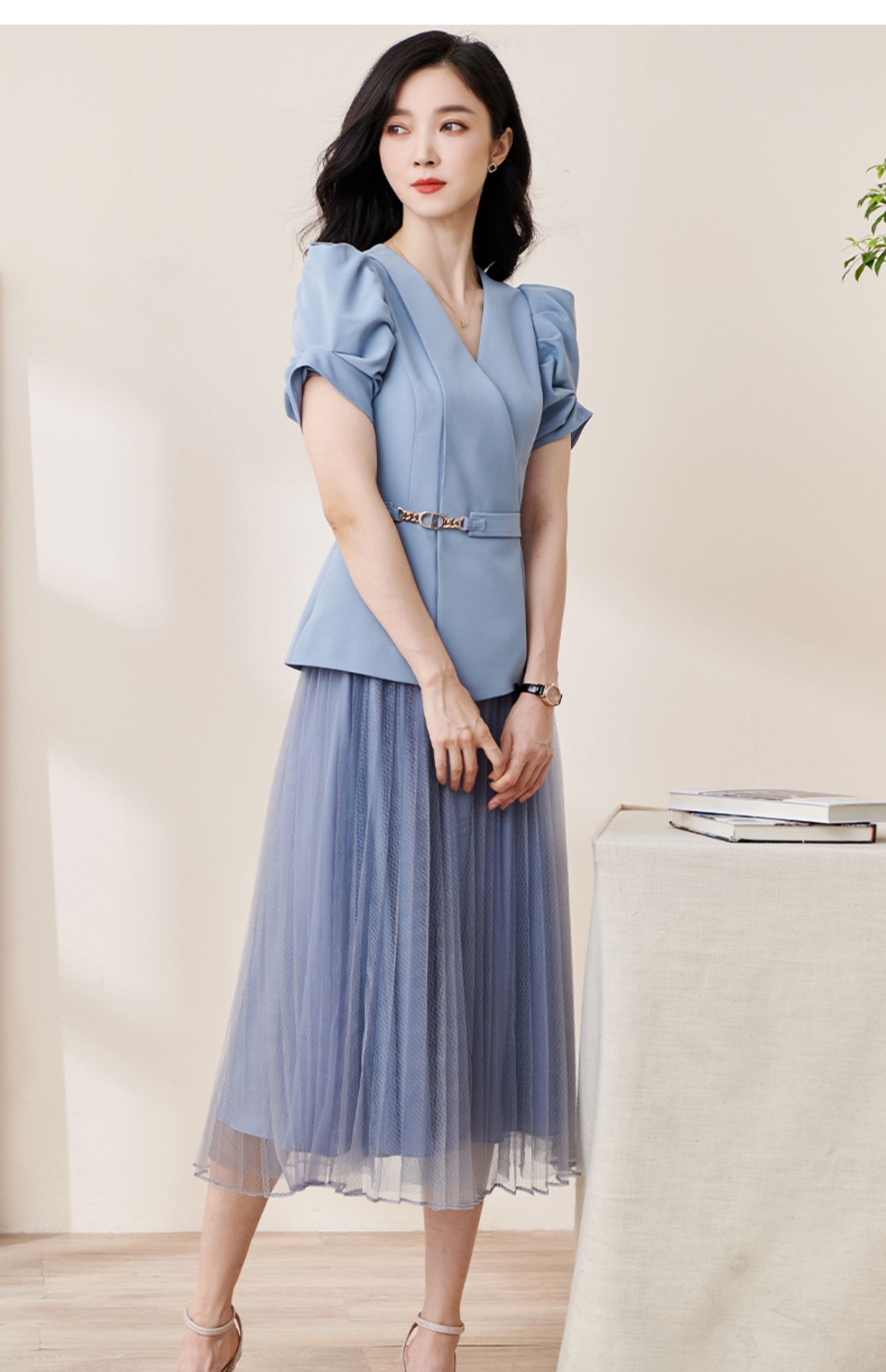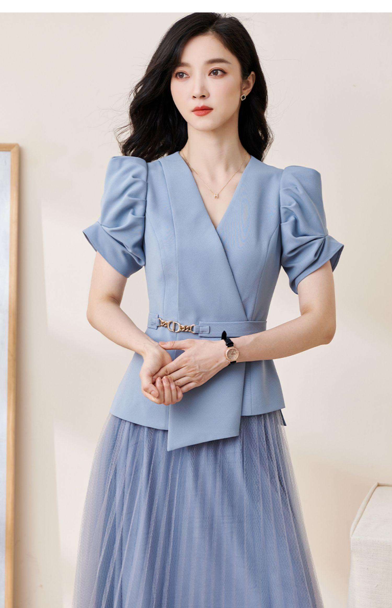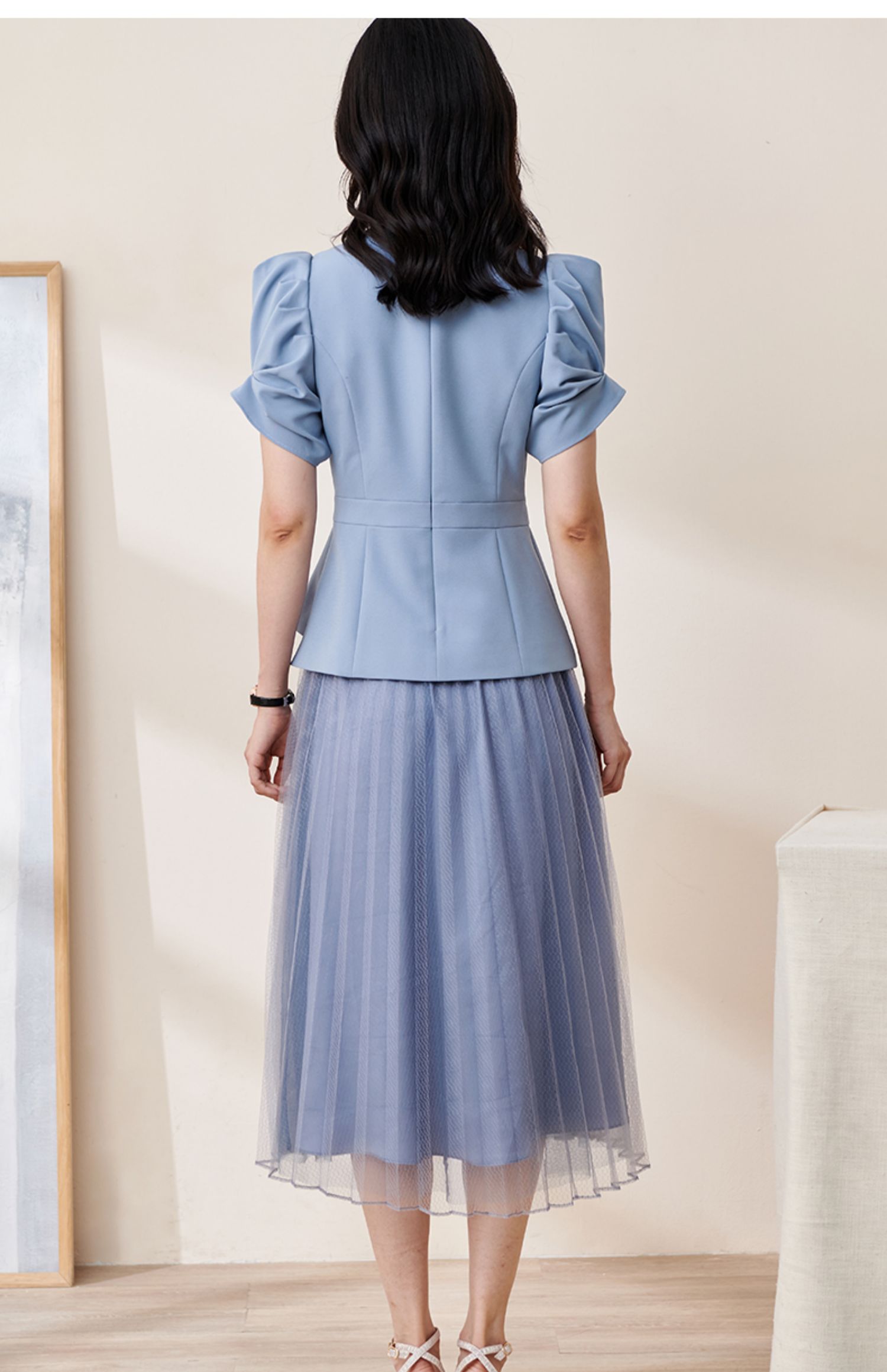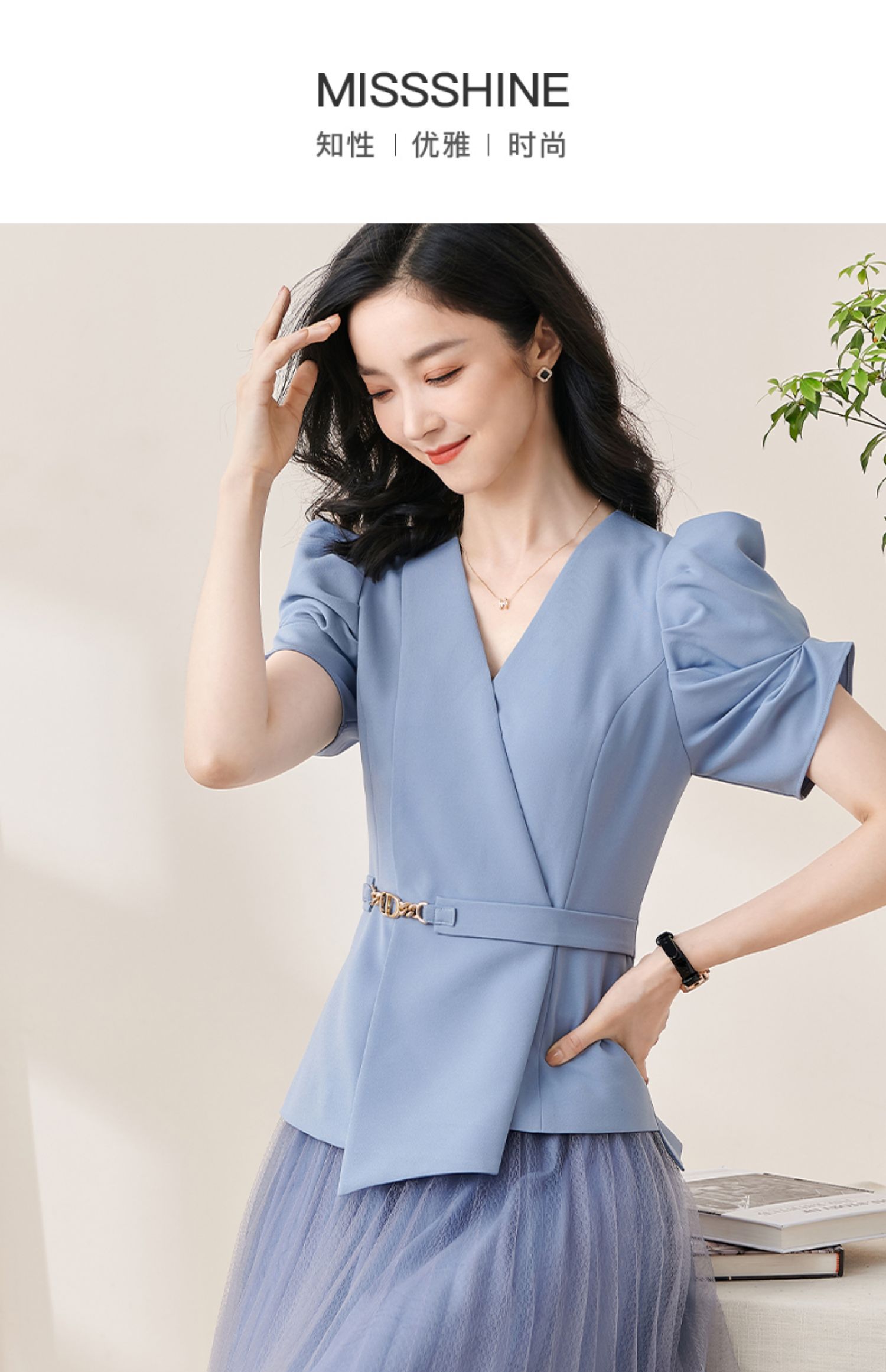 米思阳2025夏季新款职场通勤修身西装时尚设计感泡泡袖外套女1735