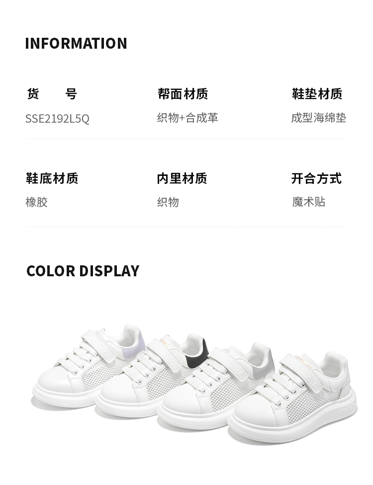 【童鞋】星期六休闲百搭男女童网面小白鞋SSE2192L5Q