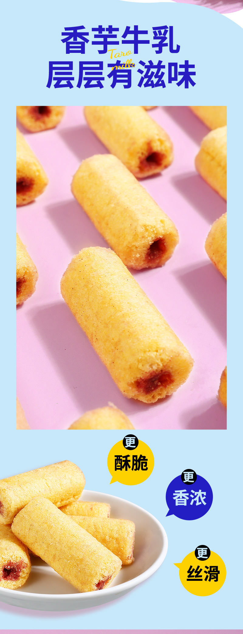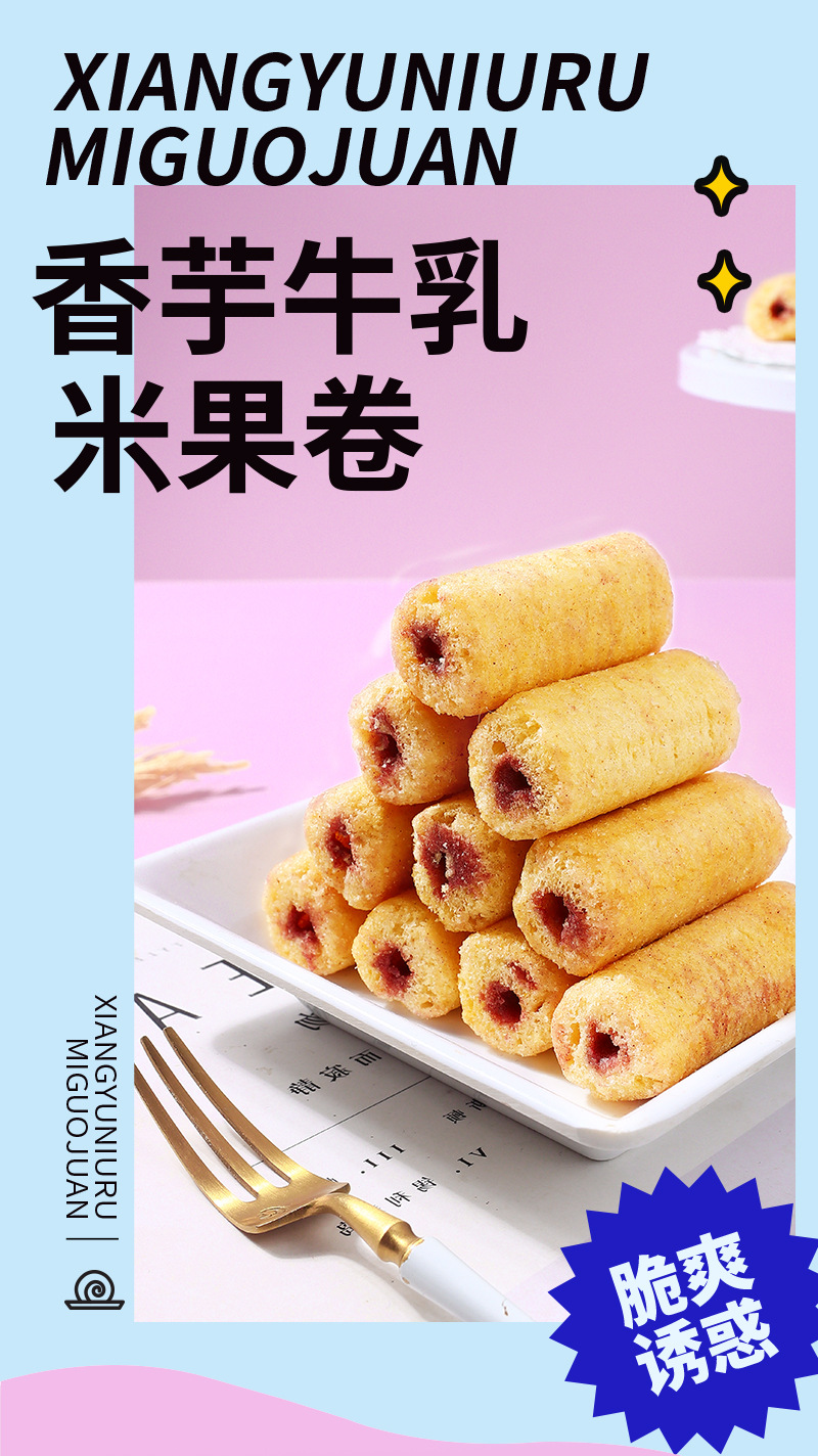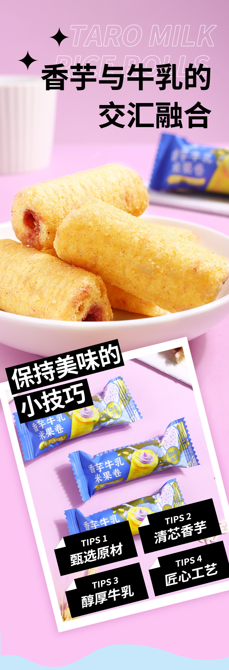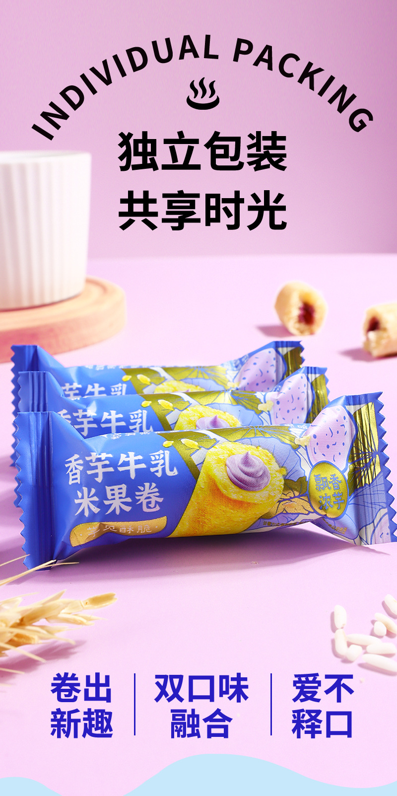 【19.9抢80包❗香芋牛乳米果卷】内层柔滑夹心谷物清香,香芋牛乳层层有滋味,双重口感爱不 释口,米香恒温烘焙独立包装休闲小零食食品散装QQ