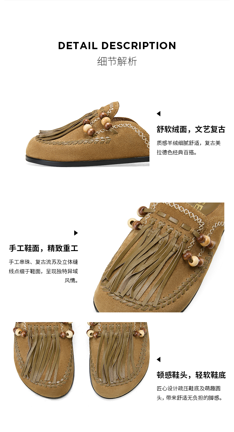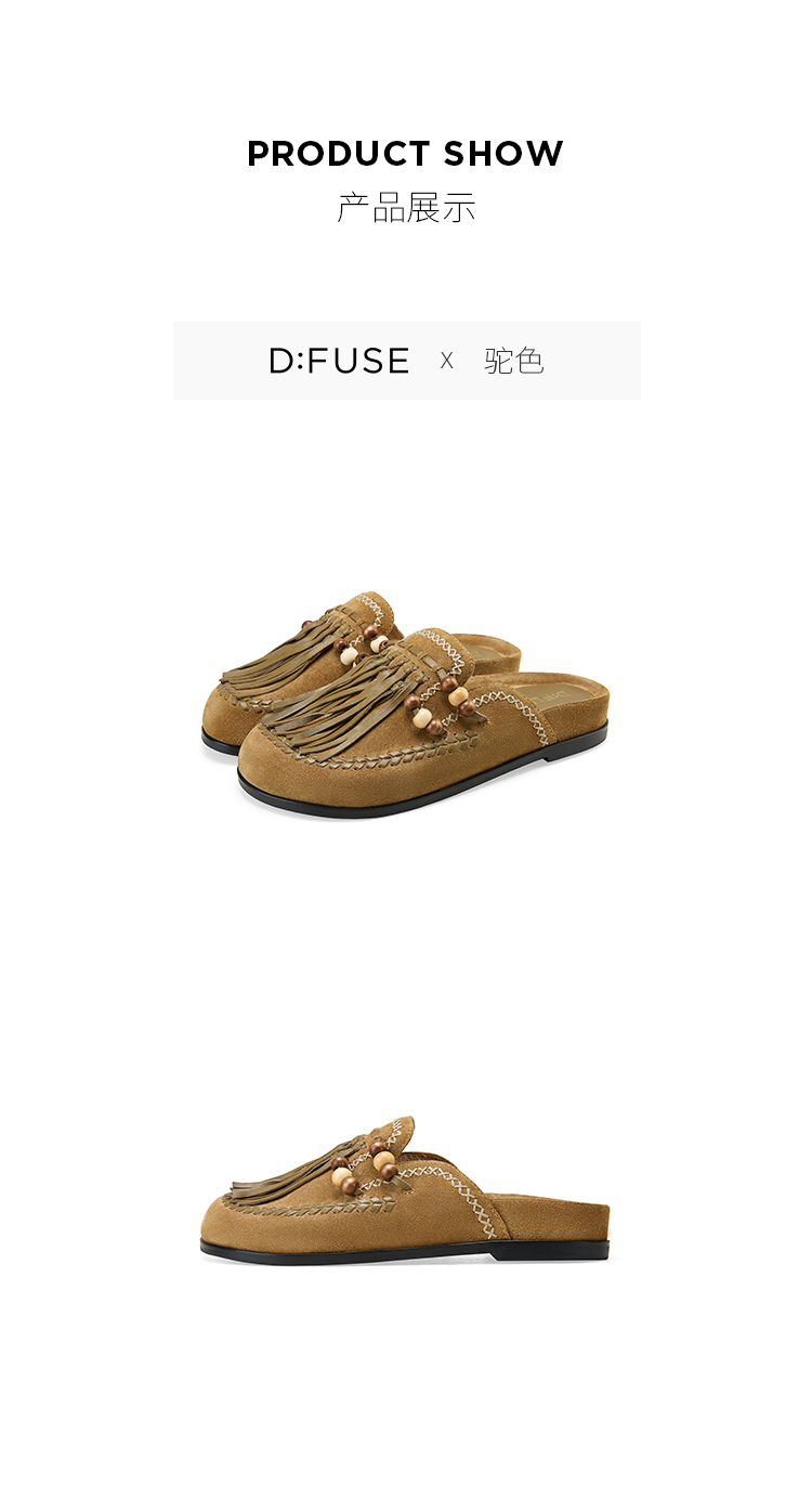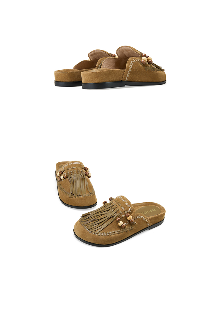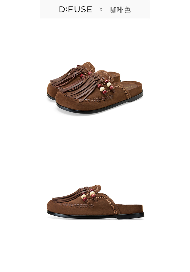 Dfuse迪芙斯2025春季新款手工感一脚蹬懒人鞋复古流苏包头勃肯鞋DFD1110127