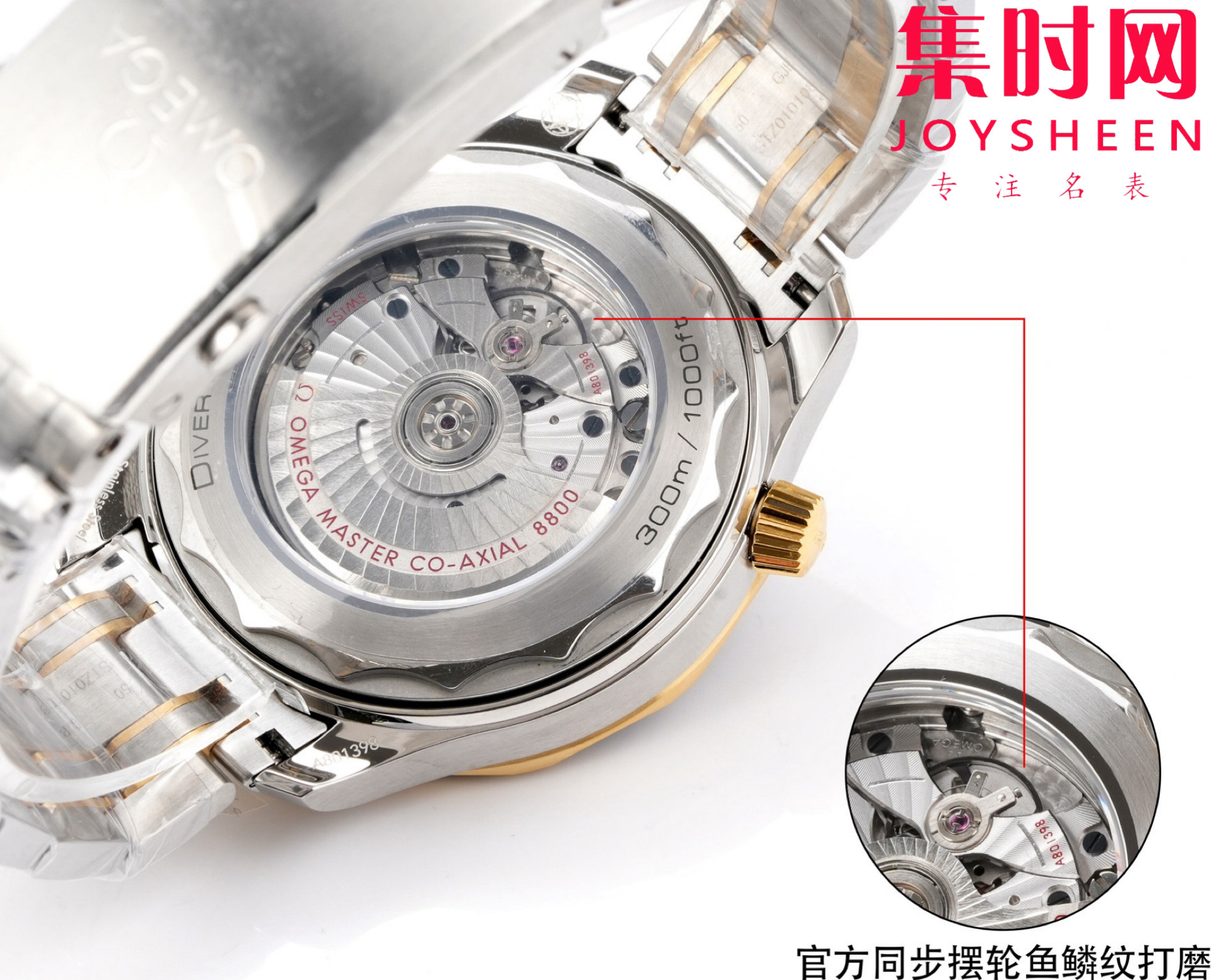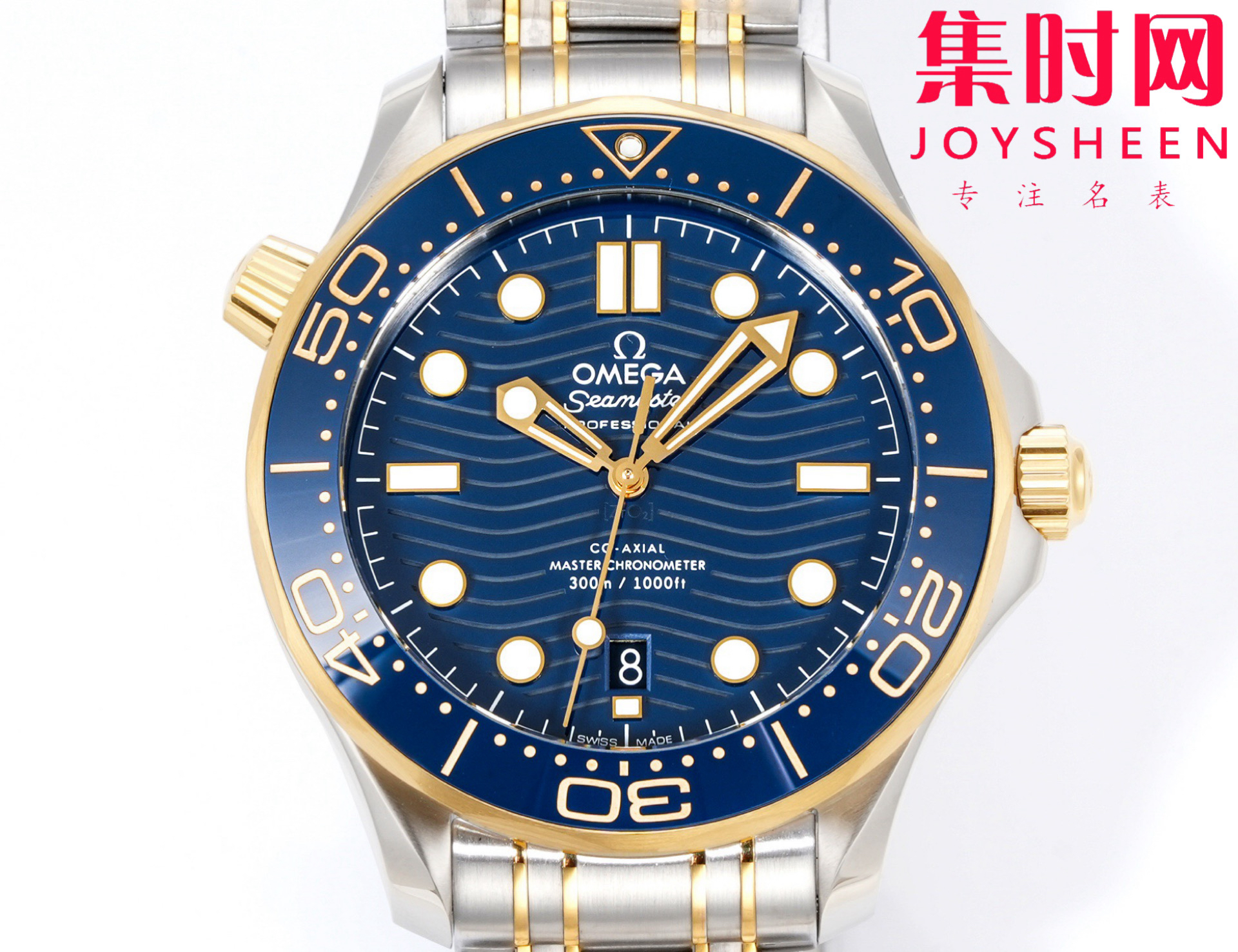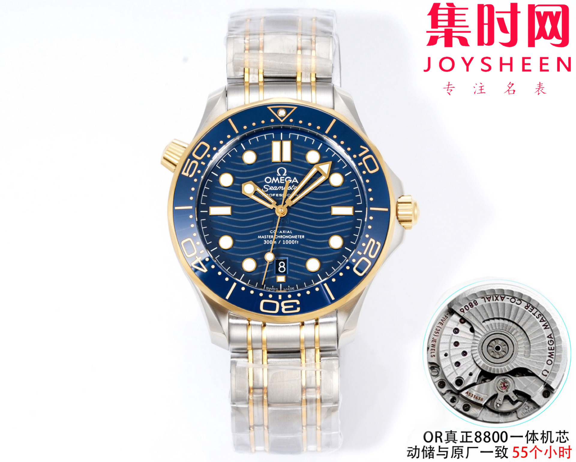 OR欧米茄海马300米系列 间金蓝海马 8800一体机 男士腕表 表径42mm 让您有更好的选择,唯一原装开模对版的全新海马300米潜水表系列,每个配件几乎全新开模对版zui新专柜的设计,耗时三年半研究开发出真正的OR定制Cal.8800一体自动上链机械机芯。