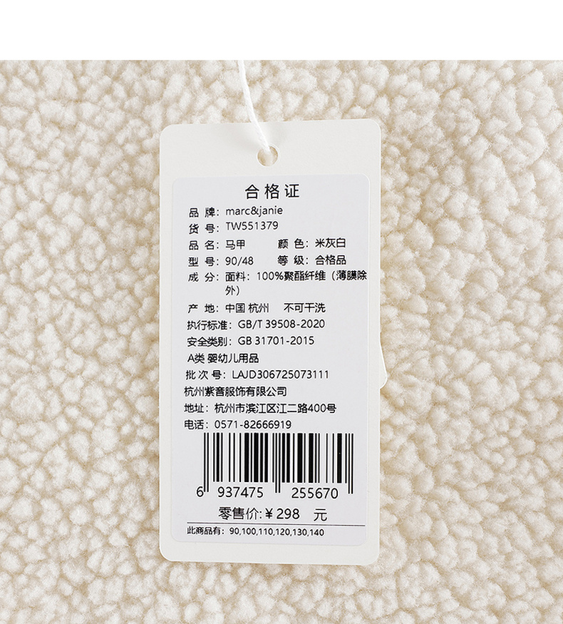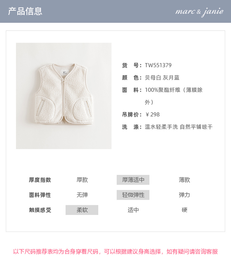 马克珍妮男童亲肤软糯摇粒绒马甲2025年秋冬新款551379