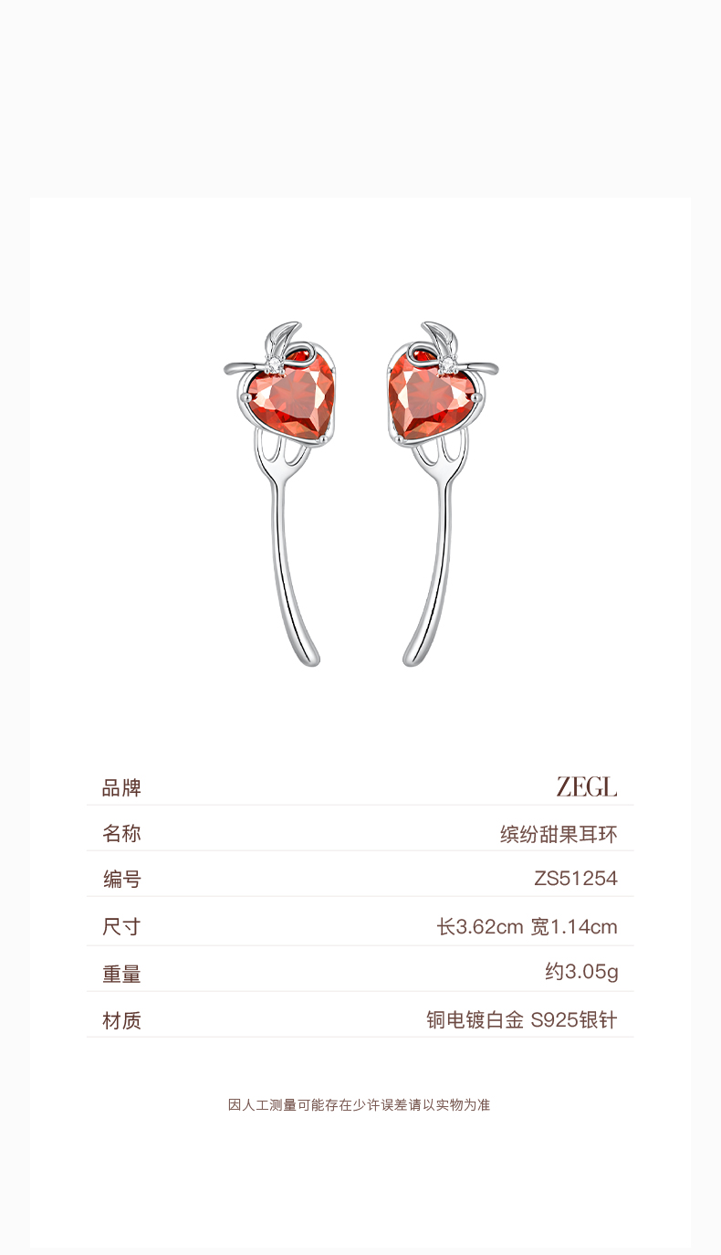 ZEGL缤纷甜果系列草莓耳环女2024新款爆款高级感耳钉银针夏日耳饰