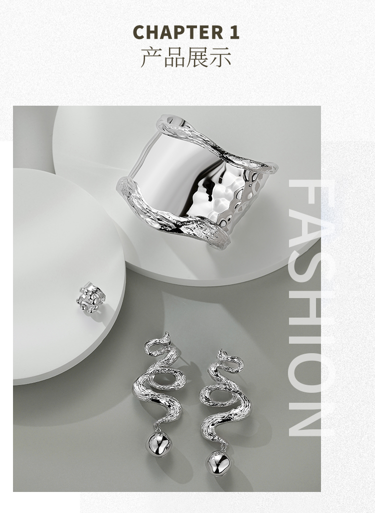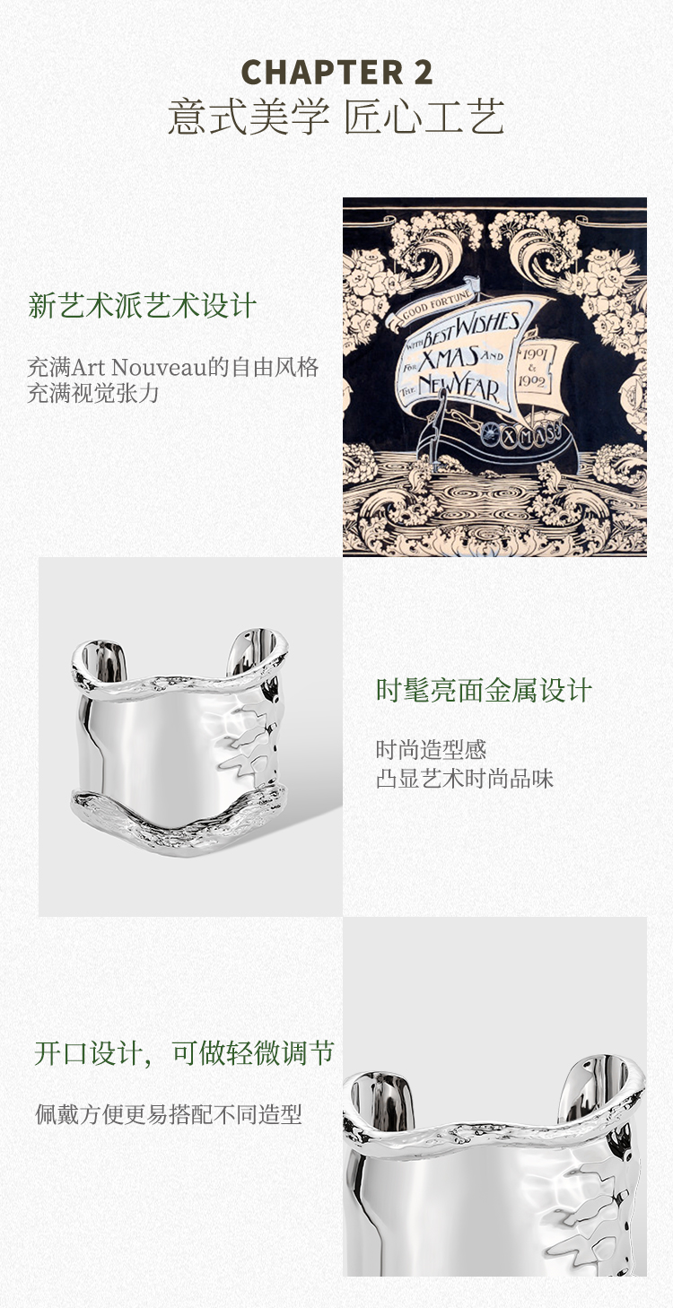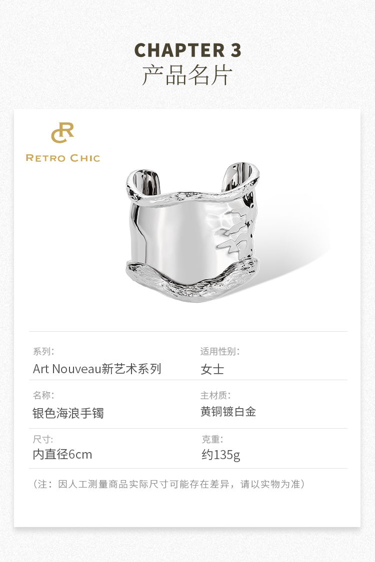 【范冰冰&薛凯琪&迪丽热巴&谭维维&吉克隽逸&刘惜君&辛芷蕾&姚晓棠&李佳薇&喻言同款】Retro Chic 意大利复古创意饰品 银色海浪手镯