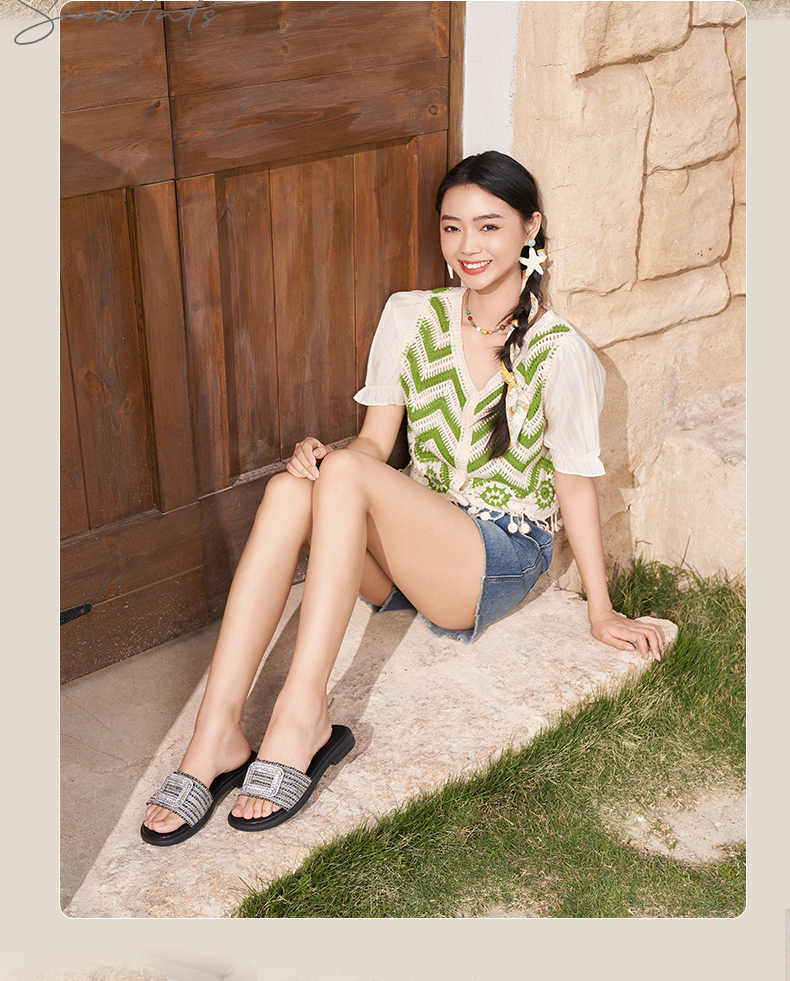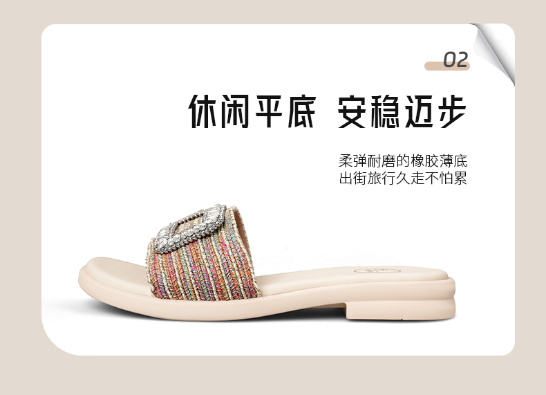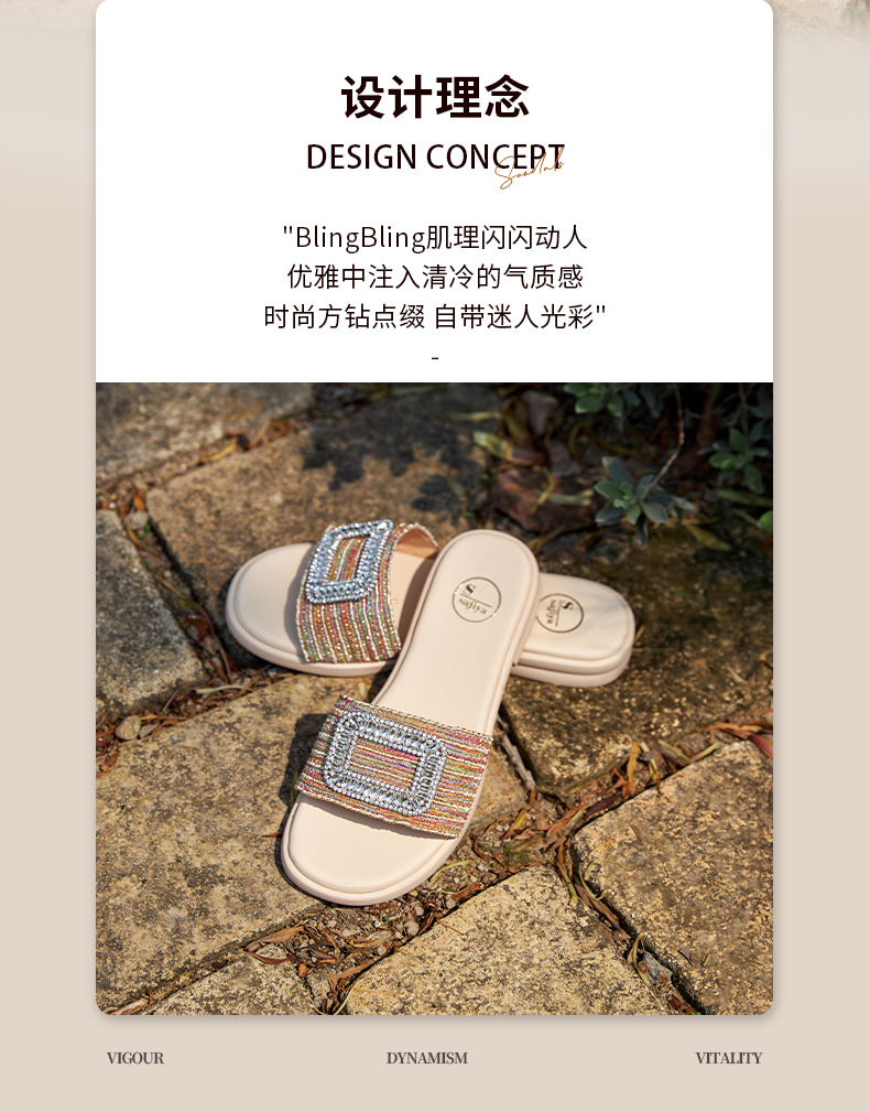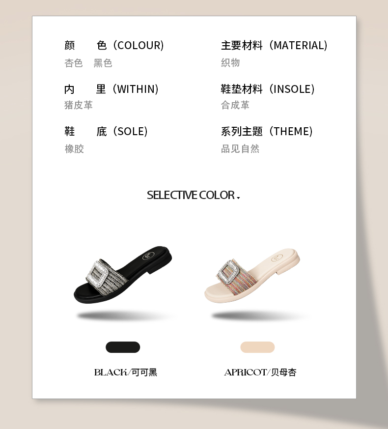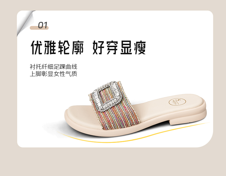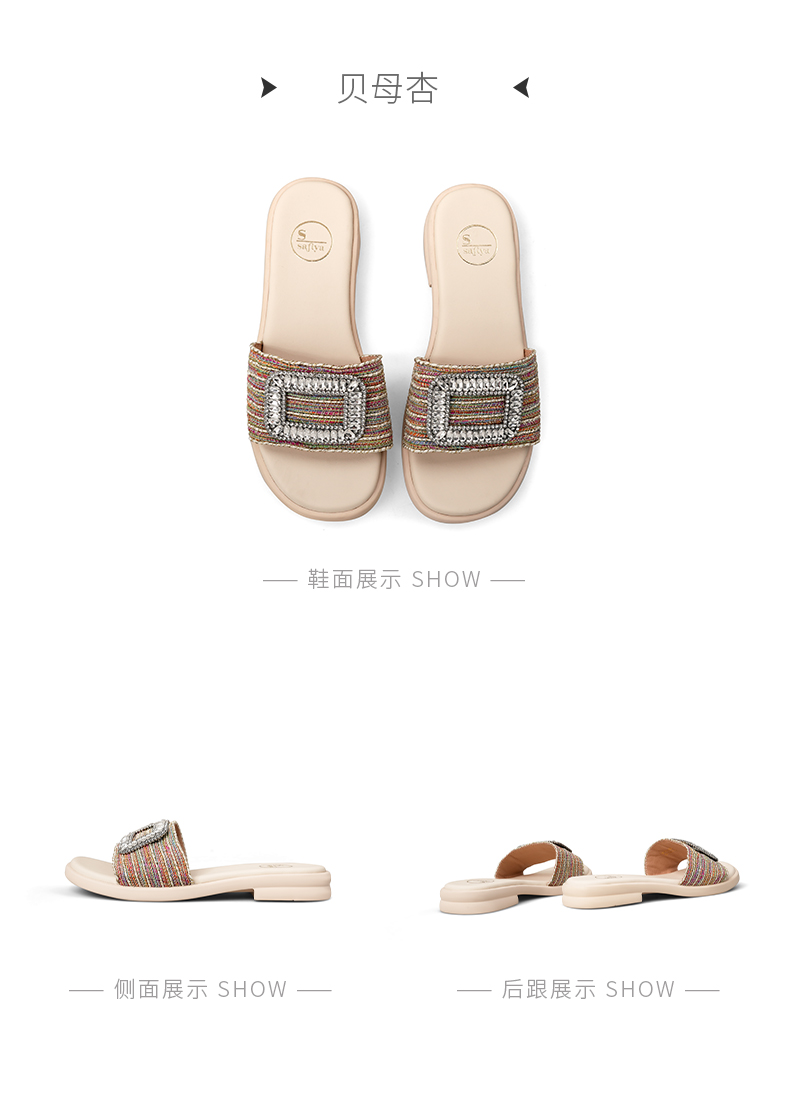 预售10天|Safiya/索菲娅2025夏季外穿一字拖气质时尚方钻扣圆头露趾拖鞋SFD2110368