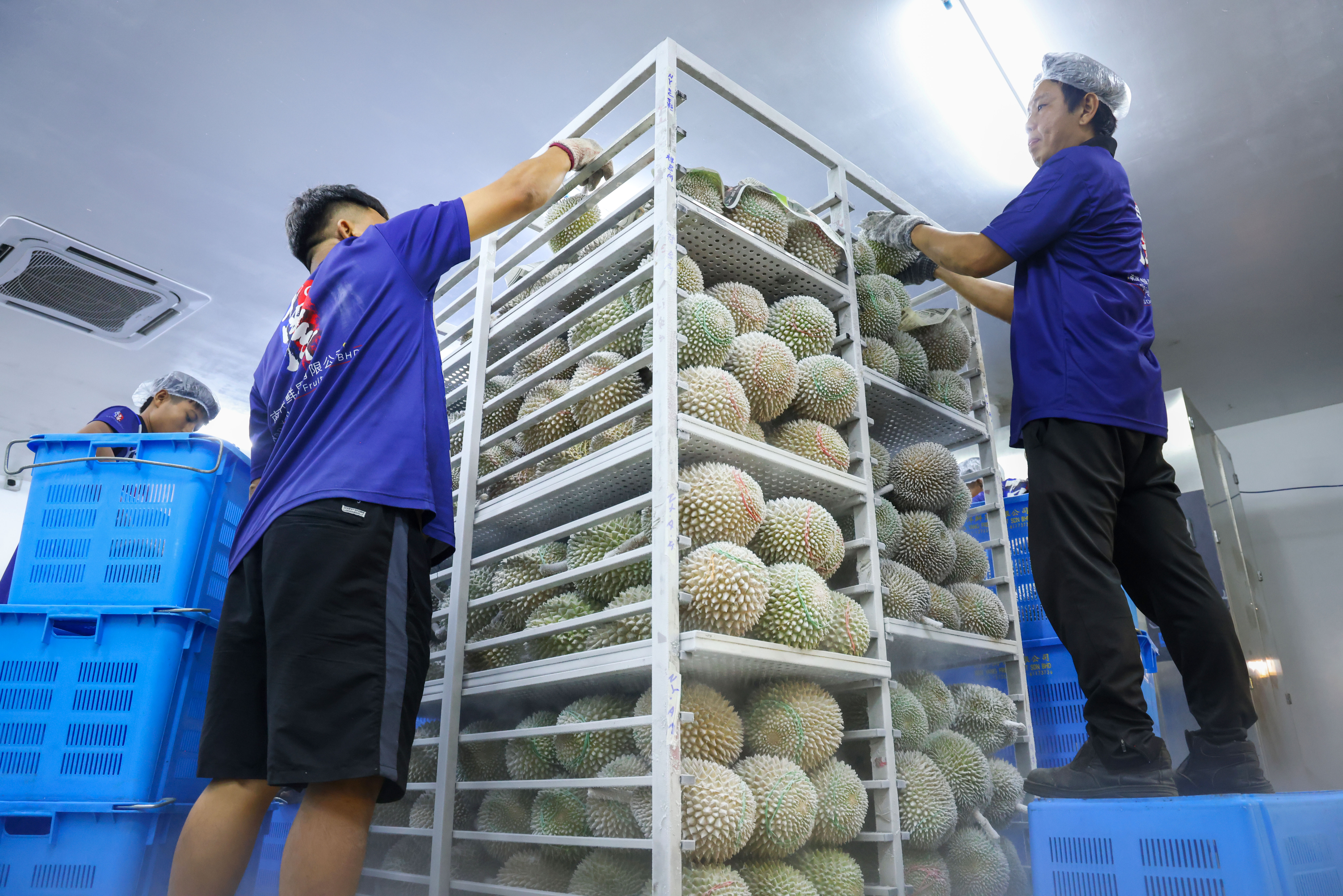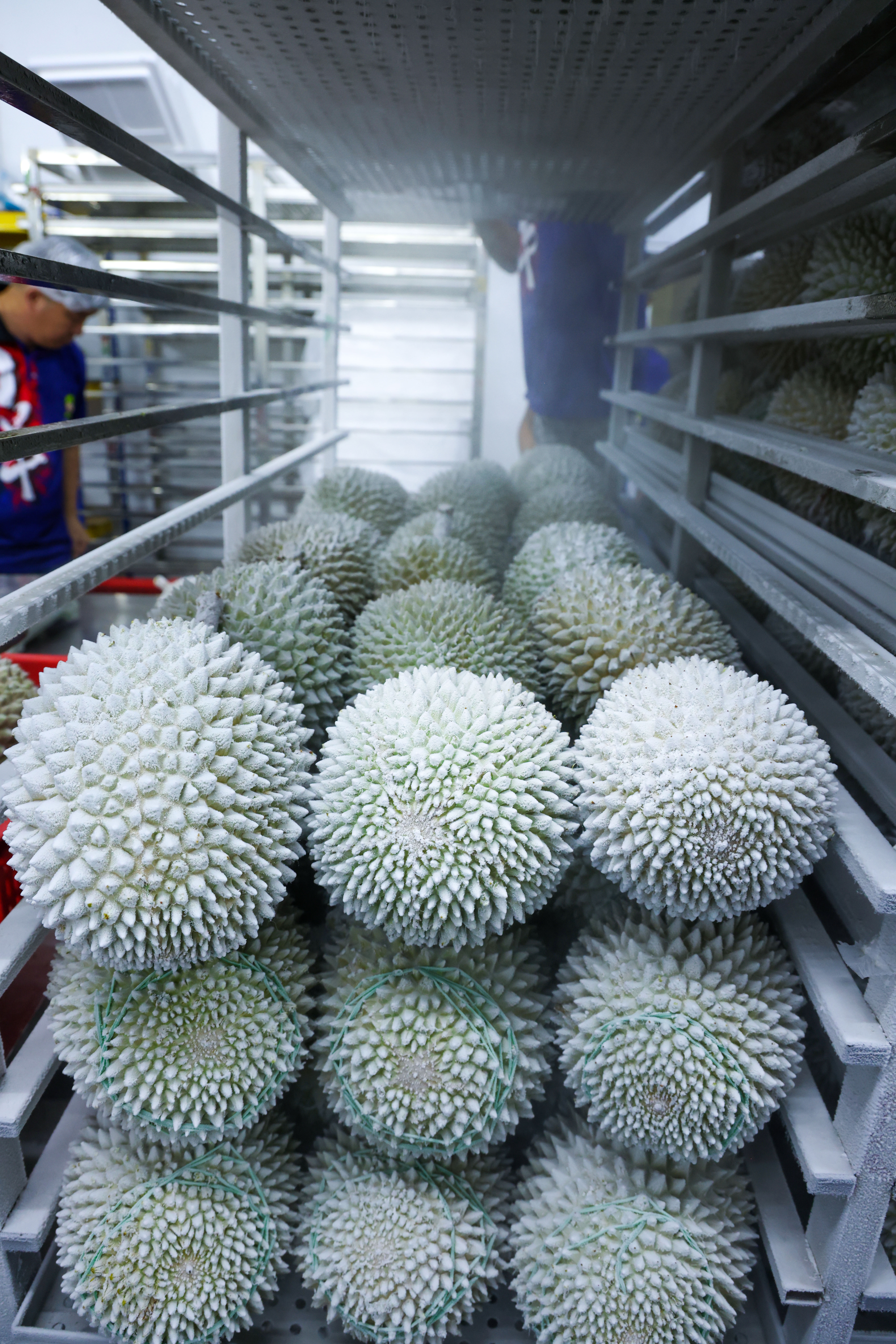 这个时候就要与时间赛跑,当天就要把猫山王收集起来,送往液氮加工厂进行零下120度的液氮锁鲜处理。