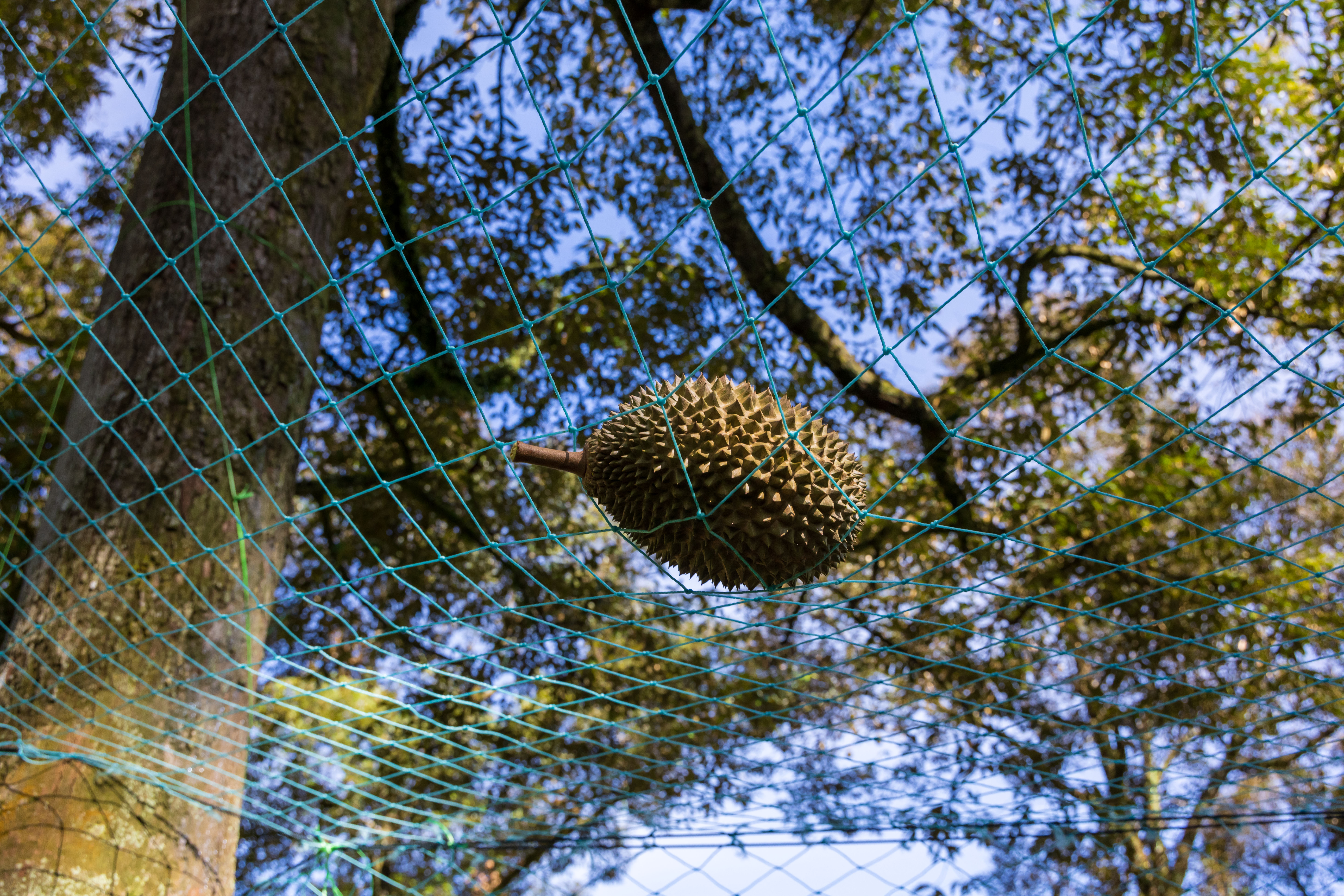 猫山榴莲的成熟掉落,相信大家很少见过,猫山王果树底下都有一张张巨大的网,这是为了接住从树上自然成熟掉落下来的猫山王