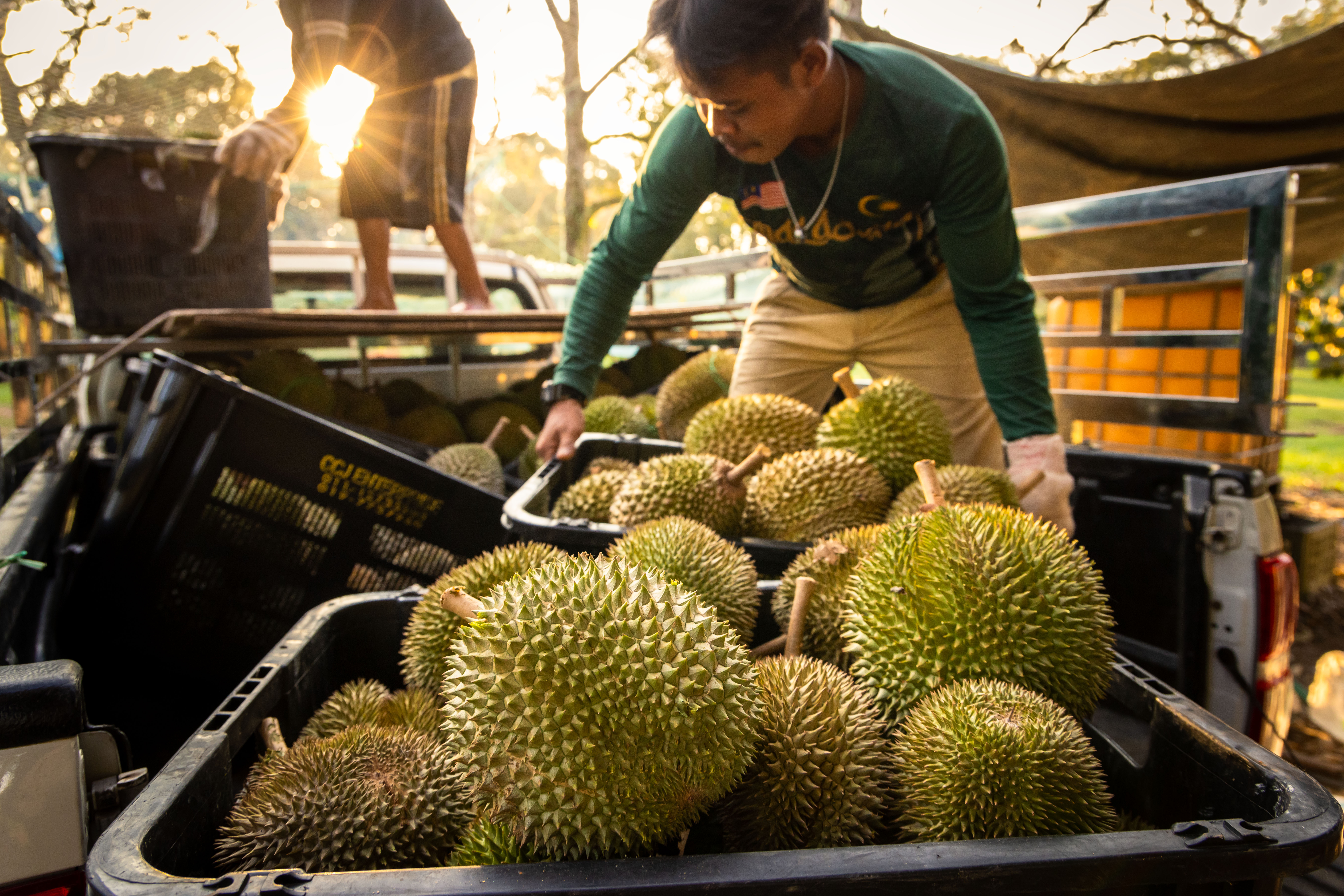 我们的猫山榴莲从果园送往工厂再到包装,它需要经历三次筛选的考验,最后才能被我们收到!