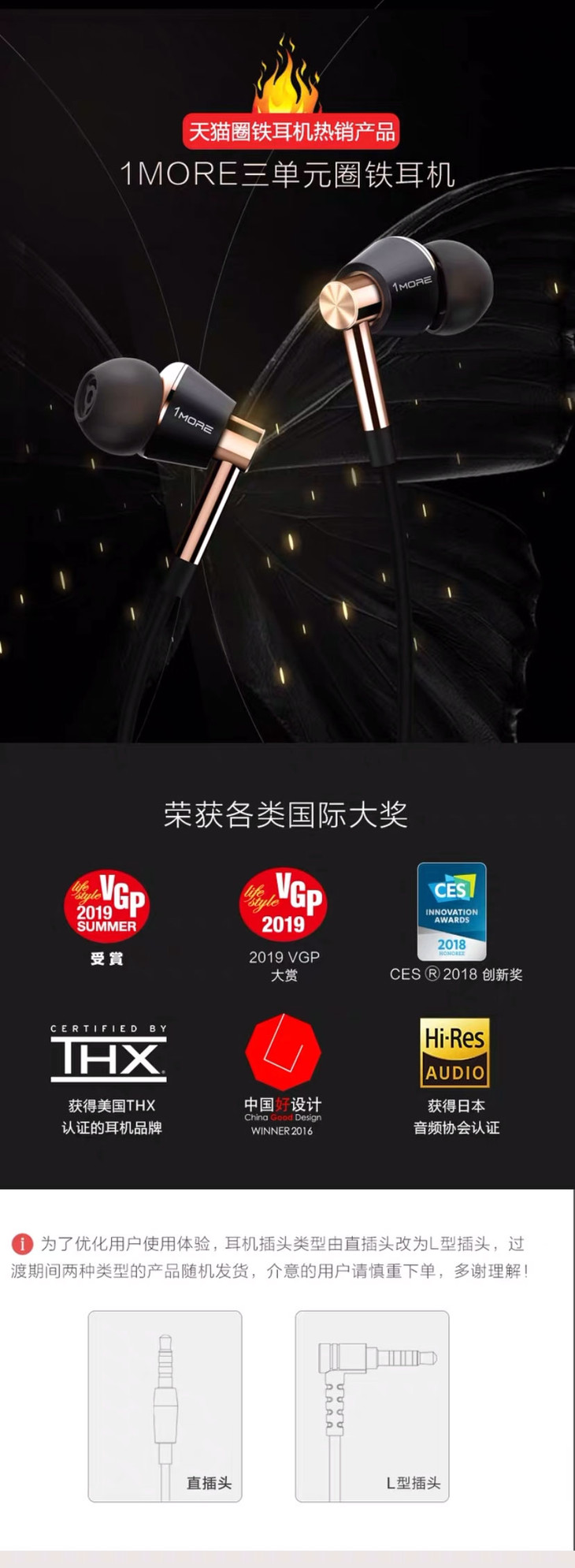 1MORE/万魔 E1001BT三单元圈铁耳机入耳式