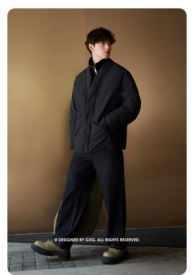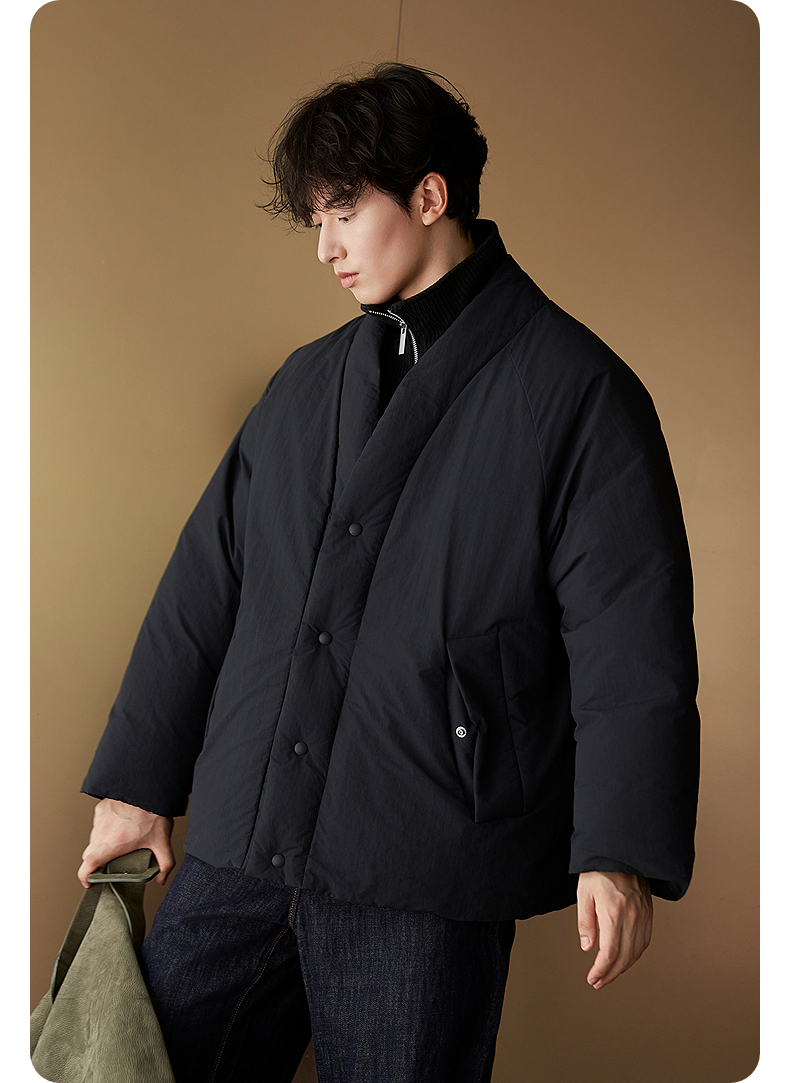 GXG男装 假两件设计加厚外套黑色立领短款羽绒服 25年冬热卖
