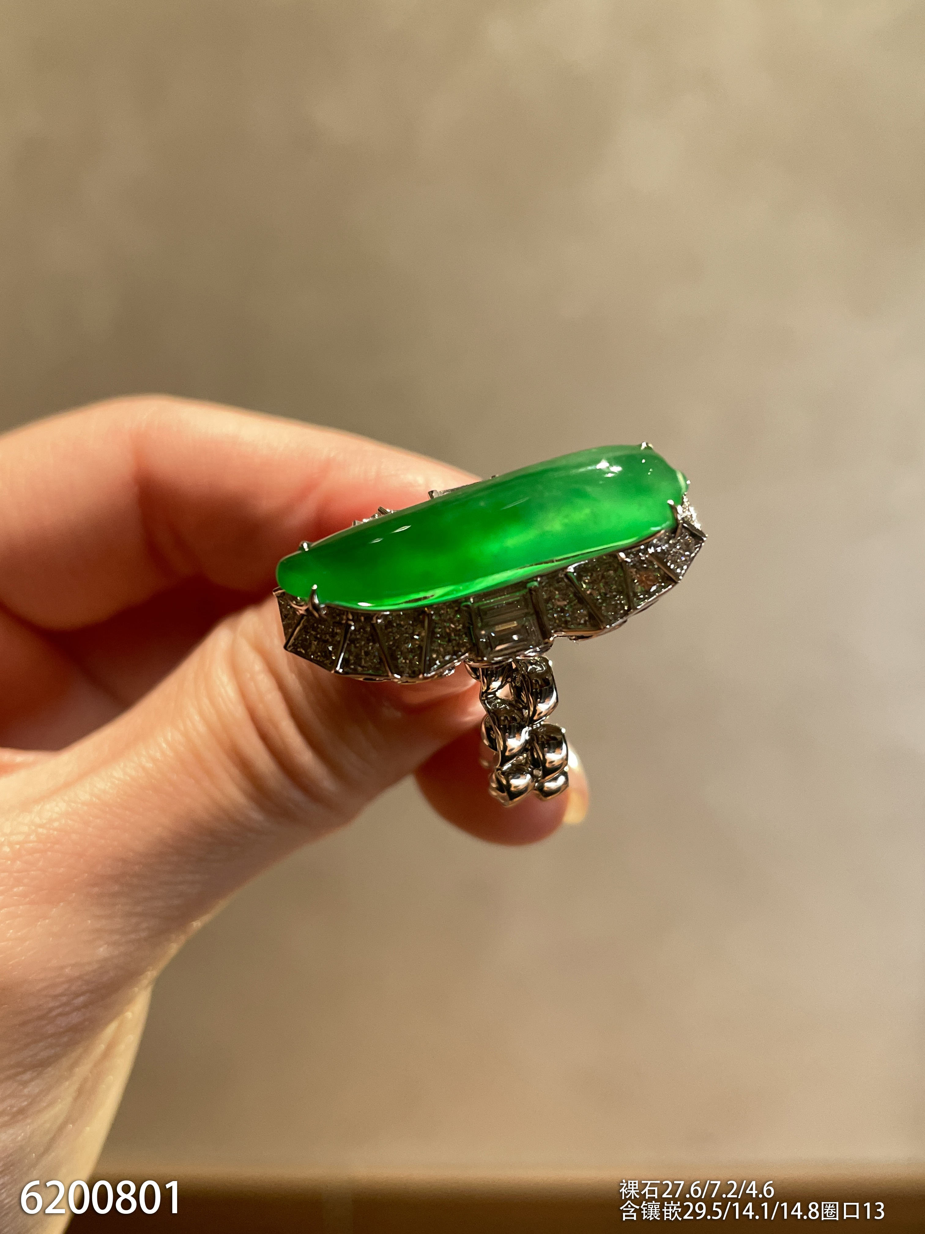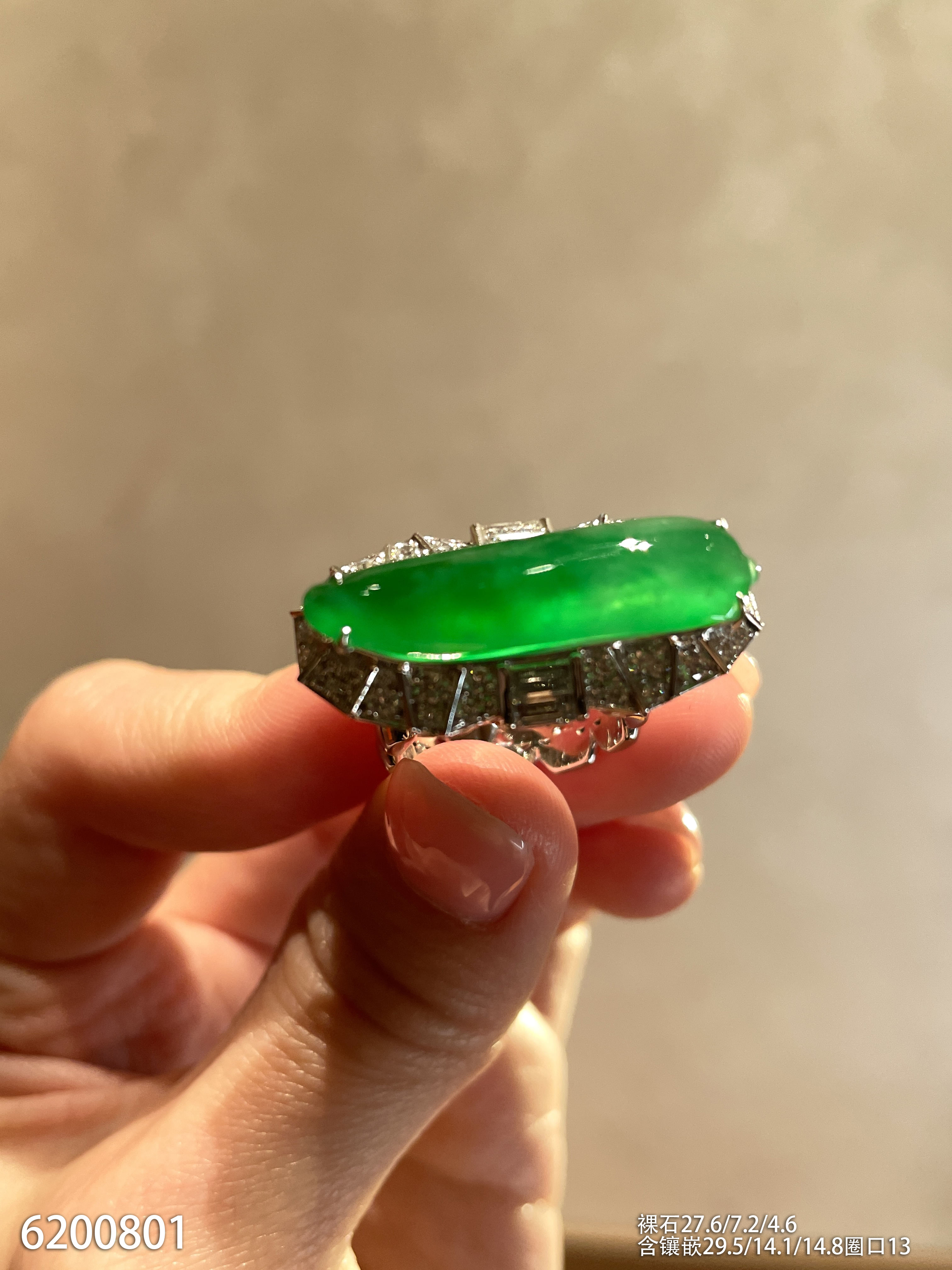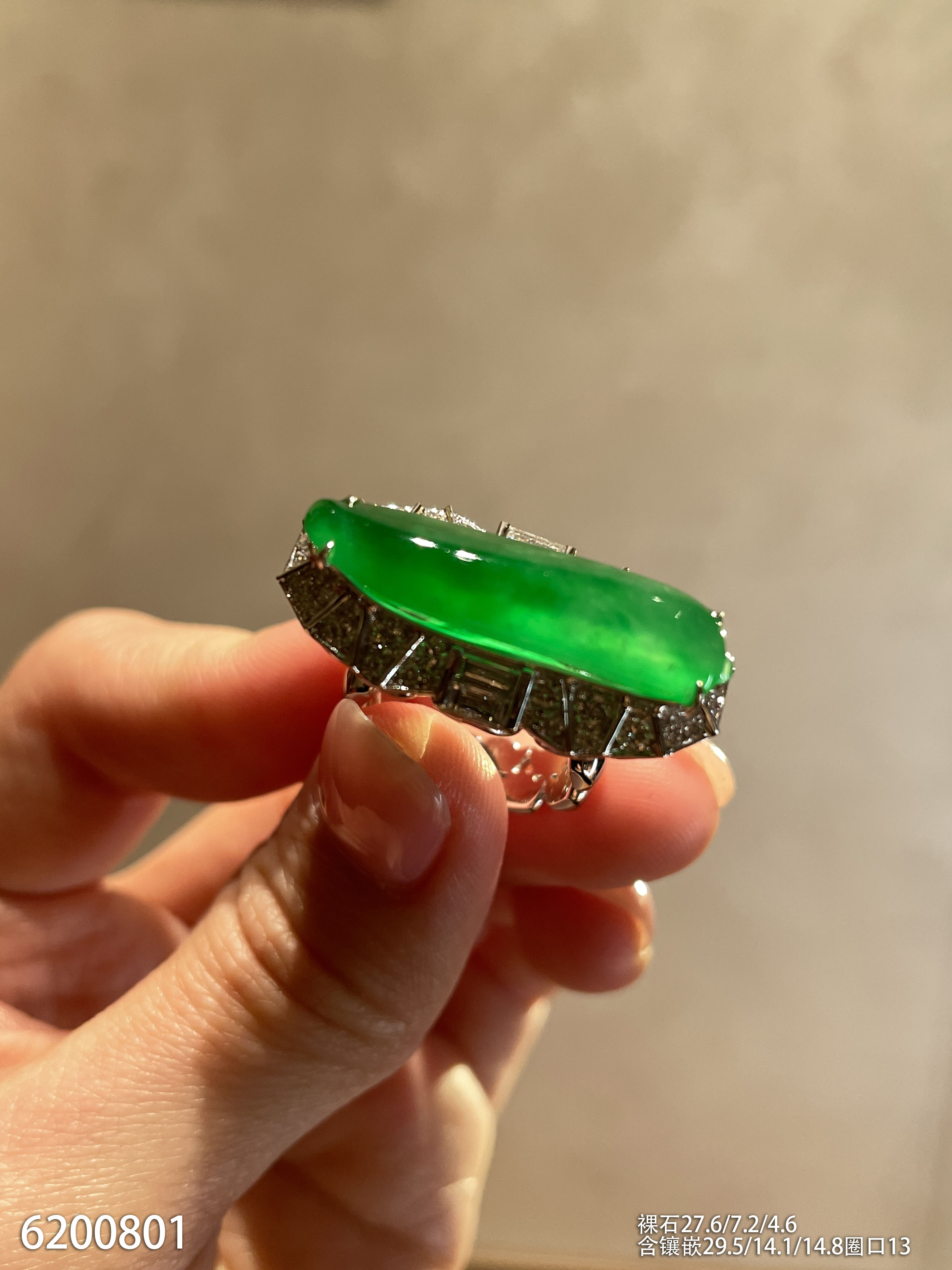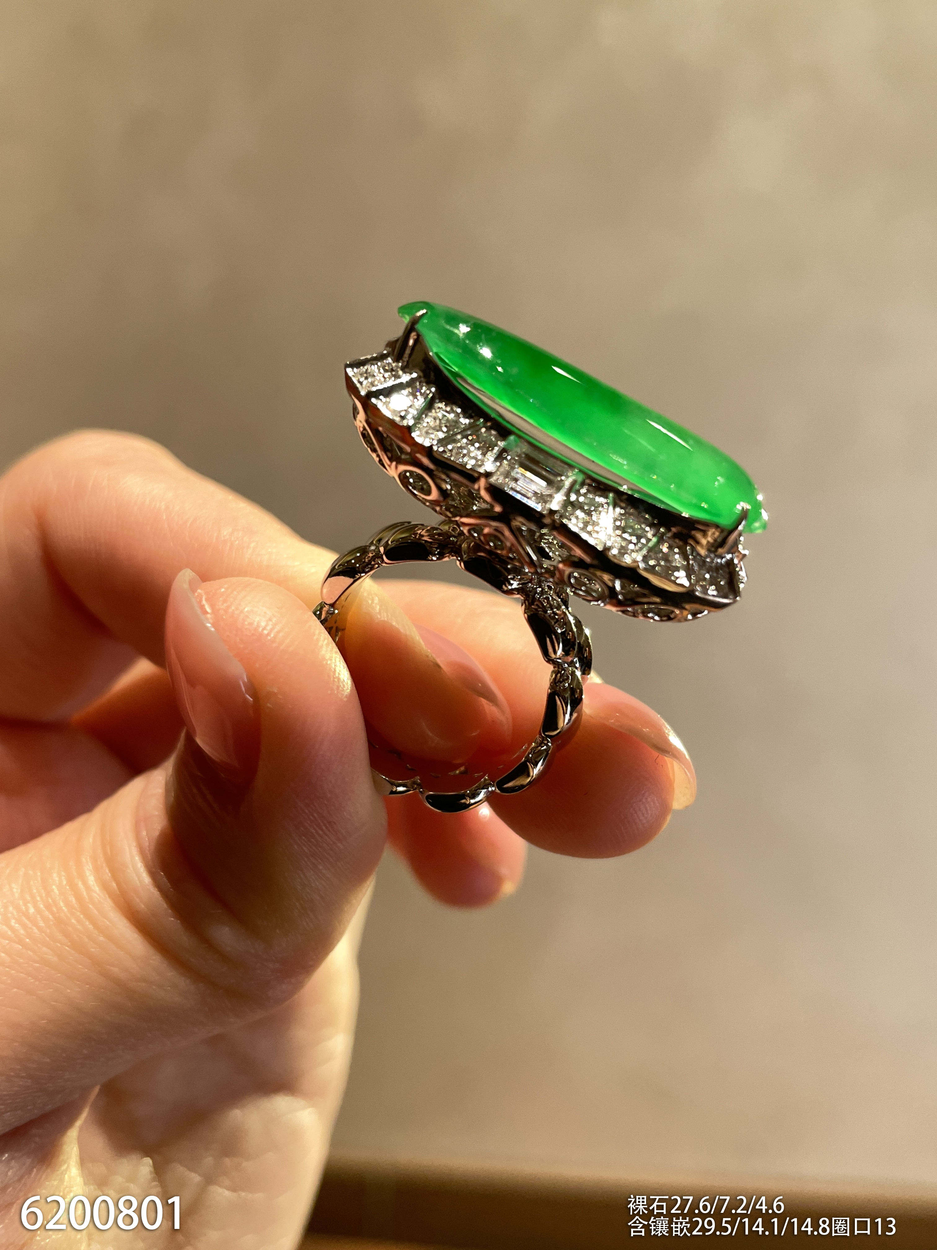 120-1232908,玻璃种木那艳绿蛋面戒指,具体价格微信咨询