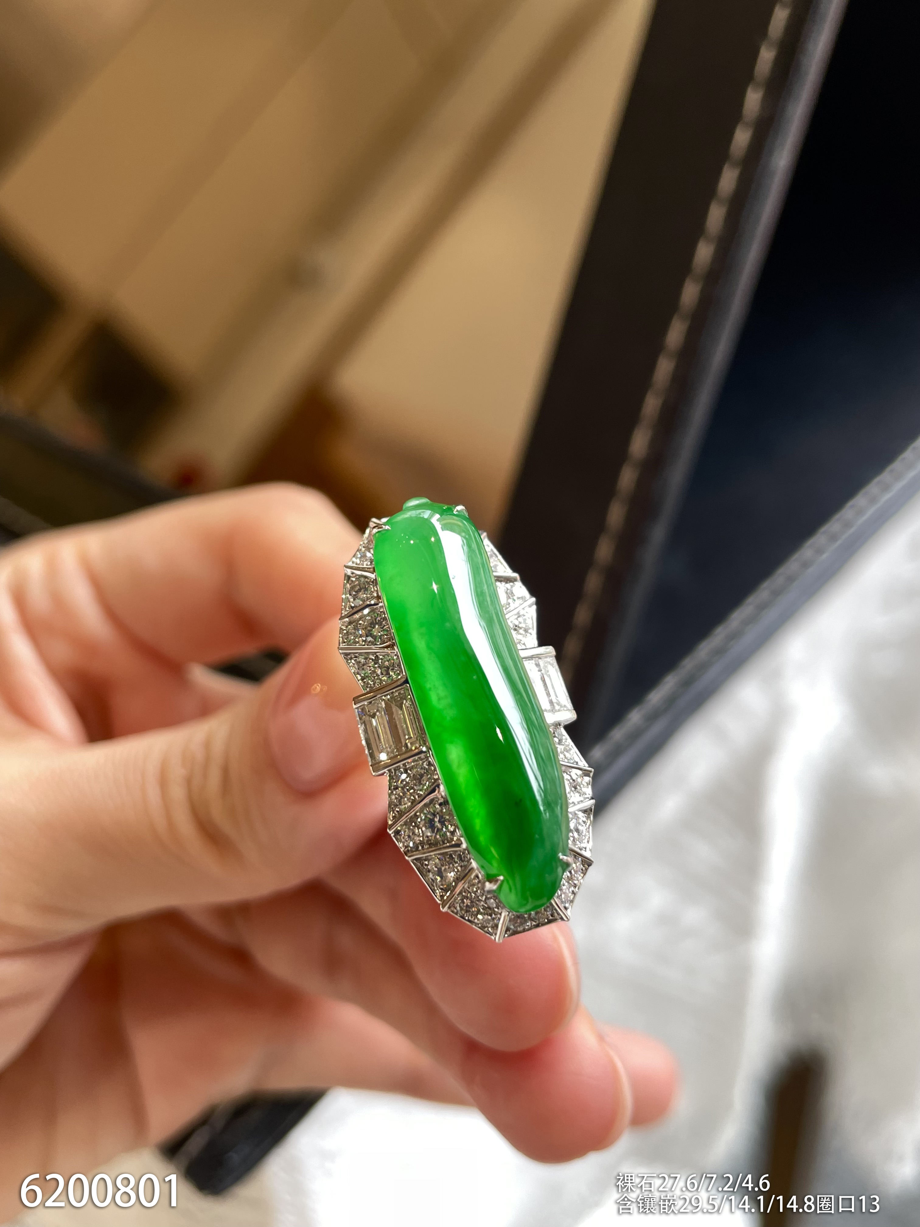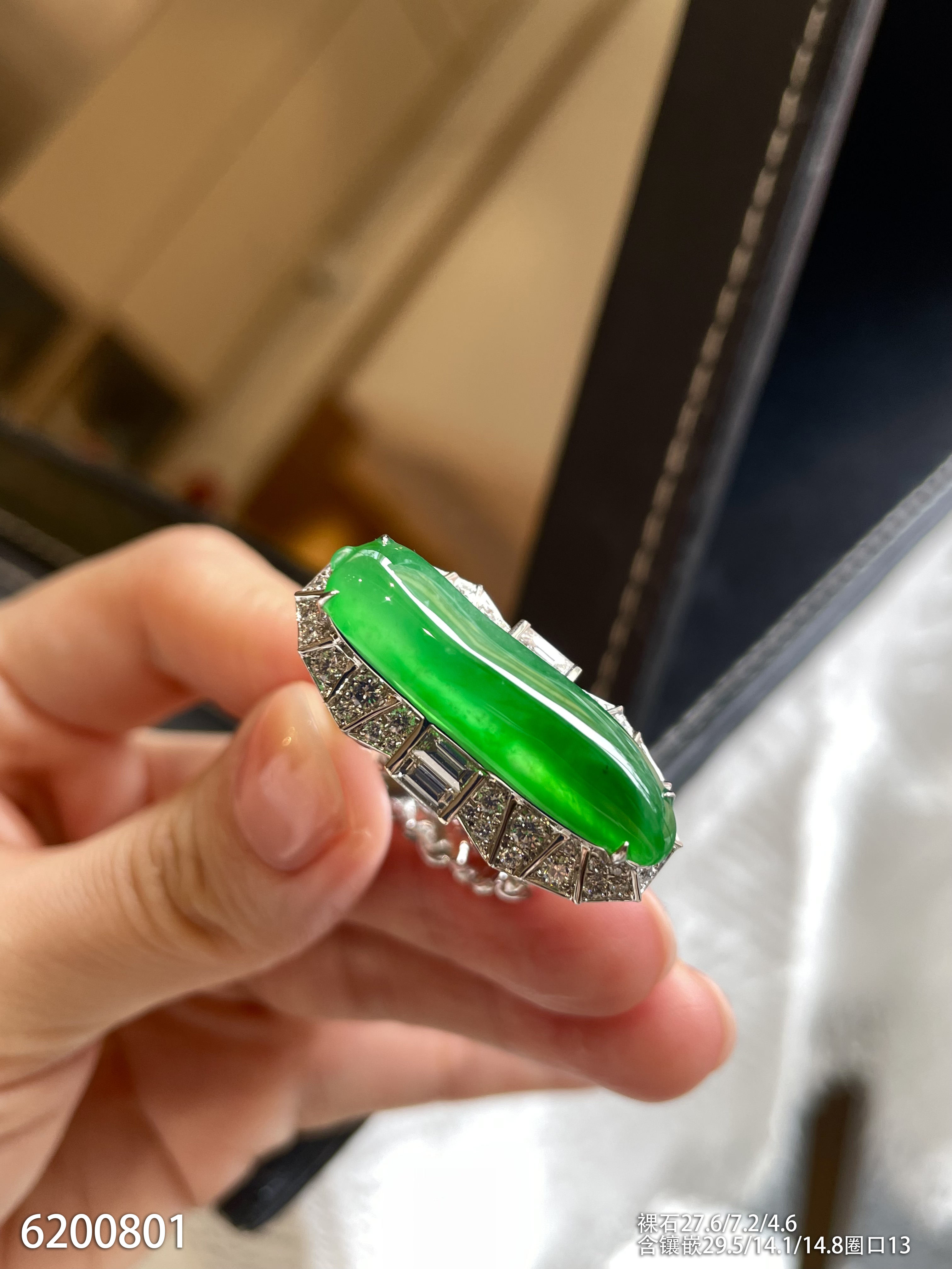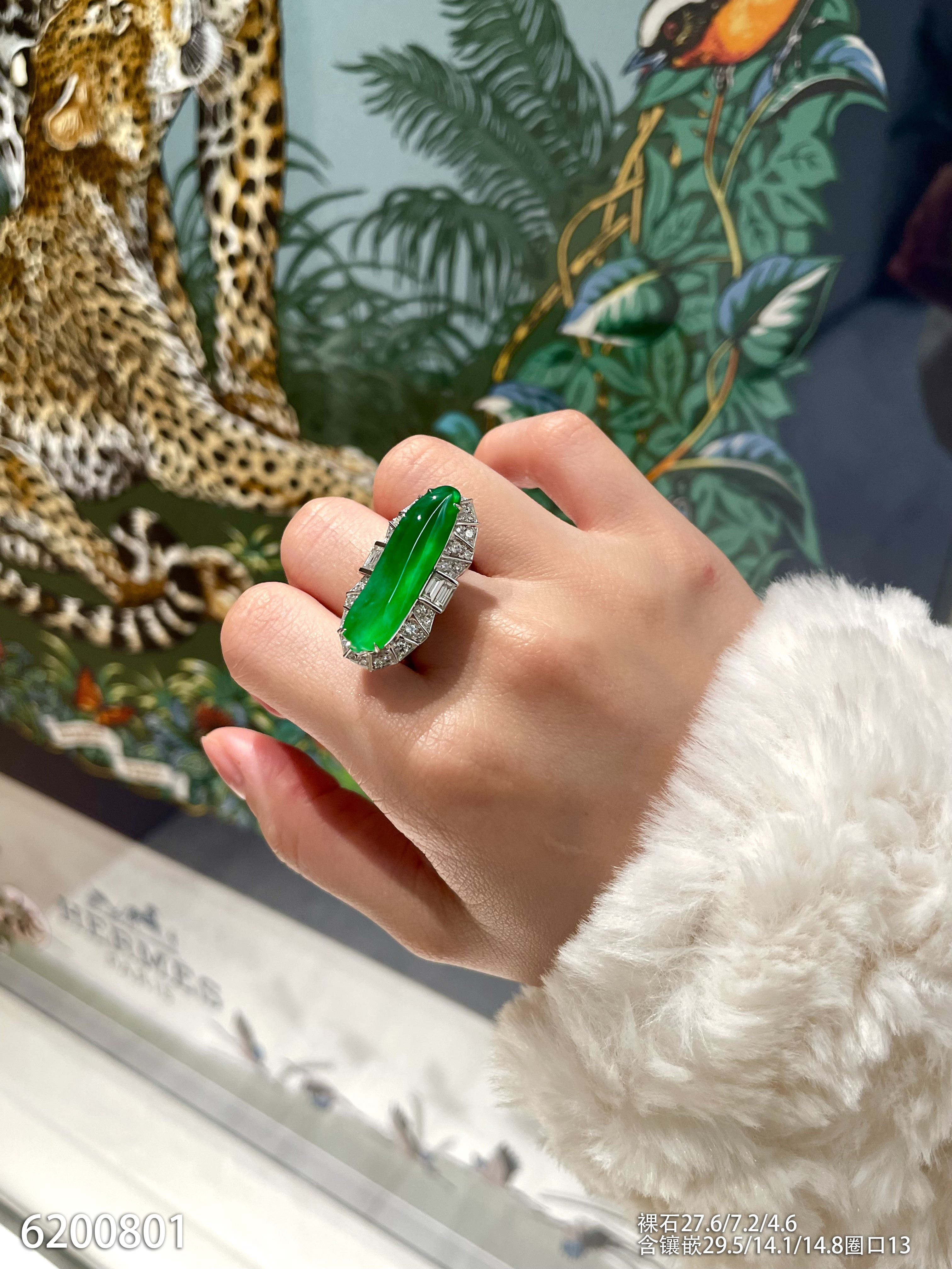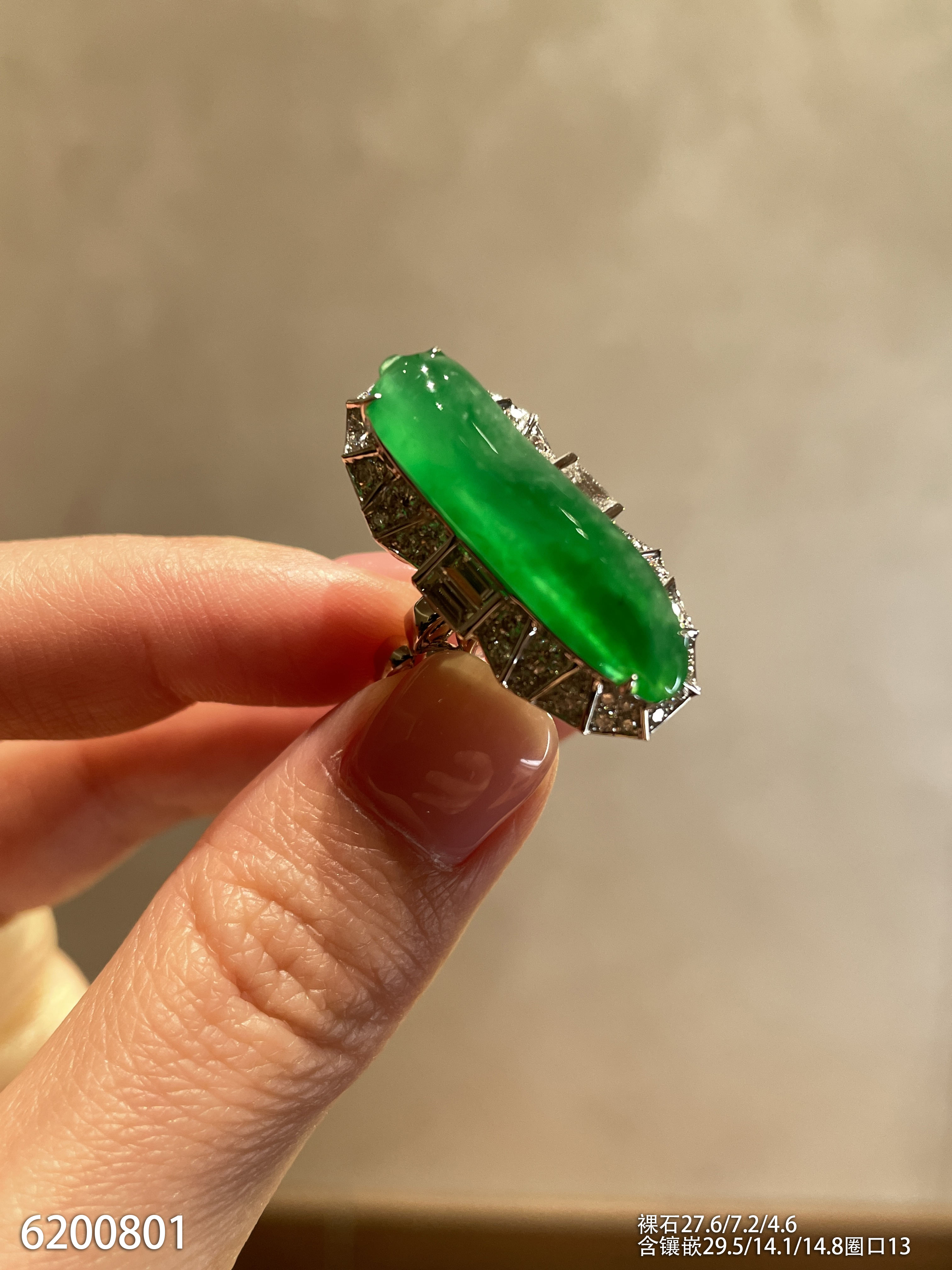 120-1232908,玻璃种木那艳绿蛋面戒指,具体价格微信咨询