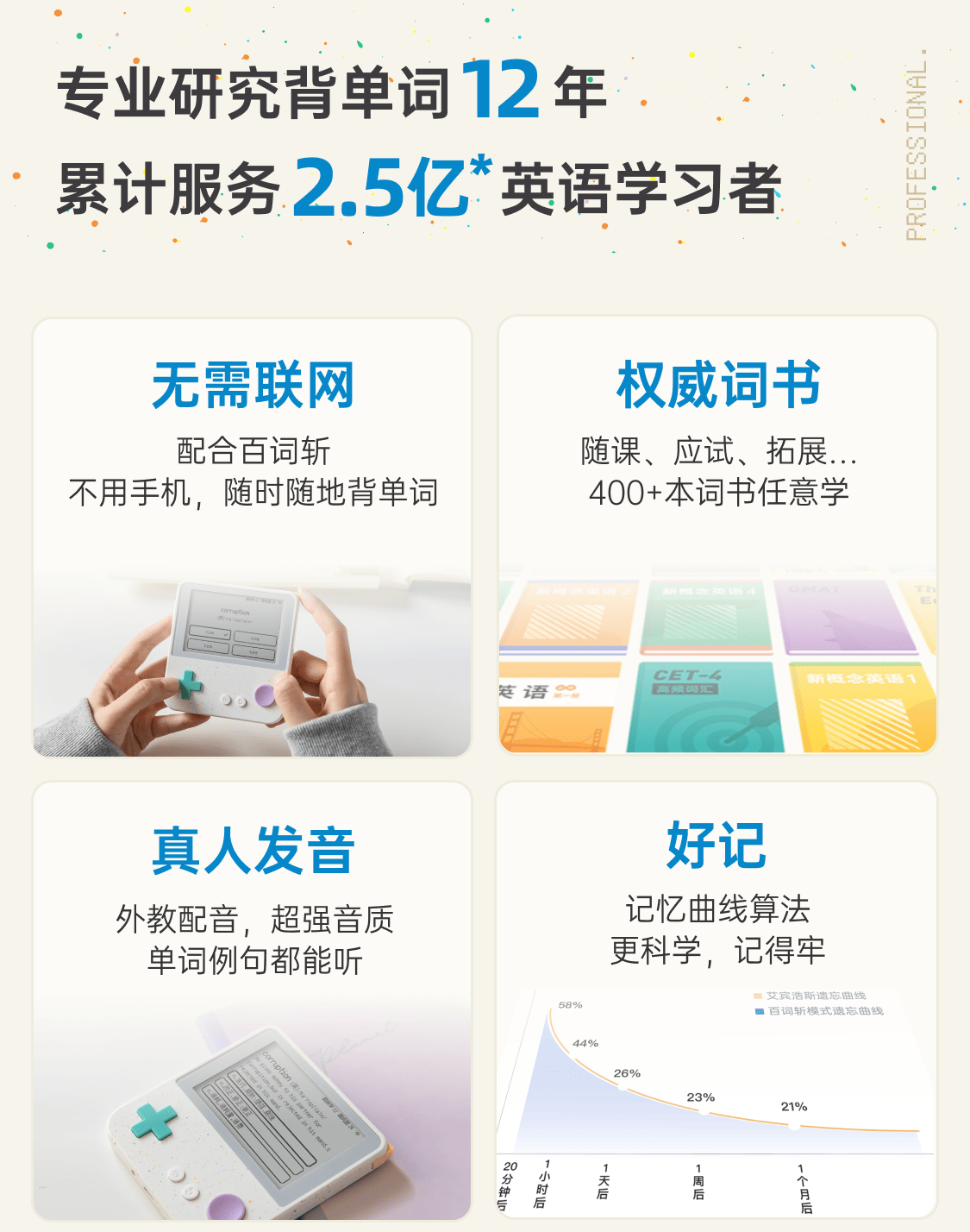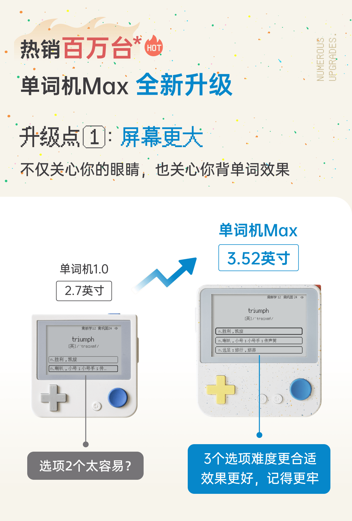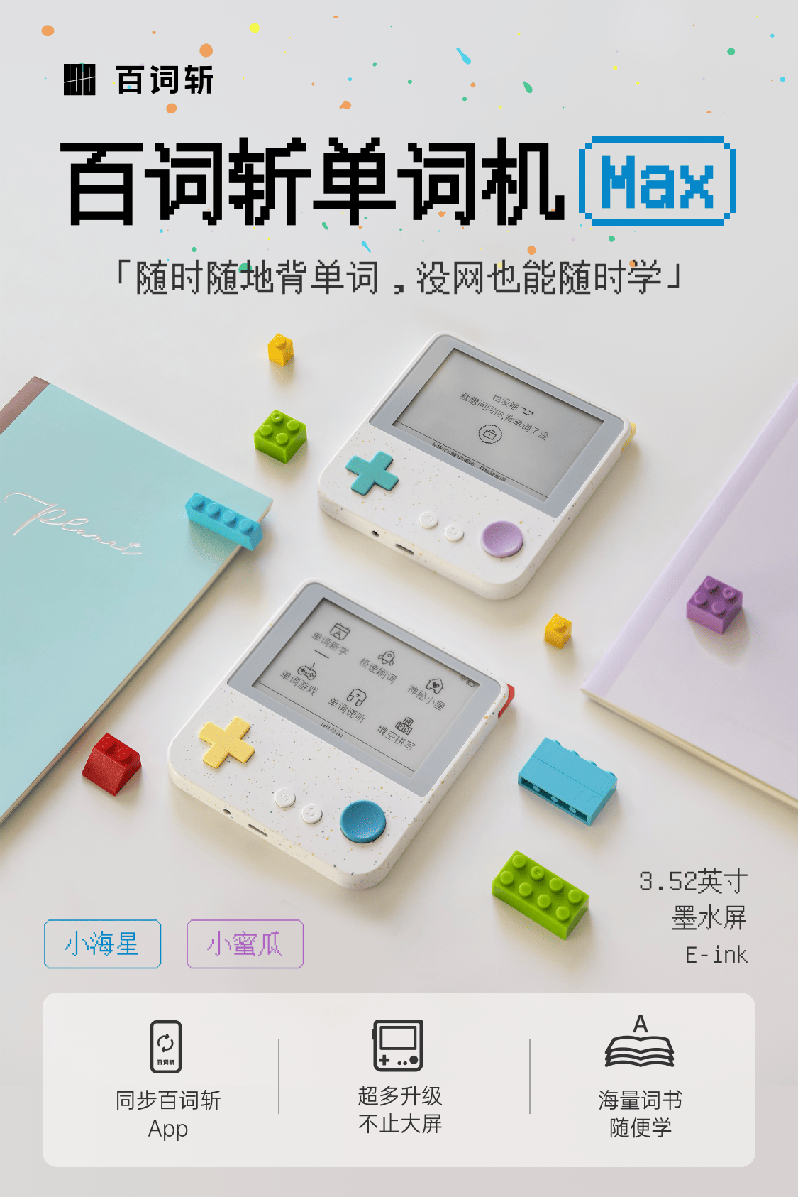 百词斩单词机MAX 3.52英寸墨水屏丨配置更强屏幕更大更不伤眼.