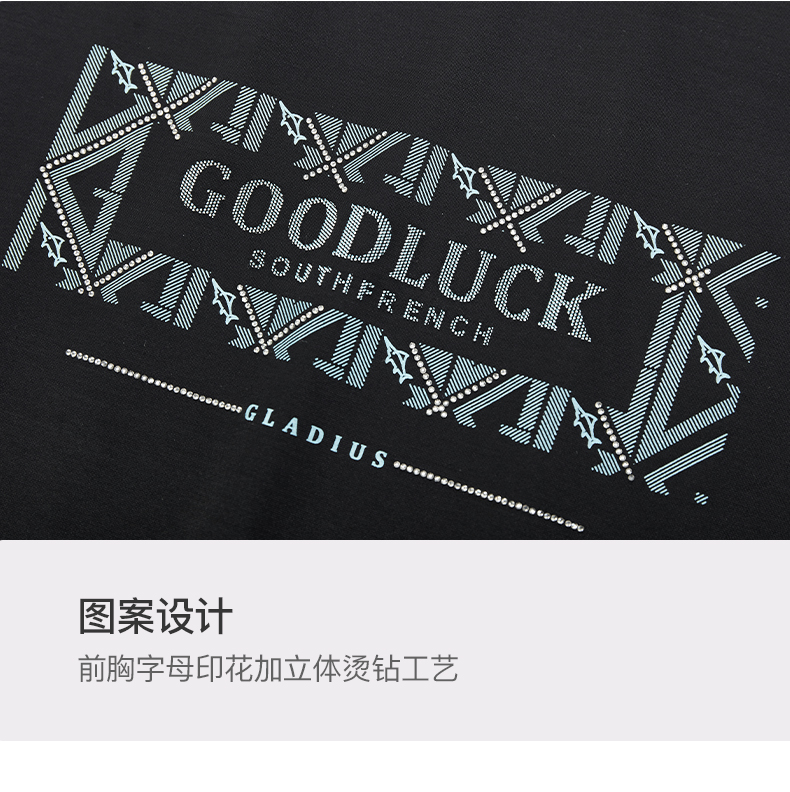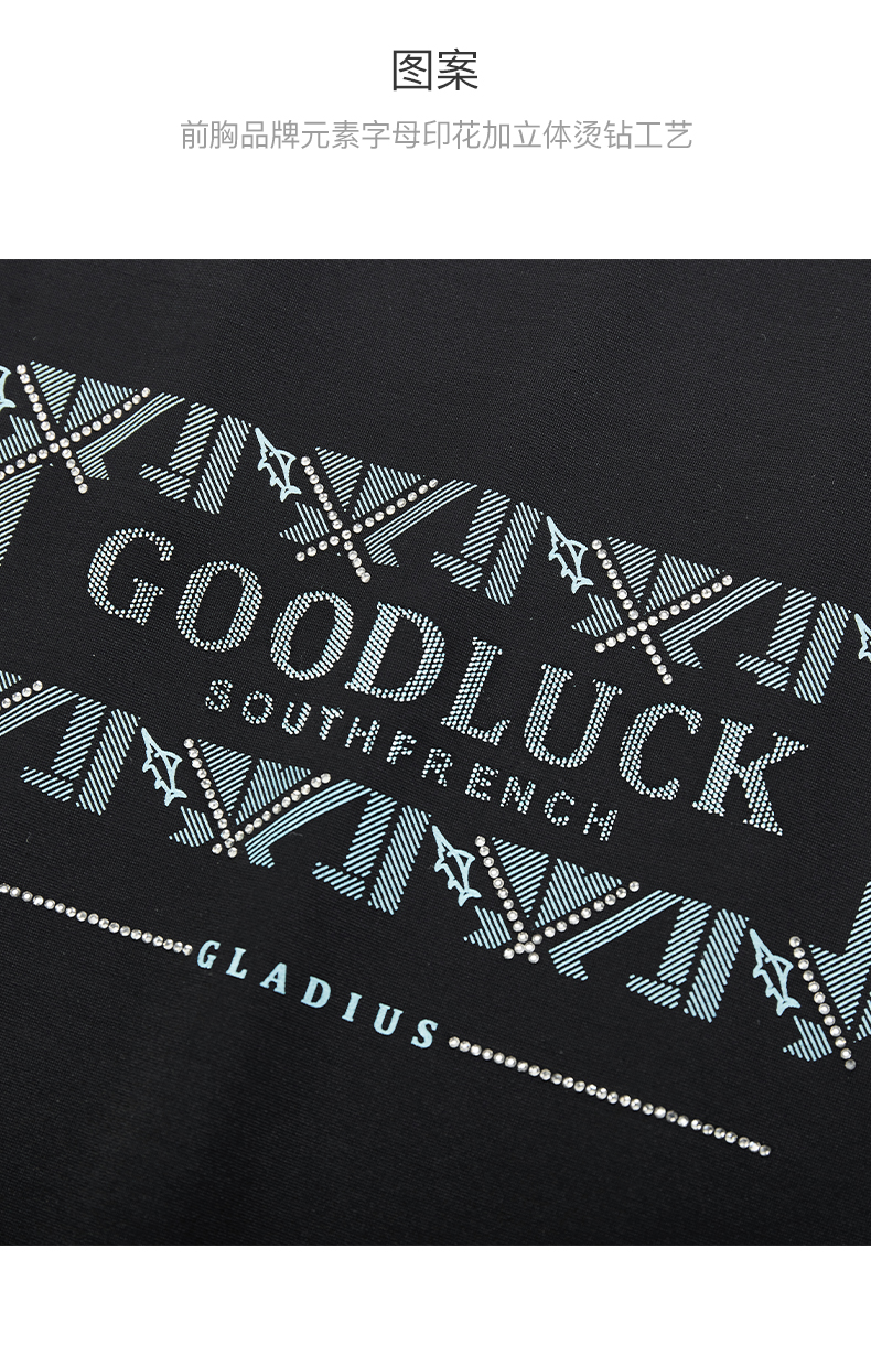 德鲨短袖印花圆领T恤男青年夏新款立体烫钻休闲上衣打底衫