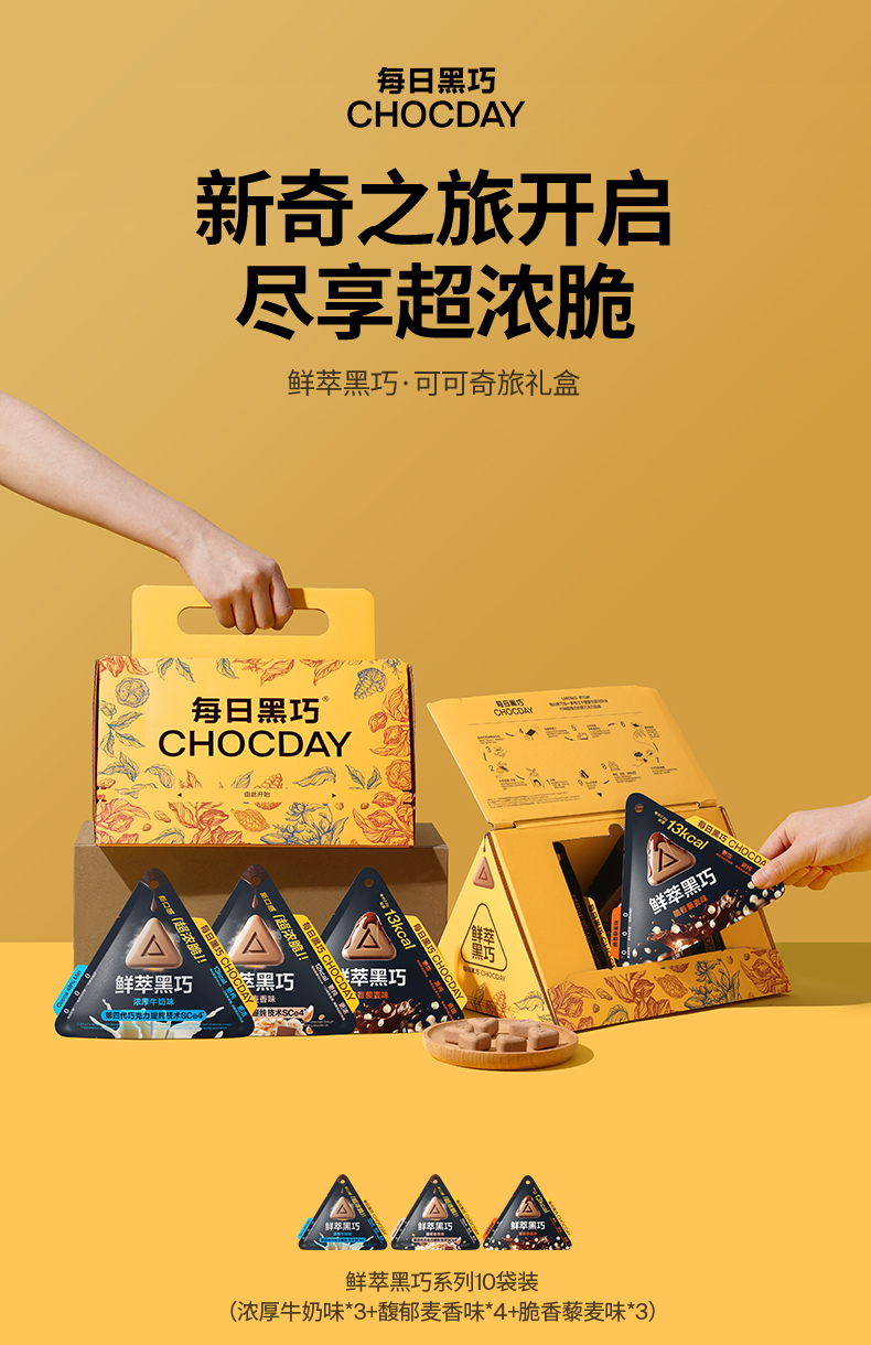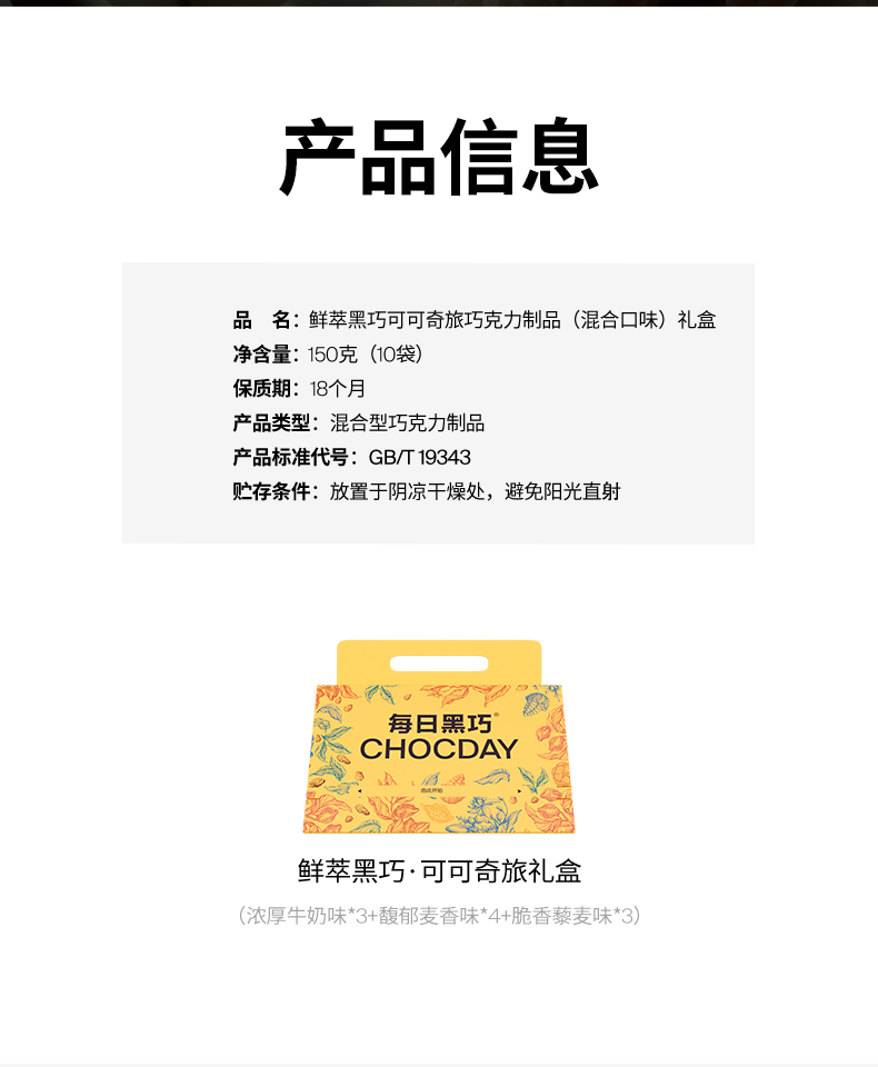 鲜萃黑巧可可奇旅巧克力制品礼盒 (牛奶x4+麦香x3+黎麦x3)