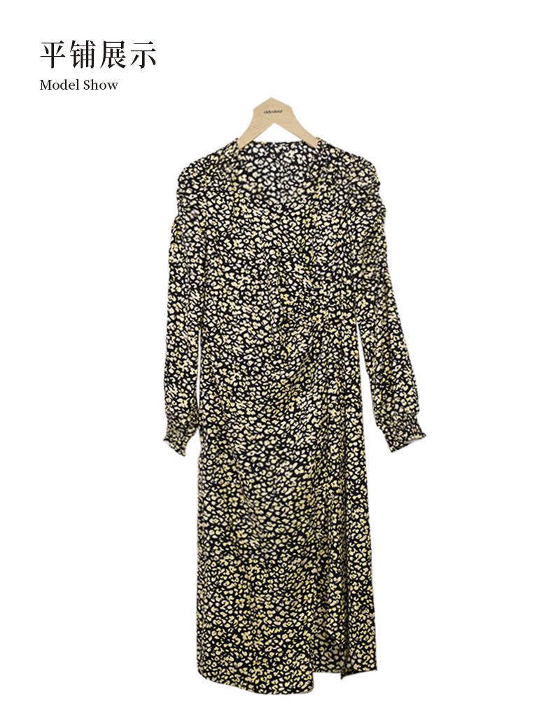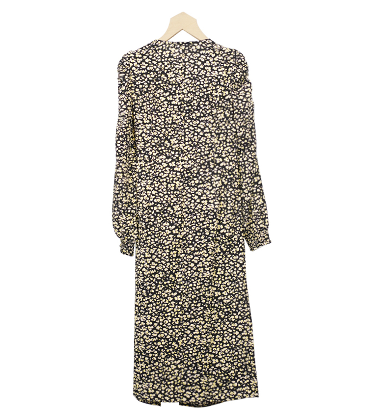 oldcolour复古气质碎花裙秋季新款V领高腰显瘦中长裙GO31103006