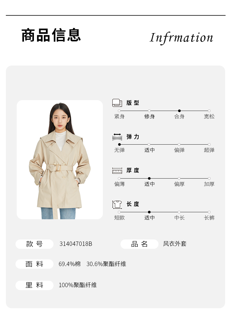 NUTS商场同款春秋款时尚气质英伦风短款风衣外套女314047018B