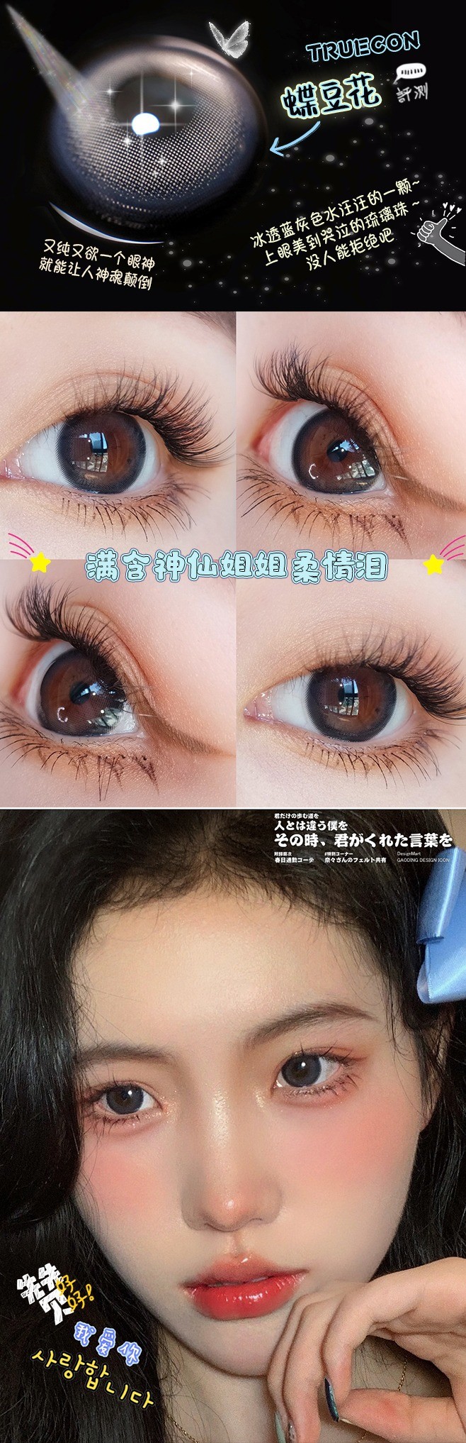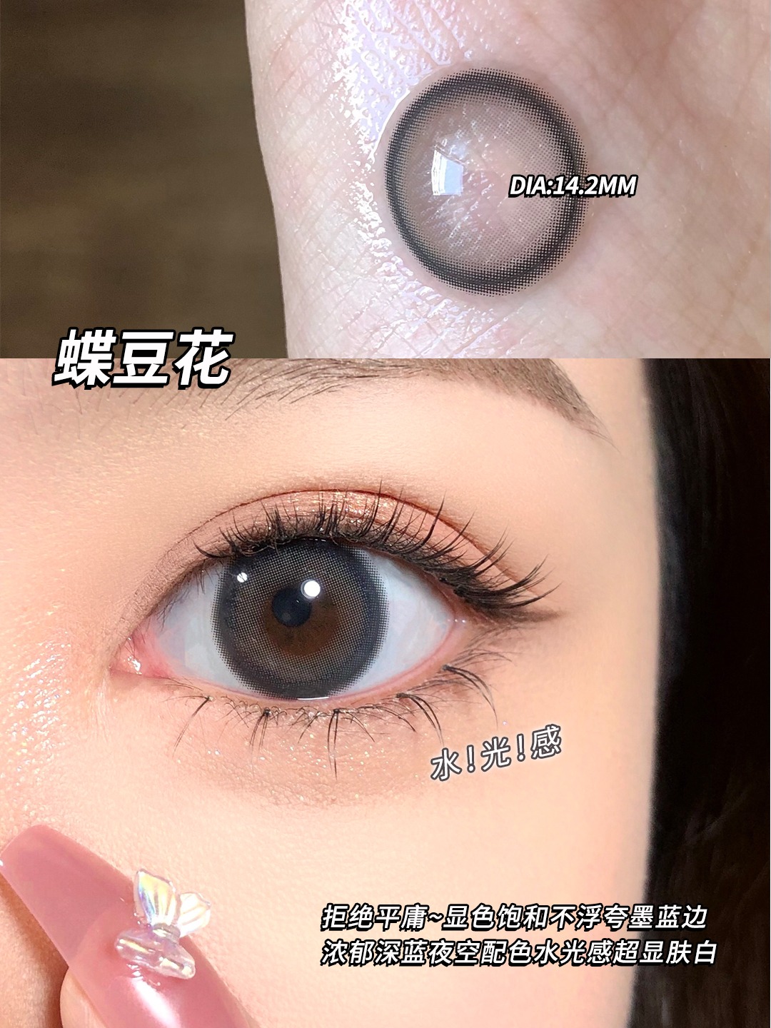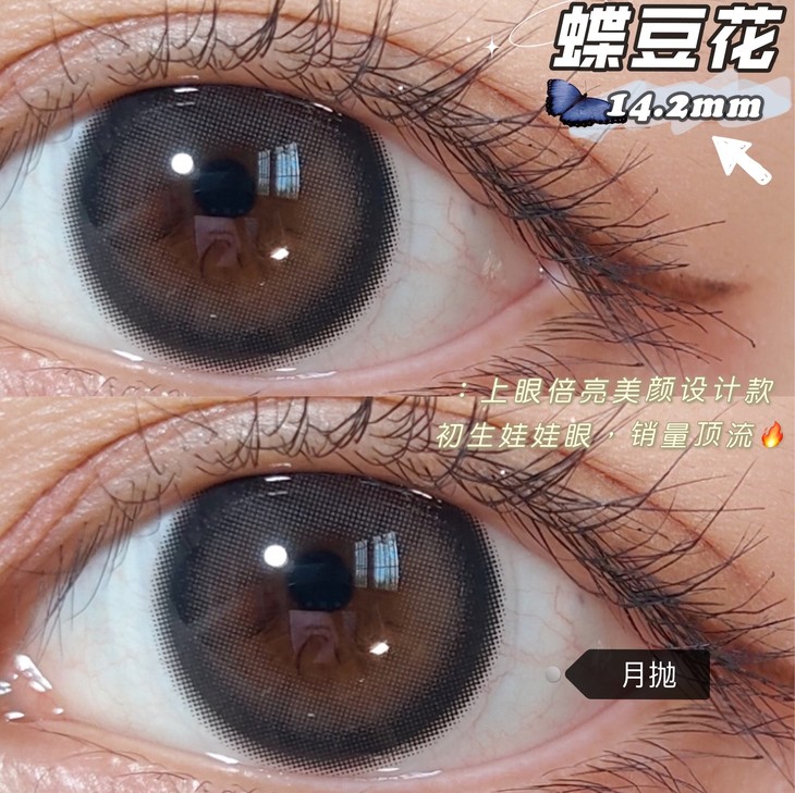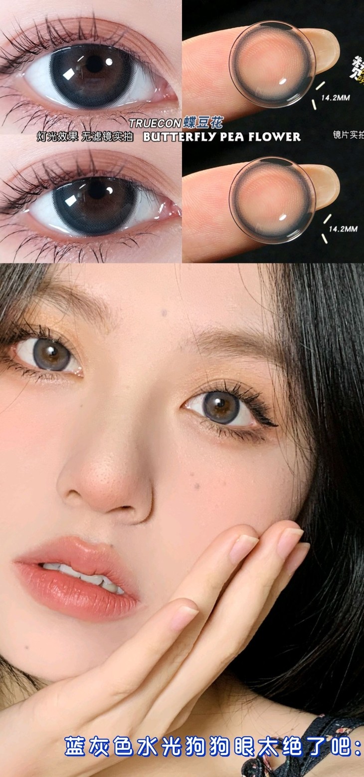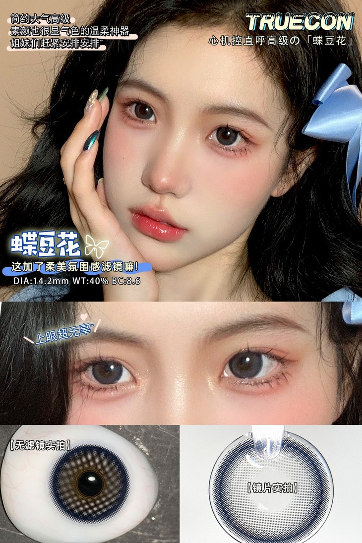 【小红书推荐】truecon(ak系列) 月抛 蝶豆花(雾面冰薄月抛版),直径14.2/着色13.4,78/一副,128/两副,218/四副,最高度数有1000