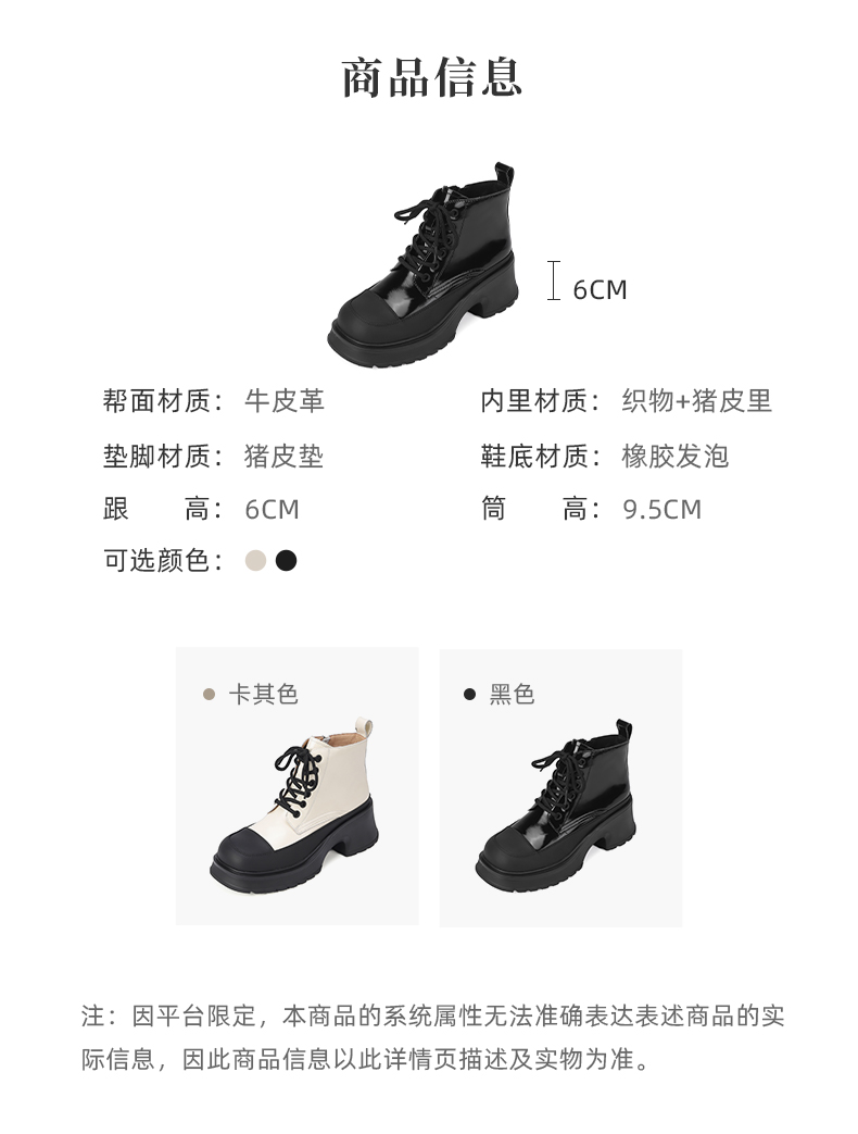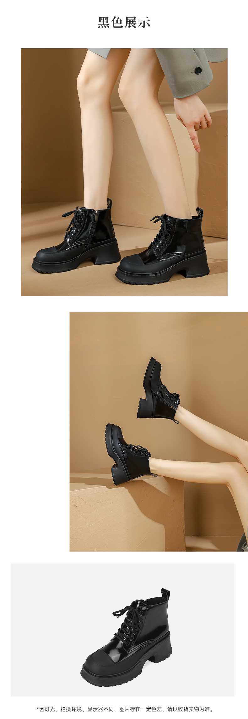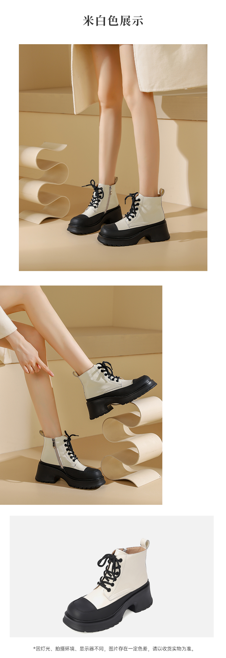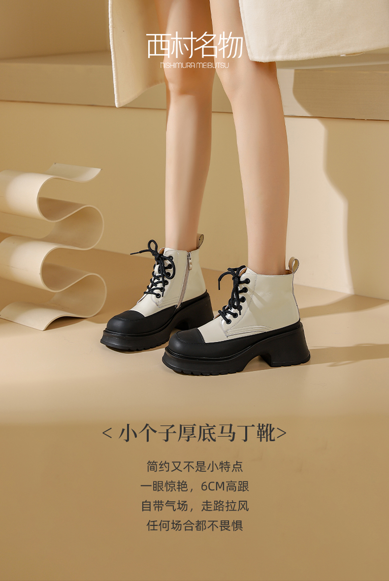 西村名物2023秋季新款粗跟单靴真皮厚底小个子马丁靴T23DS44041