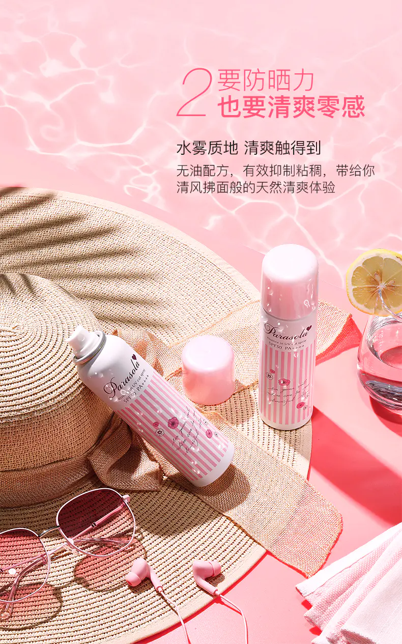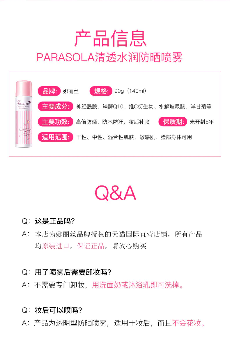 【香港直邮】娜丽丝清透水润防晒喷雾粉色90g