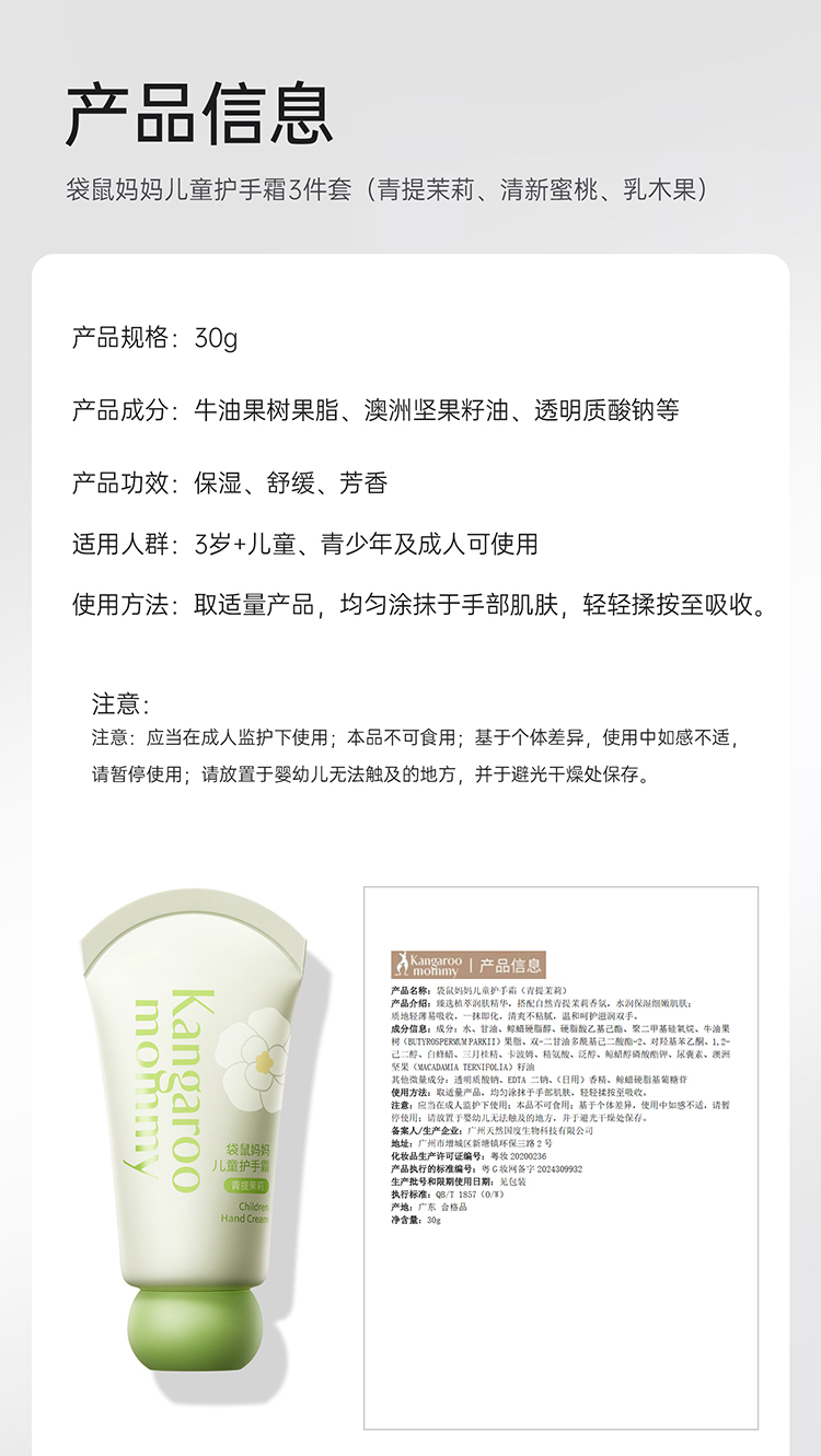 【儿童护手霜礼盒】专为儿童娇嫩手部肌肤研制 润养娇嫩小手 儿童护手霜3件套(青提茉莉香30g+清新蜜桃香30g+乳木果香30g)