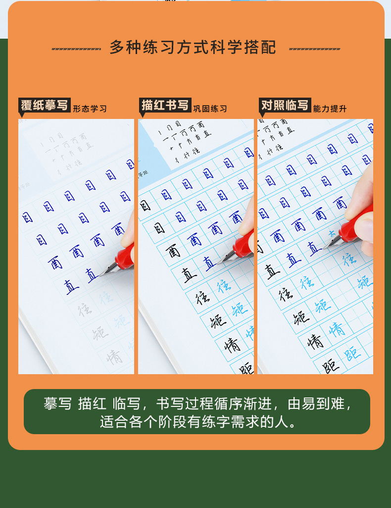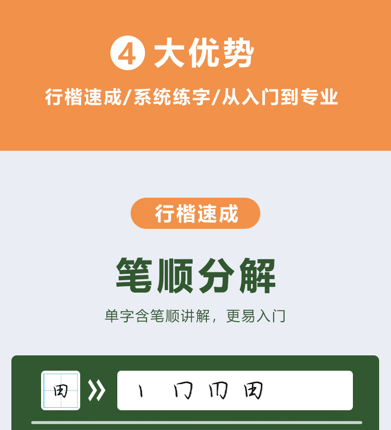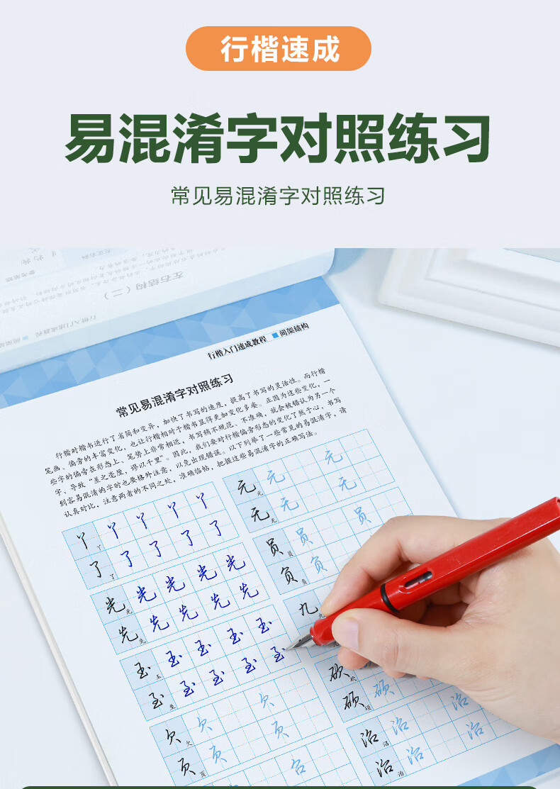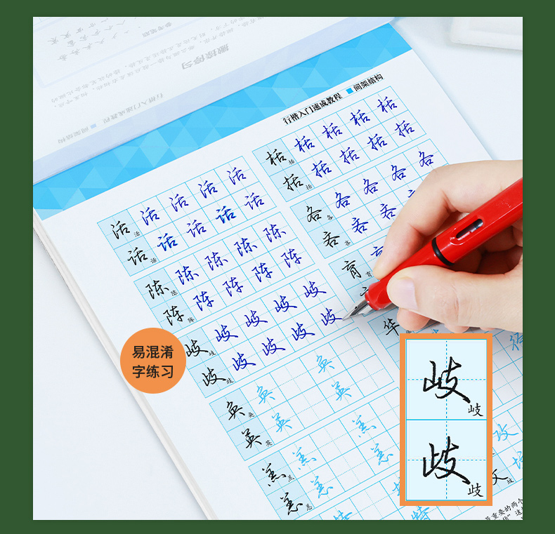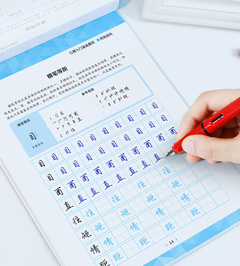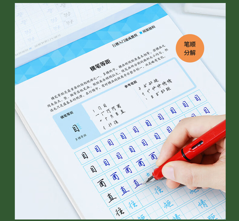本书主要包含控笔训练、间架结构类型和规律、常用字易混淆字对照练习等内容。控笔训练,可锻炼手指和手腕控笔的稳定性和灵活性;间架结构类型和规律总结了汉字的字形特点和书写原则;常见易混淆字对照练习带你认识行楷字形相近的例字,并进行对比练习。本书为了方便读者分析例字的书写过程,特意加入了“参考笔顺”部分,将每个例字的连笔笔顺进行拆分,让读者练字更轻松、更自信。
