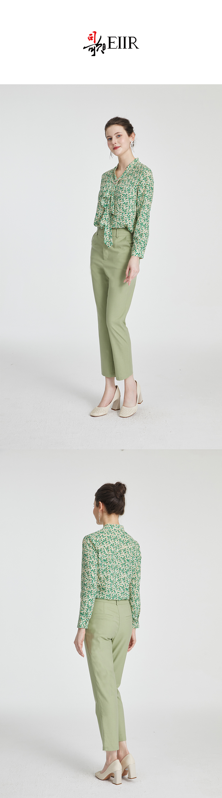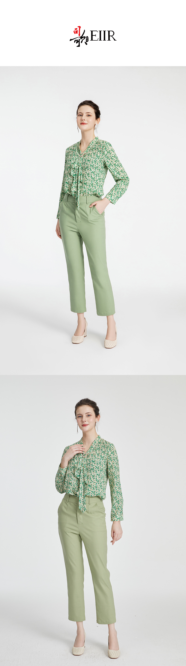 司歌雪纺长袖上衣衬衫印花蝴蝶结职业百搭小衫T881081