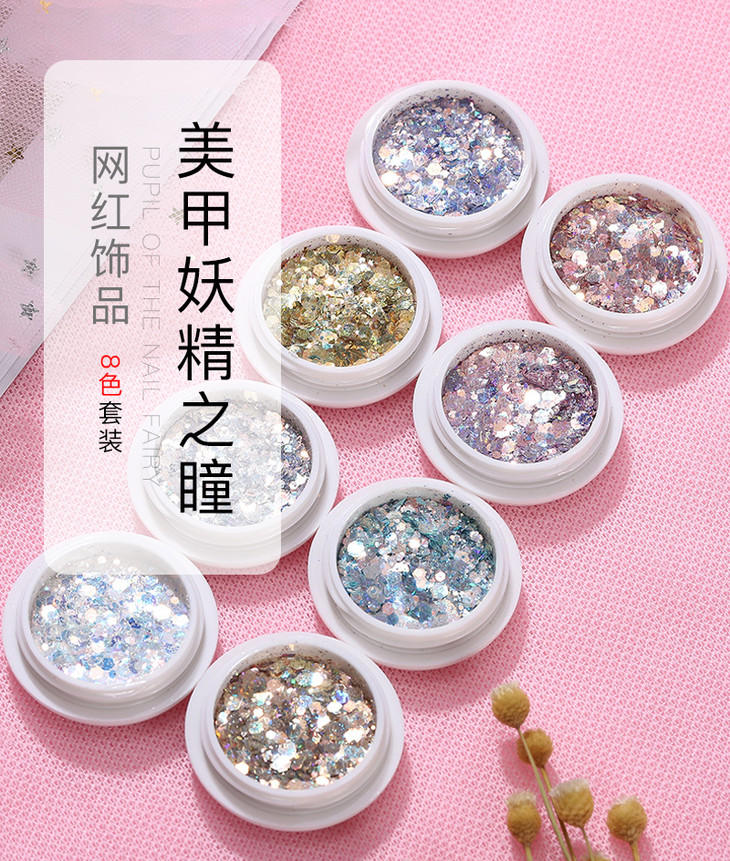 网红亮片指甲饰品妖精之瞳眼泪妆8色套装