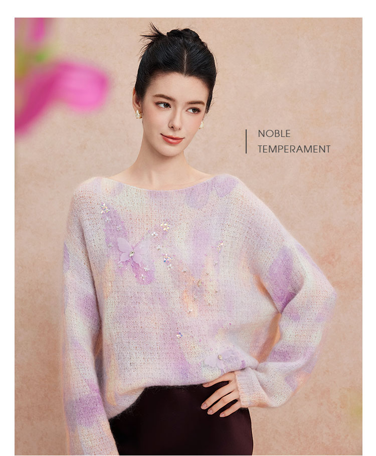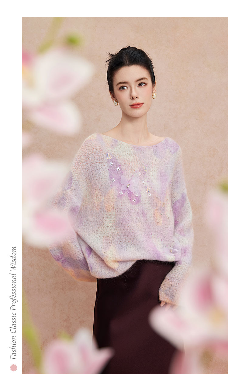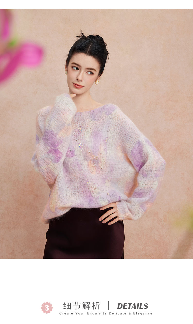 QH604斯尔丽25新款松弛慵懒甜美软糯立体花显瘦廓形上衣