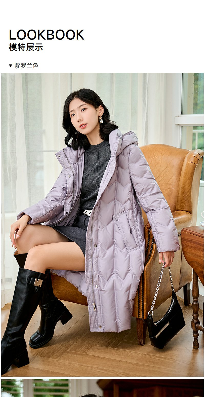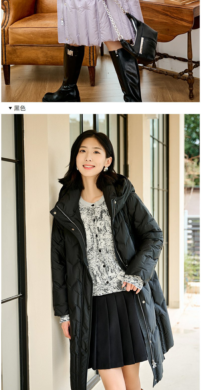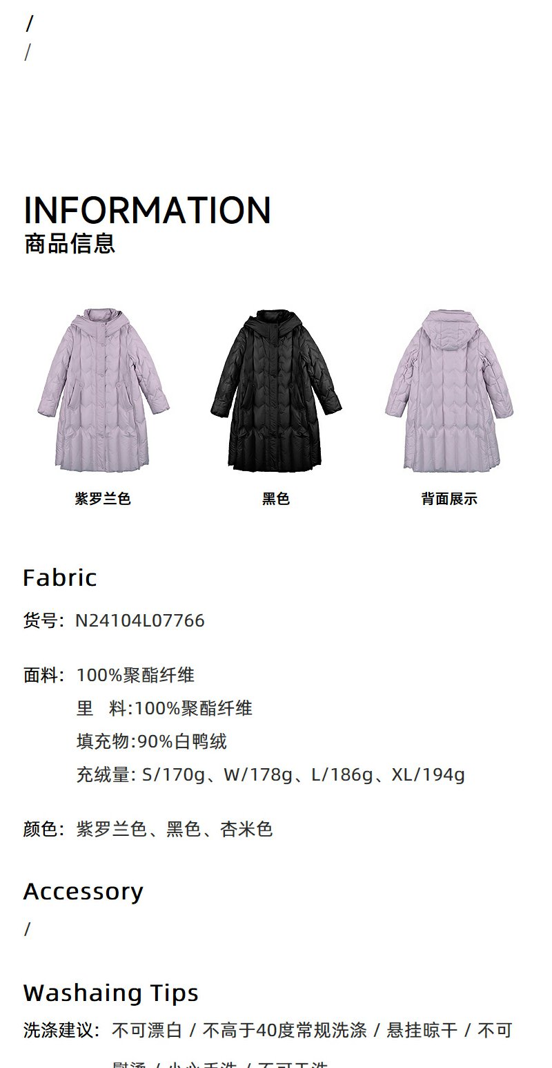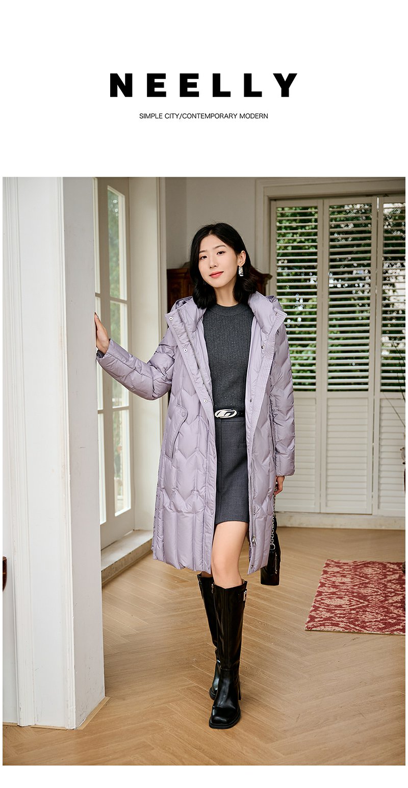 NEELLY纳俪商场同款冬季新款90白鸭绒长款羽绒服女连帽保暖外套N24104L07766