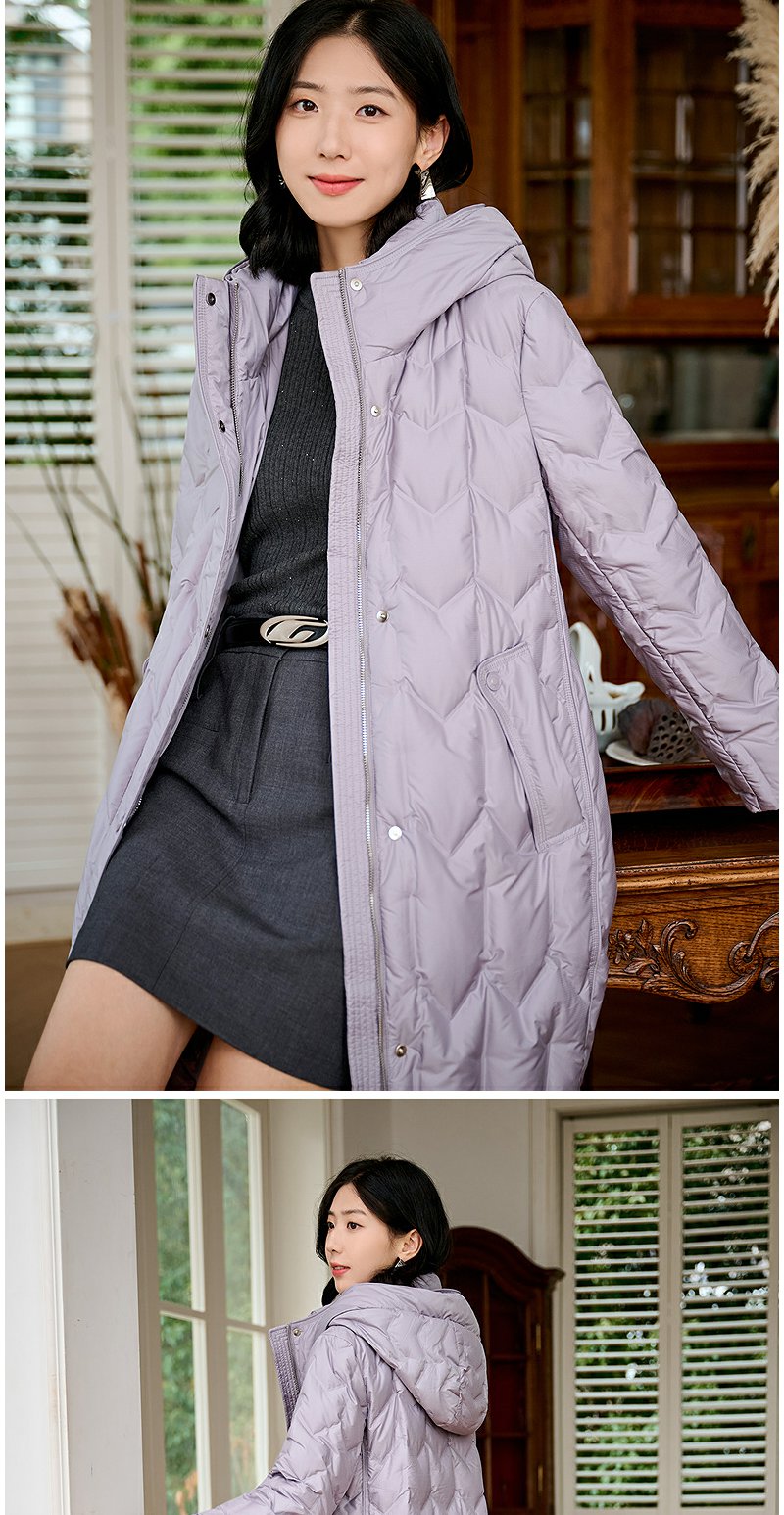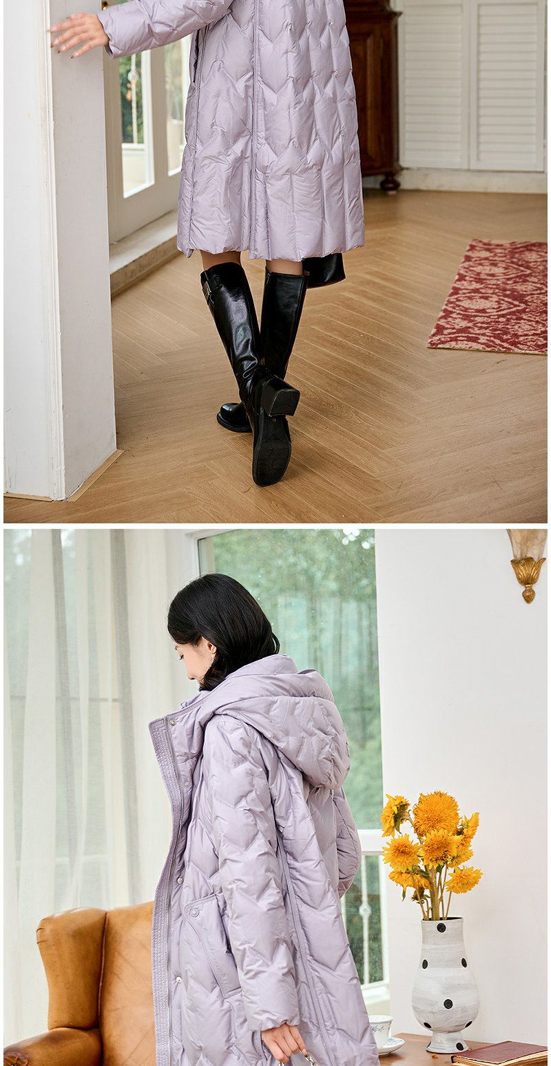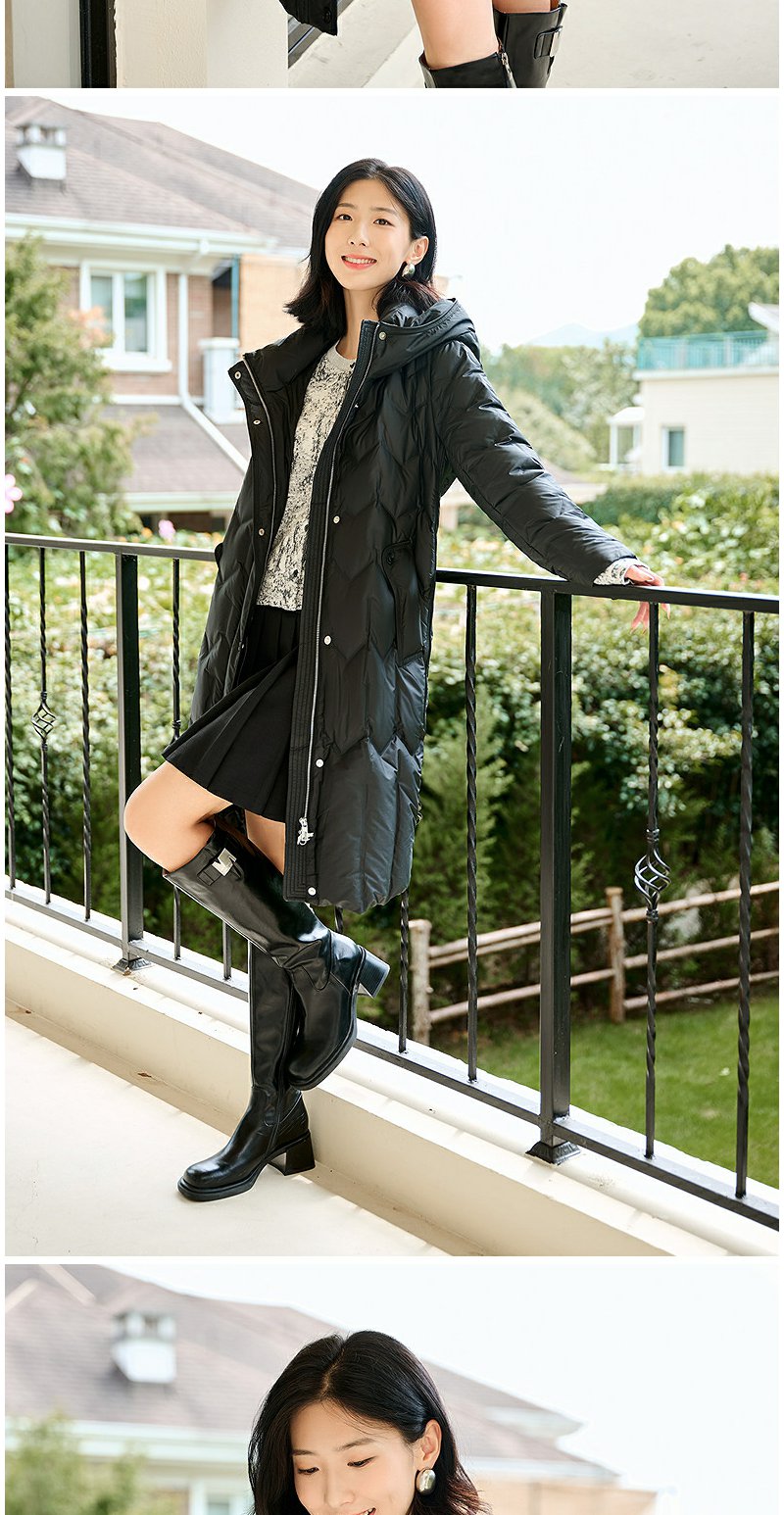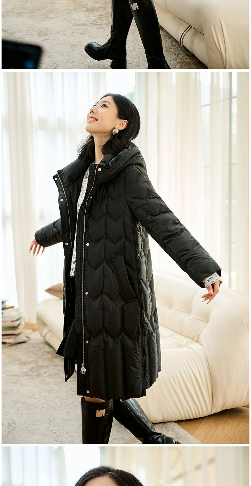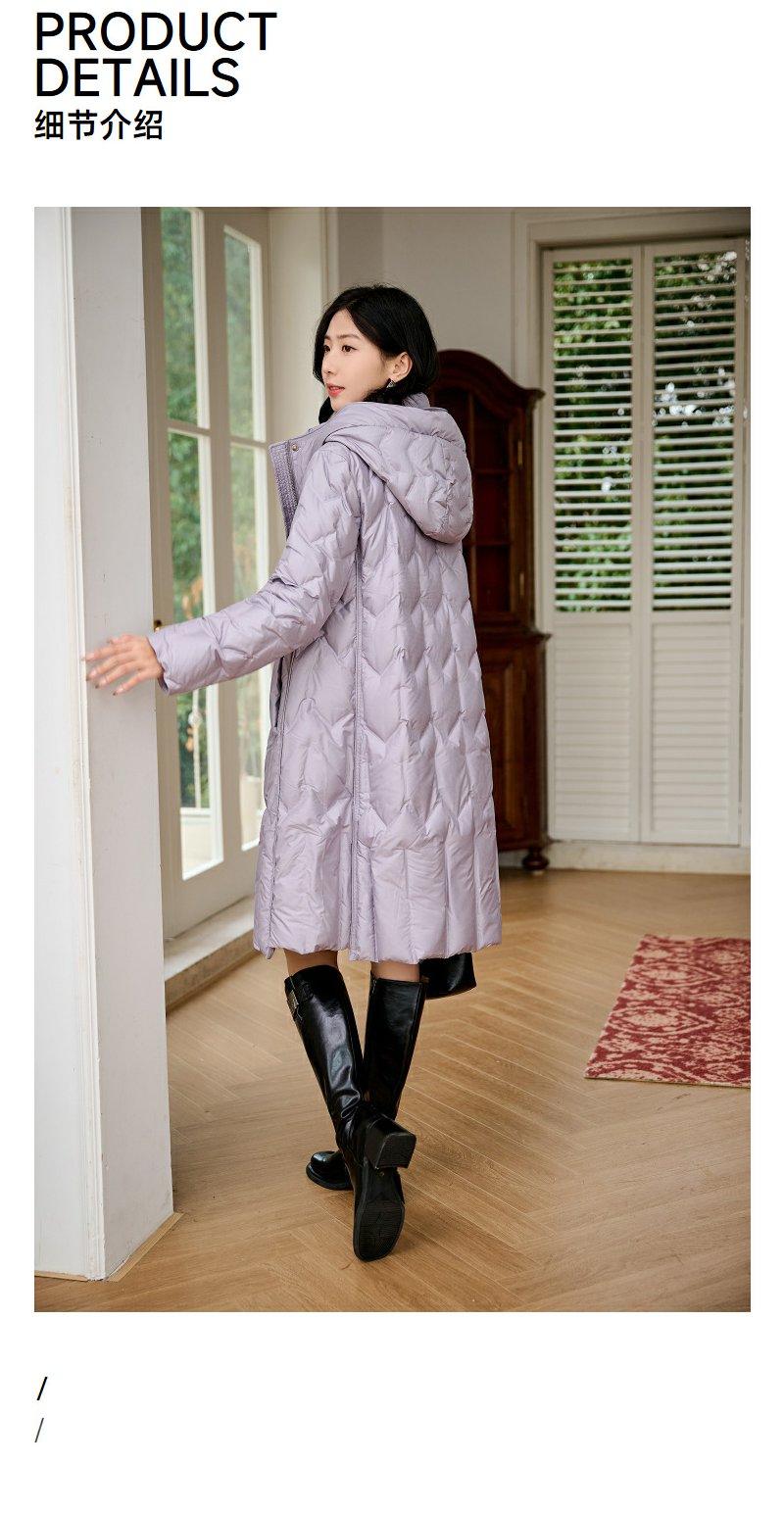 NEELLY纳俪商场同款冬季新款90白鸭绒长款羽绒服女连帽保暖外套N24104L07766